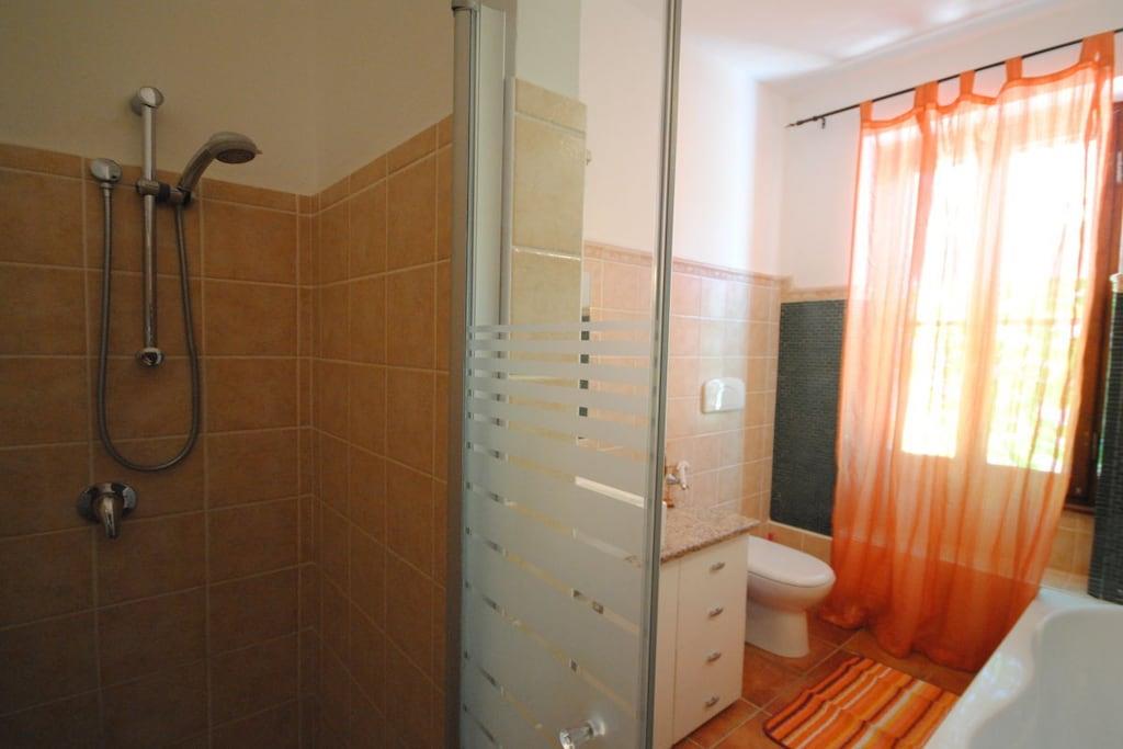 Flere 3-værelses ferielejligheder (70 m²) til 5-6 personer, beliggende på 1. og 2. sal, hver med balkon møbleret med spisebord, liggestole og grill. Del af en bolig med andre lejligheder. 1 soveværelse med dobbeltseng, 1 soveværelse med 3 enkeltsenge, 1 badeværelse med bruser/toilet, stue/køkken med sofa, veranda med udsigt over en eksotisk have. Den 70 m² store swimmingpool med komfortable liggestole er åben fra juli til september. Fuldt udstyret køkken. Satellit-tv. Wi-Fi. To vaskemaskiner i stueetagen. Umiddelbar nærhed til fantastiske strande, ofte omkranset af skyggefulde fyrreskove – omgivet af uspoleret natur. Gåafstand til landsbyens aftenunderholdning, forskellige lækre italienske restauranter og supermarkeder.
