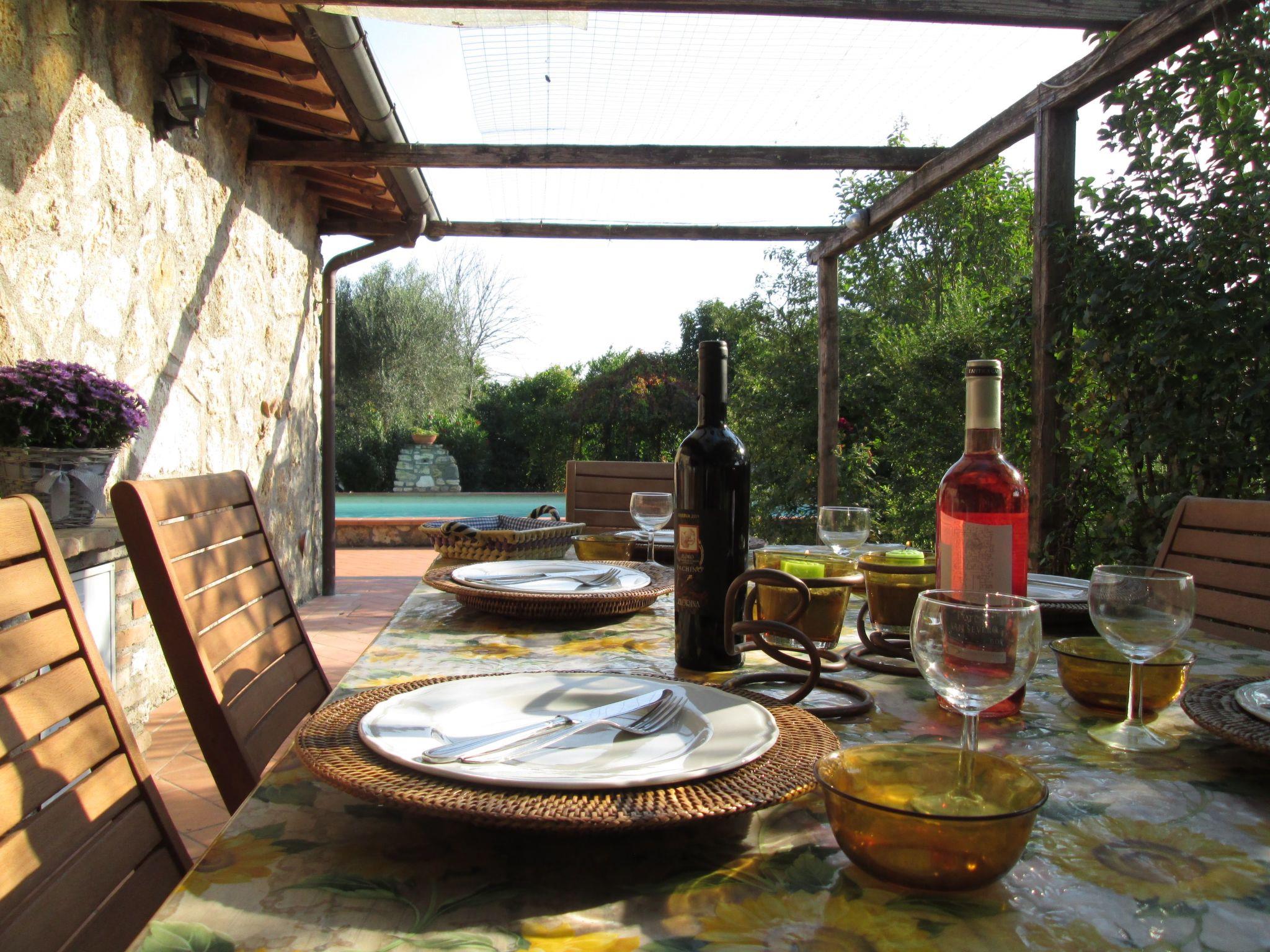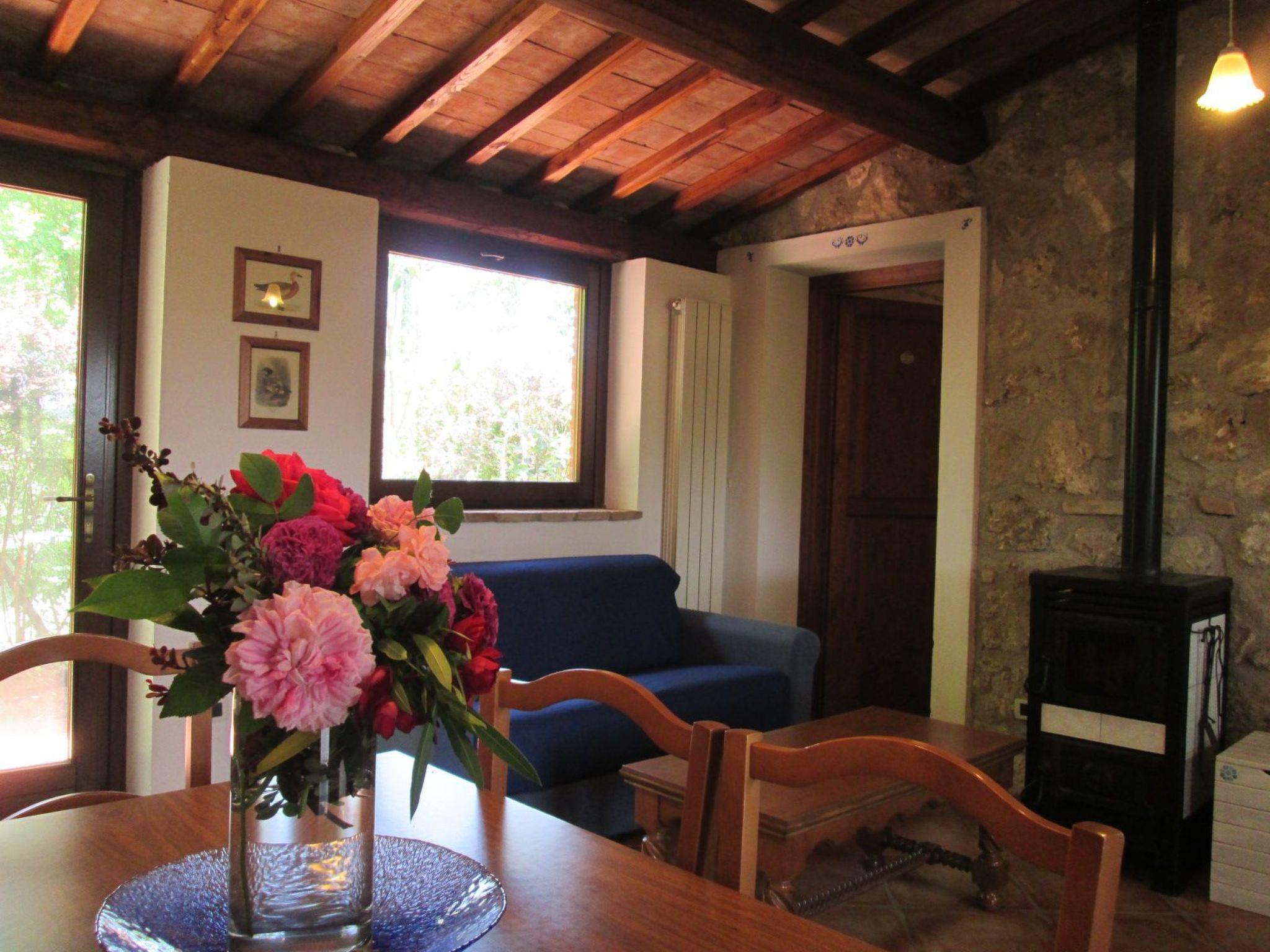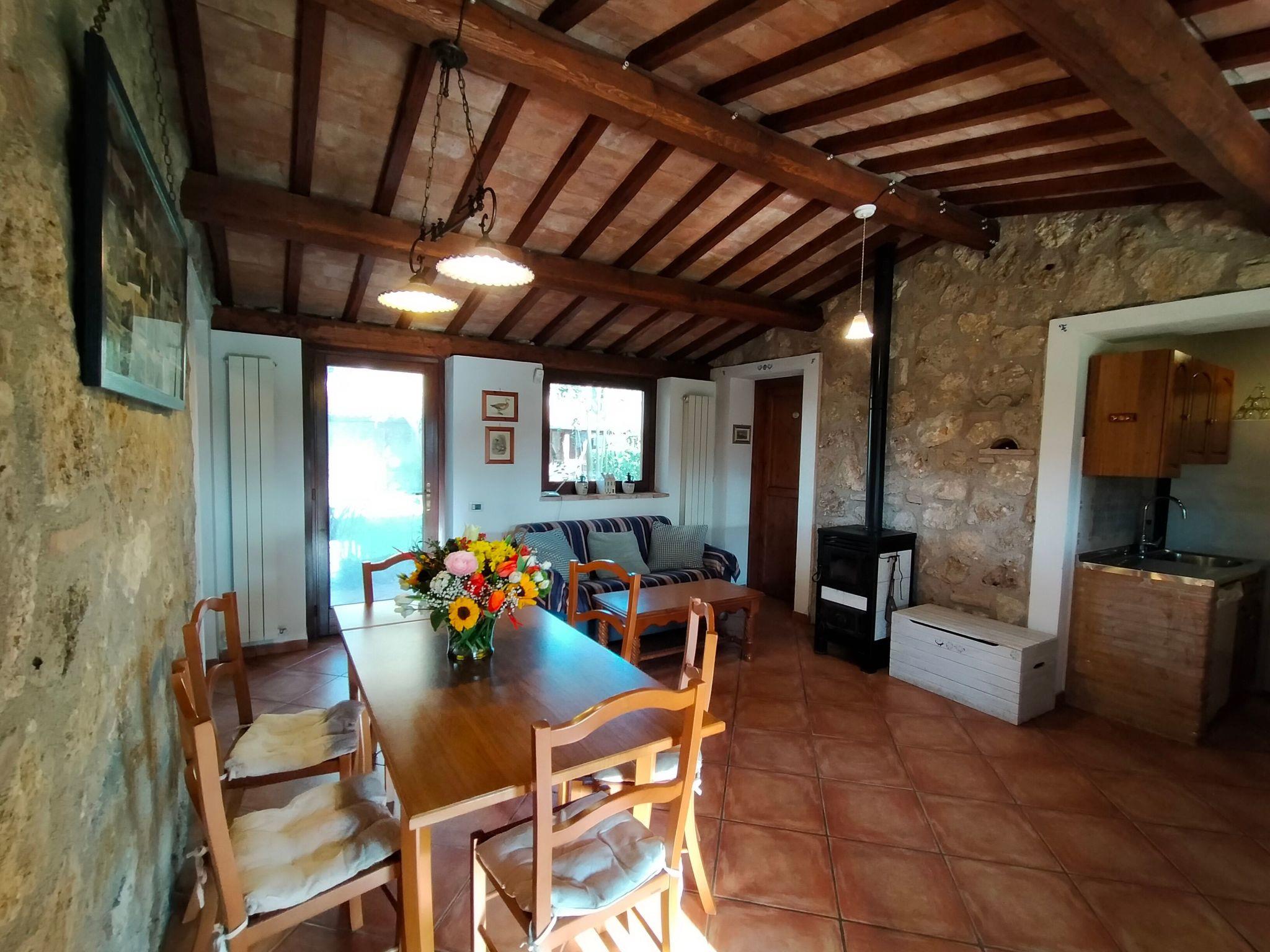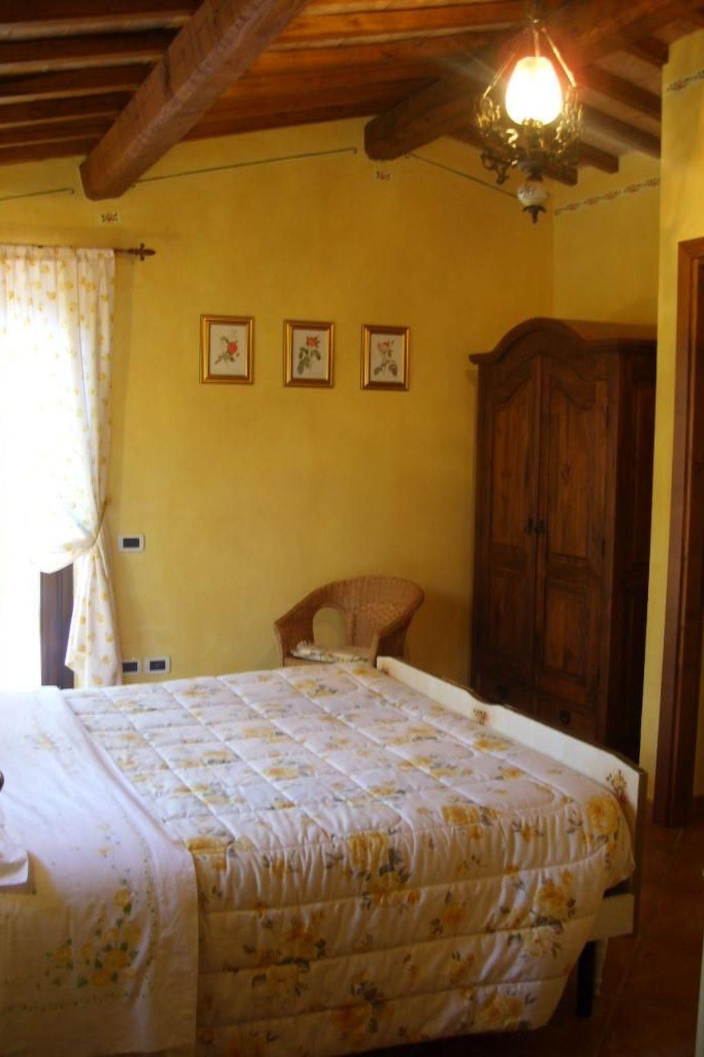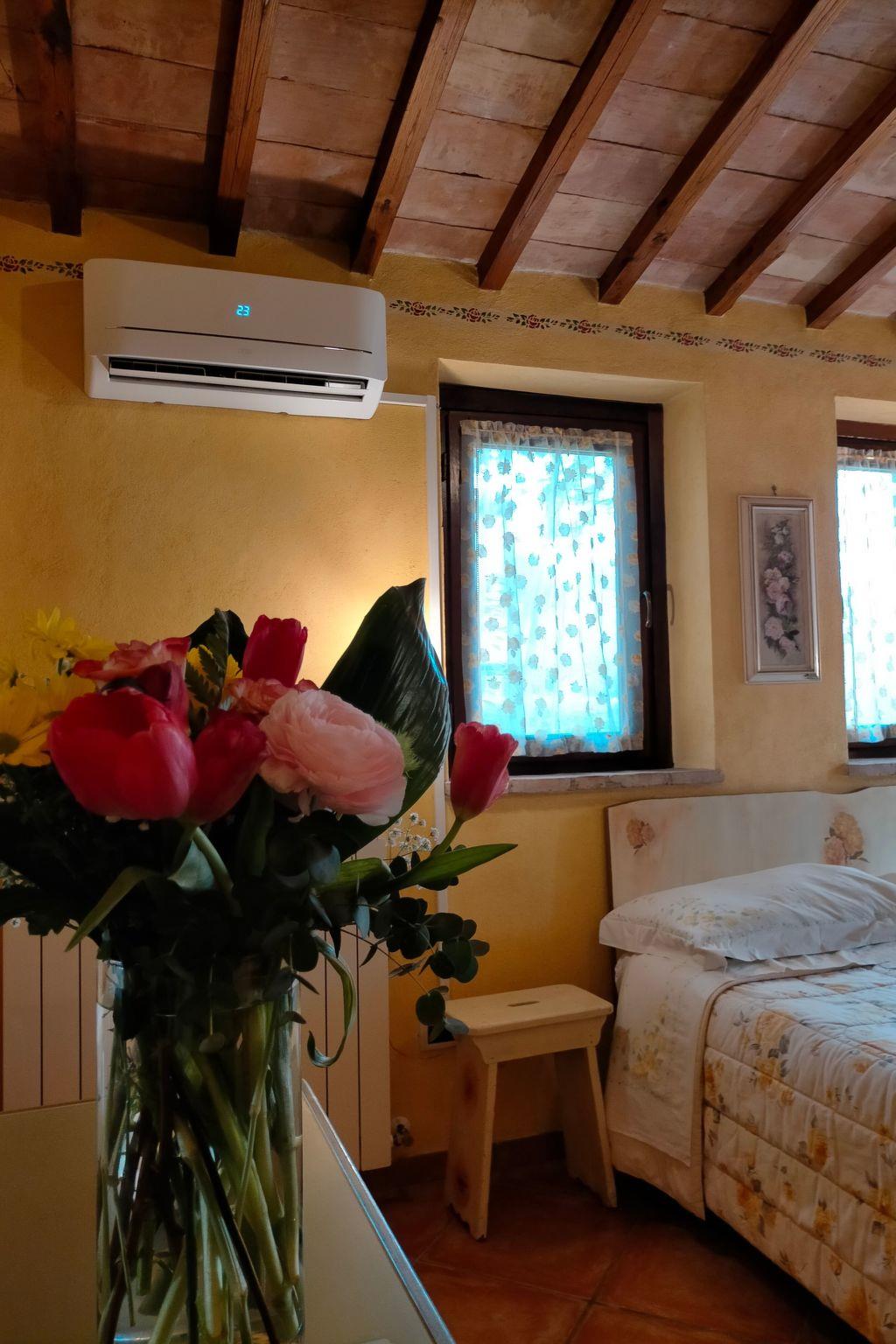 The Eredità farmhouse dates back to the late 19th and early 20th century and is an authentic rural house. It has been renovated with care and attention to detail, using local stone and chestnut beams and terracotta bricks. It has three double bedrooms, all with en-suite bathrooms to ensure privacy and maximum comfort for guests. The furnishings are tasteful with family furniture, paintings on the walls, Vietri ceramics and Deruta lamps in the bathrooms and bedrooms. The kitchen is equipped with crockery, pots and pans and fully functional appliances to make guests feel at home. The kitchen is open onto the living room furnished with table and chairs, sofa bed and ceramic wood stove. TV and air conditioning. Wifi with two lines: one inside and another covering the pool area.