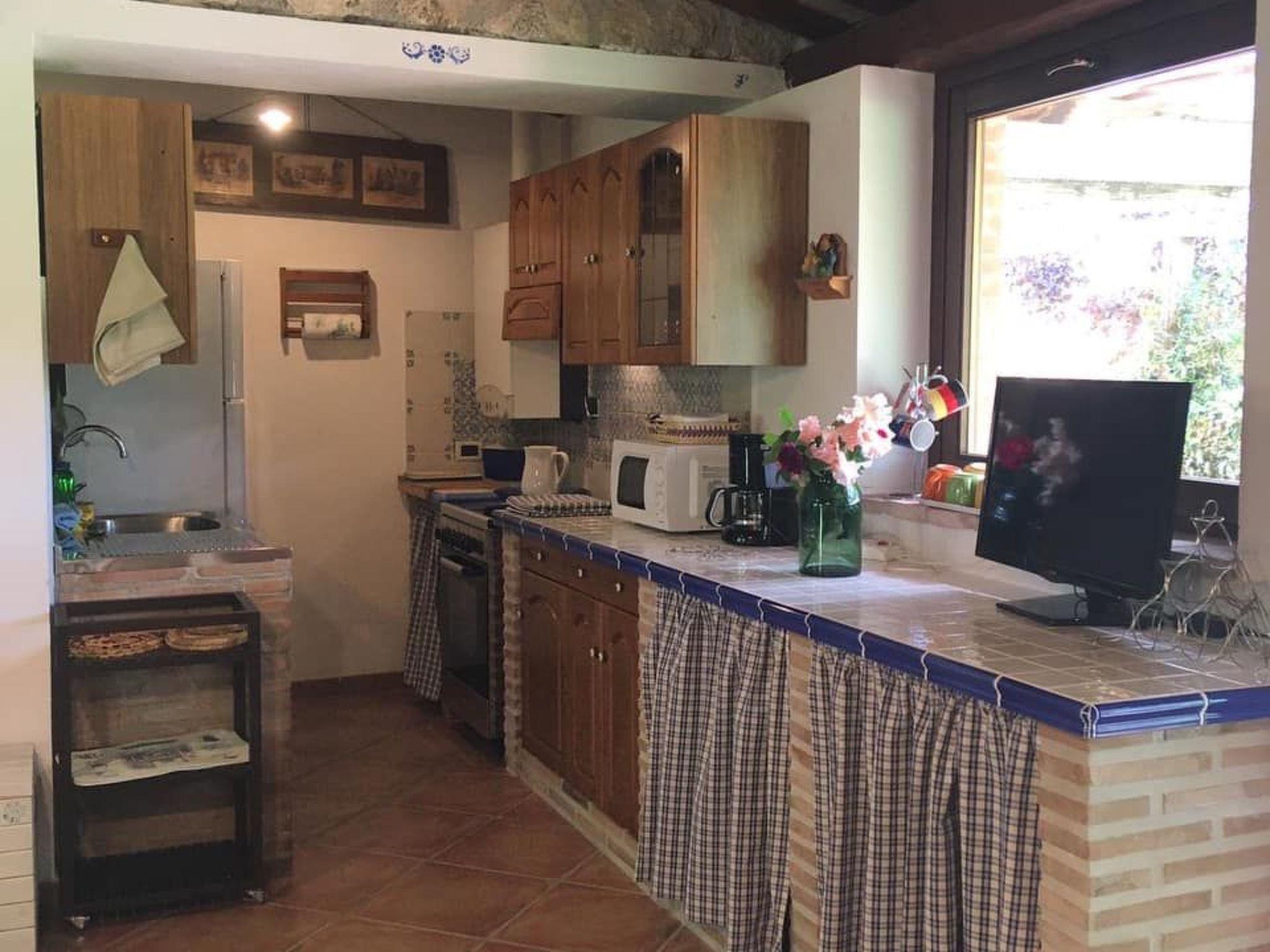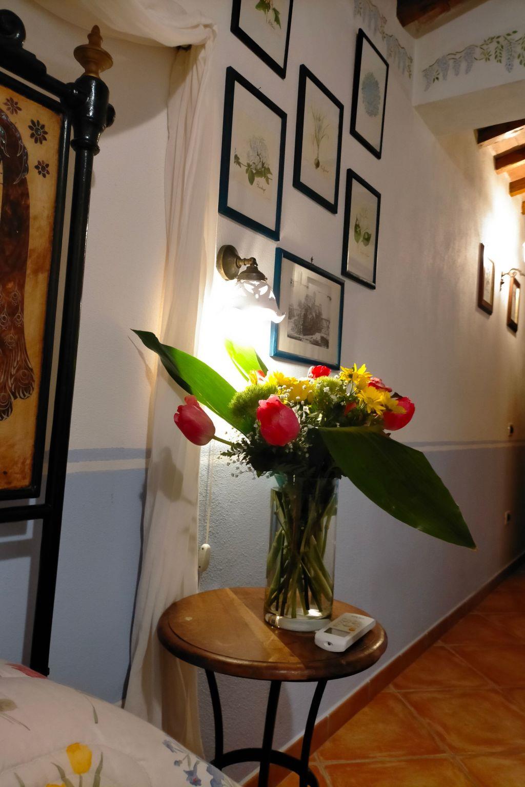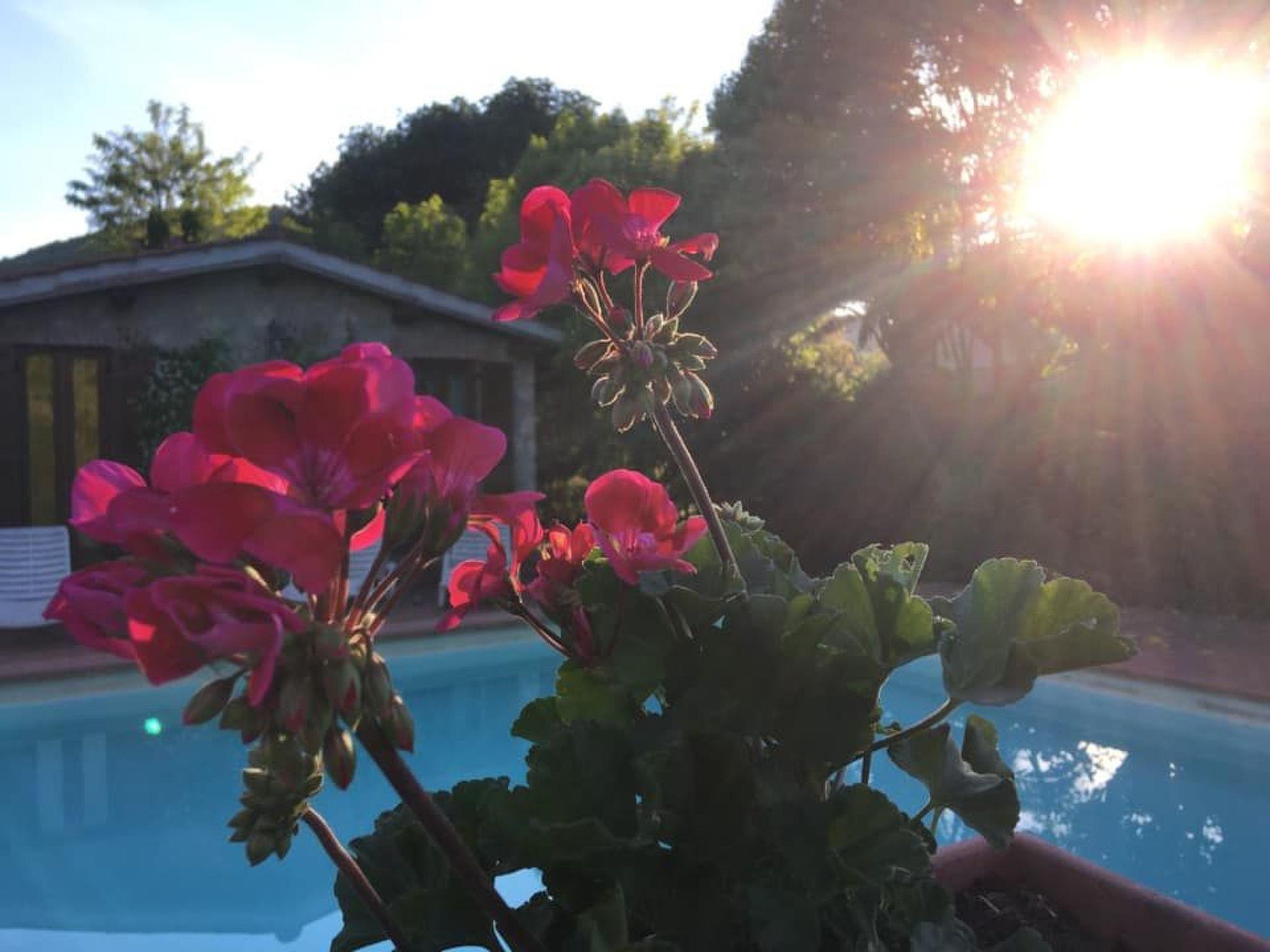The 6x12 m swimming pool is for the exclusive use of guests, with a solarium of over 100 square metres furnished with deckchairs and table and chairs, and a large gazebo covered with flowering plants. Two beautiful century-old oak trees provide shade and create a very relaxing environment. Many English roses, perfumed plants, embellish the garden, which is personally tended by the owners. The property is surrounded by nature, with views of the hills of oak and olive trees.
