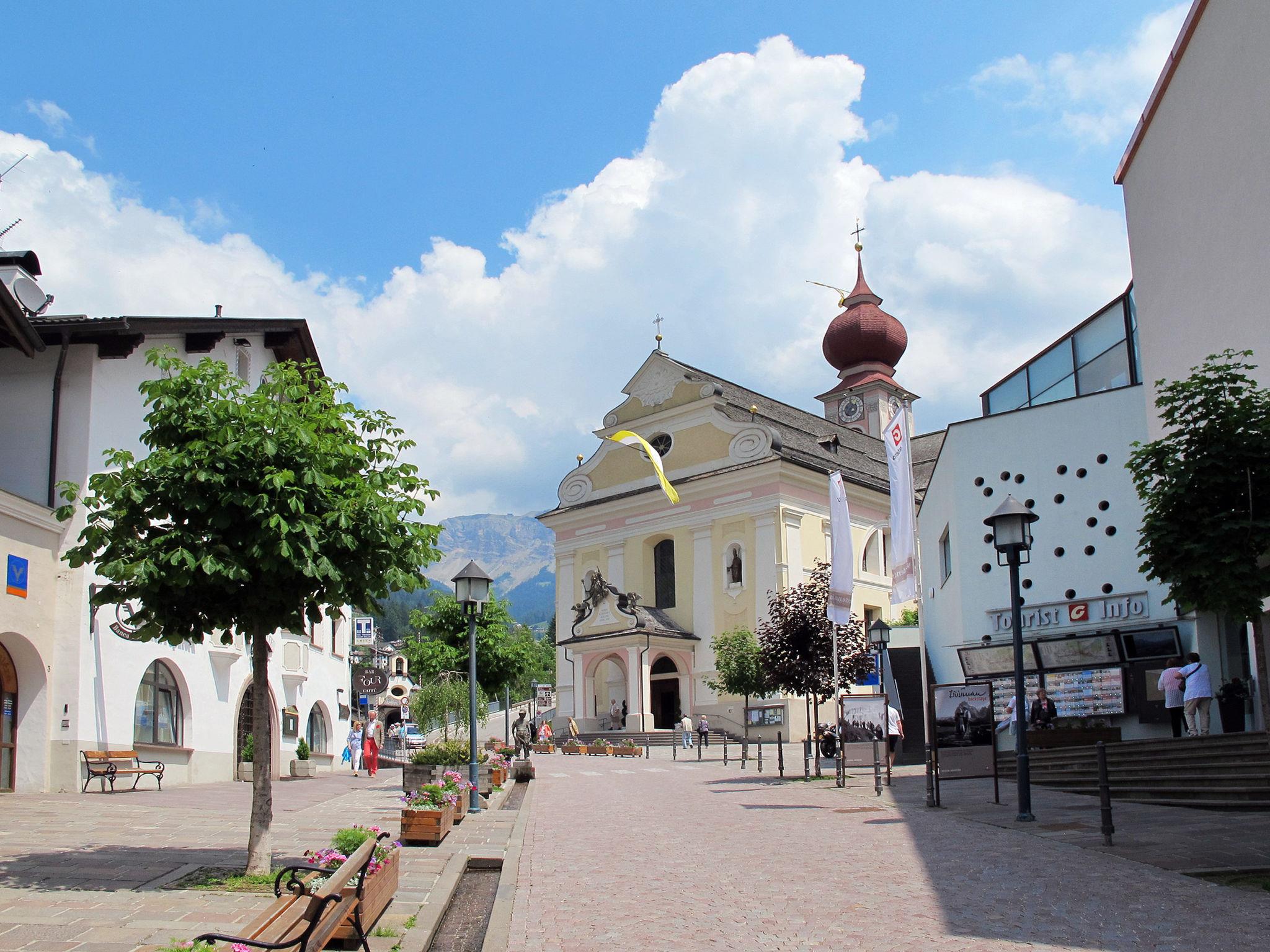 2-family house "Demetz". 600 m from the centre of St. Ulrich / Ortisei, 4 km from the centre of Santa Cristina, 36 km from the centre of Bolzano. In the house: storage room for skis, ski boot dryer. Parking on the premises. Shop, bus stop 200 m. Walking paths from the house 10 m, cable car 850 m, mountain railway 1.4 km, ski lift 850 m, ski bus stop 80 m. Well-known ski regions can easily be reached: Seiseralm 850 m, Seceda 1.4 km. Please note: the owner lives in the same residence.