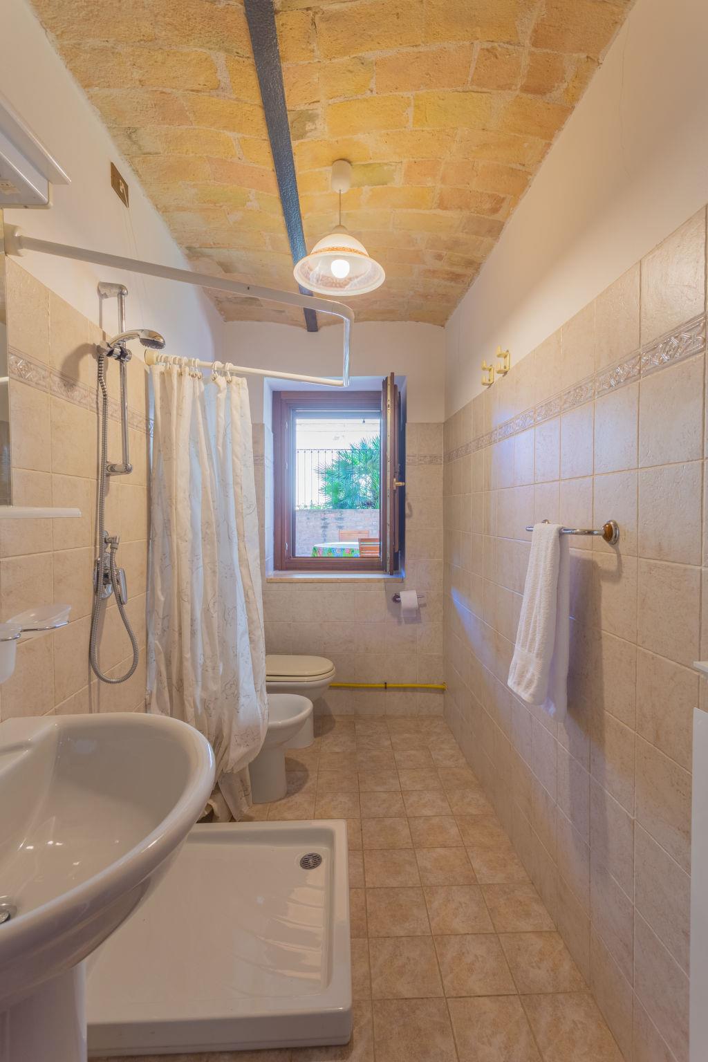 Rustic agricultural estate "Borgo Agrituristico Il Pino", 2 storeys, detached, surrounded by fields and vineyards. 3 houses in the residence. 10 km from the centre of Ortona, 4 km from the centre of Crecchio, 35 km from the centre of Pescara, 12 km from the sea, in the countryside. For shared use: property 1'500 m2, courtyard, swimming pool (10 x 5 m, depth 140 cm, seasonal availability: 10.May. - 15.Sep. pool opening hours: 08:00-18:00). Outdoor shower, table tennis, barbecue. In the complex: WiFi, table football. Parking on the premises. E-charging station. Shop 2 km, bus stop 3 km, railway station "Ortona" 13 km, sandy beach 16 km pebble beach 14 km. Local sale of farm products. Please note: the owner lives on the same property. Obligation to wear bathing caps.