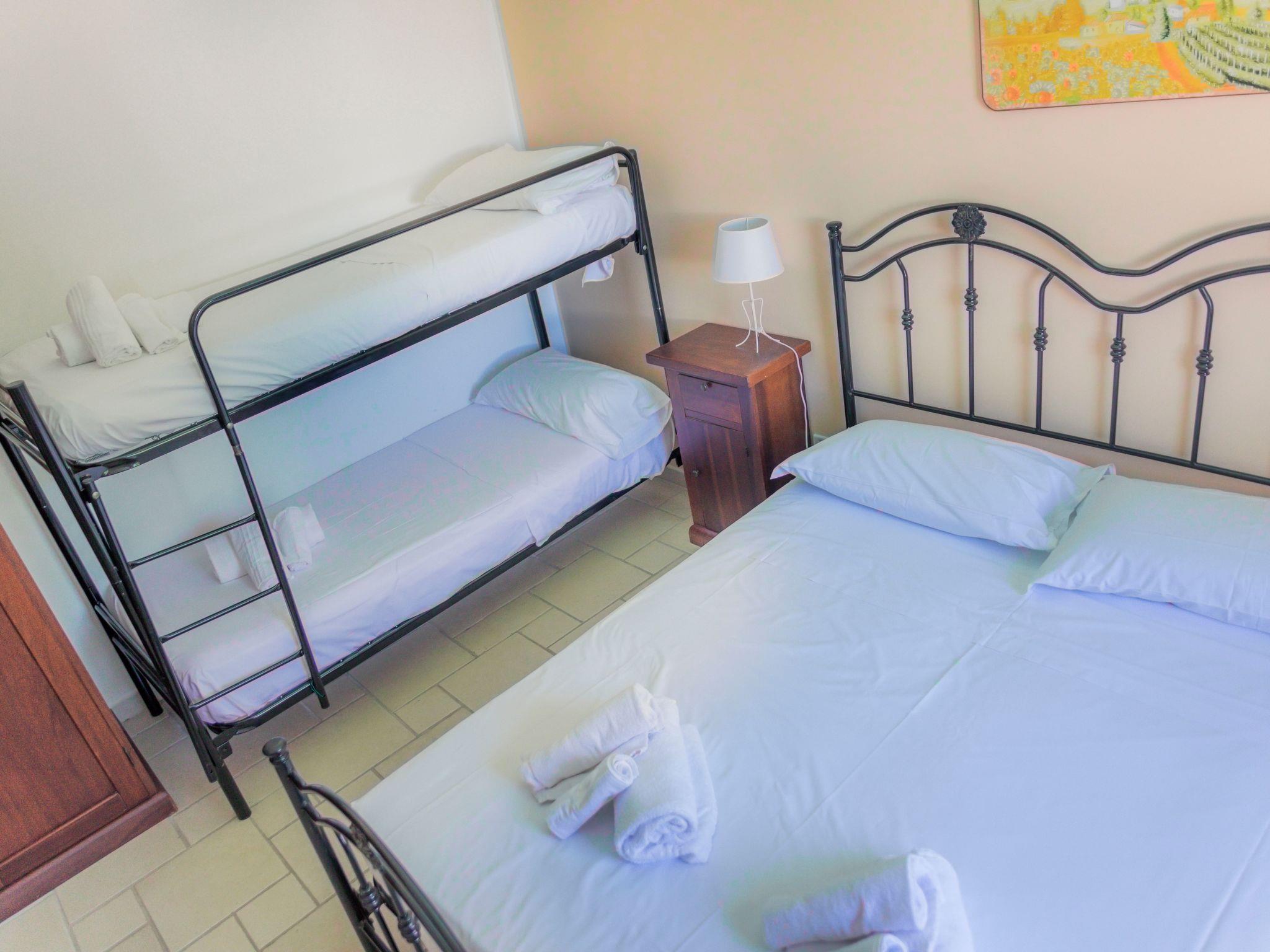 Flat just a few steps from the town, immersed in the greenery and tranquillity of the countryside, fully furnished with every comfort swimming pool, garden furniture and ample outdoor spaces for sunbathing.Ostuni's historic centre is unique, with its alleyways, panorama, cathedral, museums, churches rich in art and traditions, typical stone houses, the immense gastronomic culture with its typical dishes, the sea 6 km away declared by environmentalists, Blue Flag of Europe with its beautiful inlets and beaches all along the coast. The flat consists of a bedroom with double bed and bunk bed, wardrobe, bedside tables, TV, air conditioning, it also has a full bathroom with shower and washing machine and a fully equipped kitchen for cooking with dishes pans glasses cutlery table and chairs. Finally externally it is equipped with garden furniture tables chairs and sun loungers to dine and sunbathe comfortably. The flat has a fenced parking space, and all the services and conveniences of the village are guaranteed by its short distance, about 300 metres.
