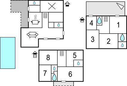 Soveværelse (nr. 8) - 1 Soveplads. (Enkeltseng(e)). 2 Sovepladser. (Dobbeltseng(e)).