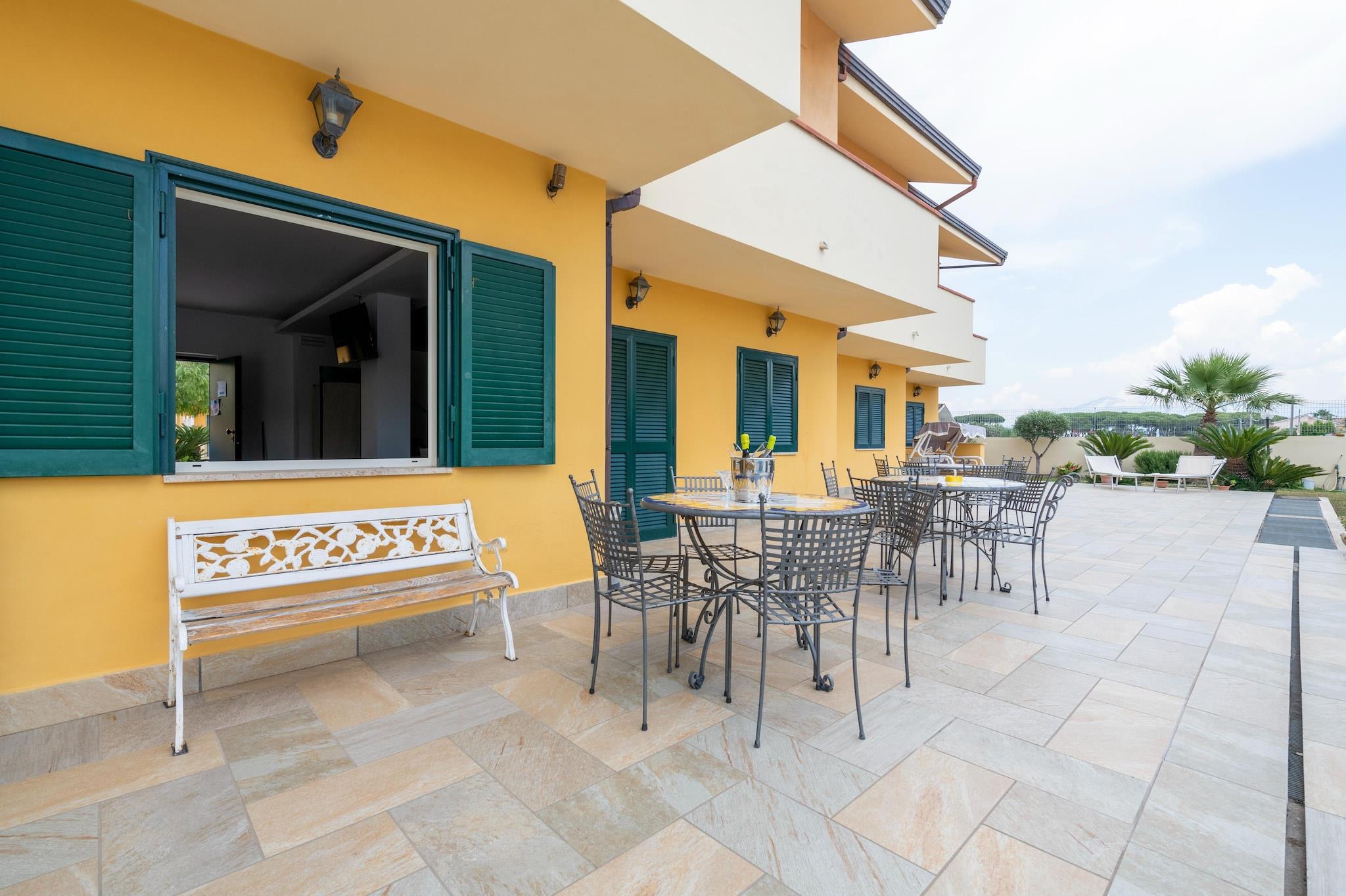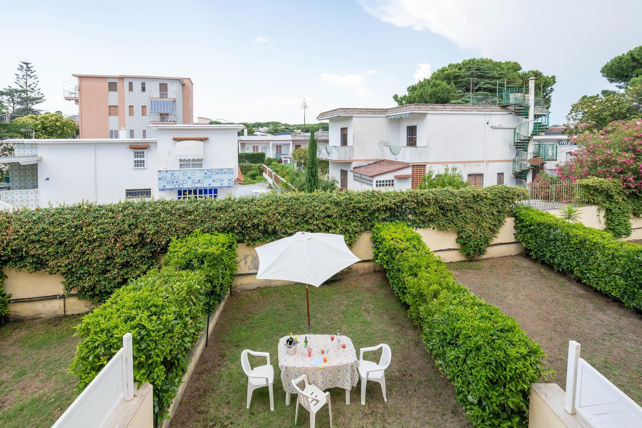 Kun 300 meter fra stranden er denne indbydende villa i Paestums Laura-distrikt det perfekte tilflugtssted ved kysten for op til 5 gæster. Stueetagen indeholder en lys stue med en dobbelt sovesofa, tv, spiseplads, aircondition og strygejern. Et rummeligt køkken er fuldt udstyret med ovn, kogeplader, emhætte, komfur, køle-fryseskab og en hyggelig gaspejs for ekstra komfort. Ovenpå er der to afslappende soveværelser, det ene med en dobbeltseng og det andet med en enkeltseng og køjeseng, begge med adgang til private balkoner. Badeværelset har bruser, bidet, toilet og håndvask. Udenfor inviterer en privat have med liggestole, parasol og udendørsmøbler dig til at slappe af. Gæsterne har også adgang til en fælles swimmingpool, et boblebad til seks og en fælles vaskemaskine. Med både varme og aircondition er boligen behagelig året rundt. Der er privat parkering på stedet. Tæt på restauranter, lokale parker og Paestums arkæologiske skatte er denne villa ideel for både strandelskere og kulturelle opdagelsesrejsende.
