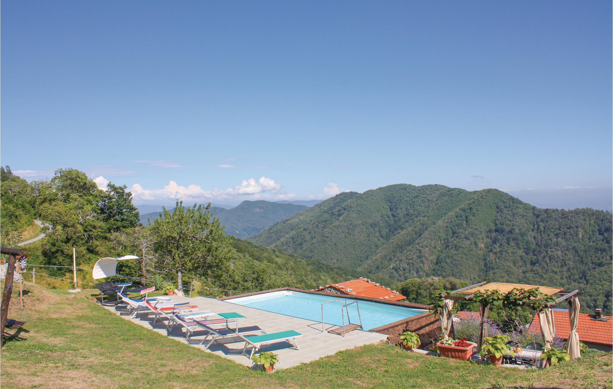 I bor i den ene halvdel af et dobbelthus med privat pool på Garfagnana bjerget. Det er en fantastisk destination for vandreentusiaster og naturelskere. Fra poolen kan I beundre en betagende udsigt over de omkringliggende bjerge. I Bagni di Lucca (26 km) kan I, ud over at vandre, ride, sejle i floden og udforske de omkringliggende skove. For kunstinteresserede er den smukke by Lucca (40 km) et besøg værd; her finder I imponerende mure og smukke kirker. I Lucca afholdes der også store fester som Lucca Summer Festival med koncerter med internationale kunstnere, der optræder i den smukke Piazza Napoleone. Besøg også byen Pisa (60 km), hvor I kan se Piazza dei Miracoli med domkirken og det verdensberømte skæve tårn. Viareggio (70 km) er også kendt for sit natteliv og de mange butikker langs strandpromenaden.