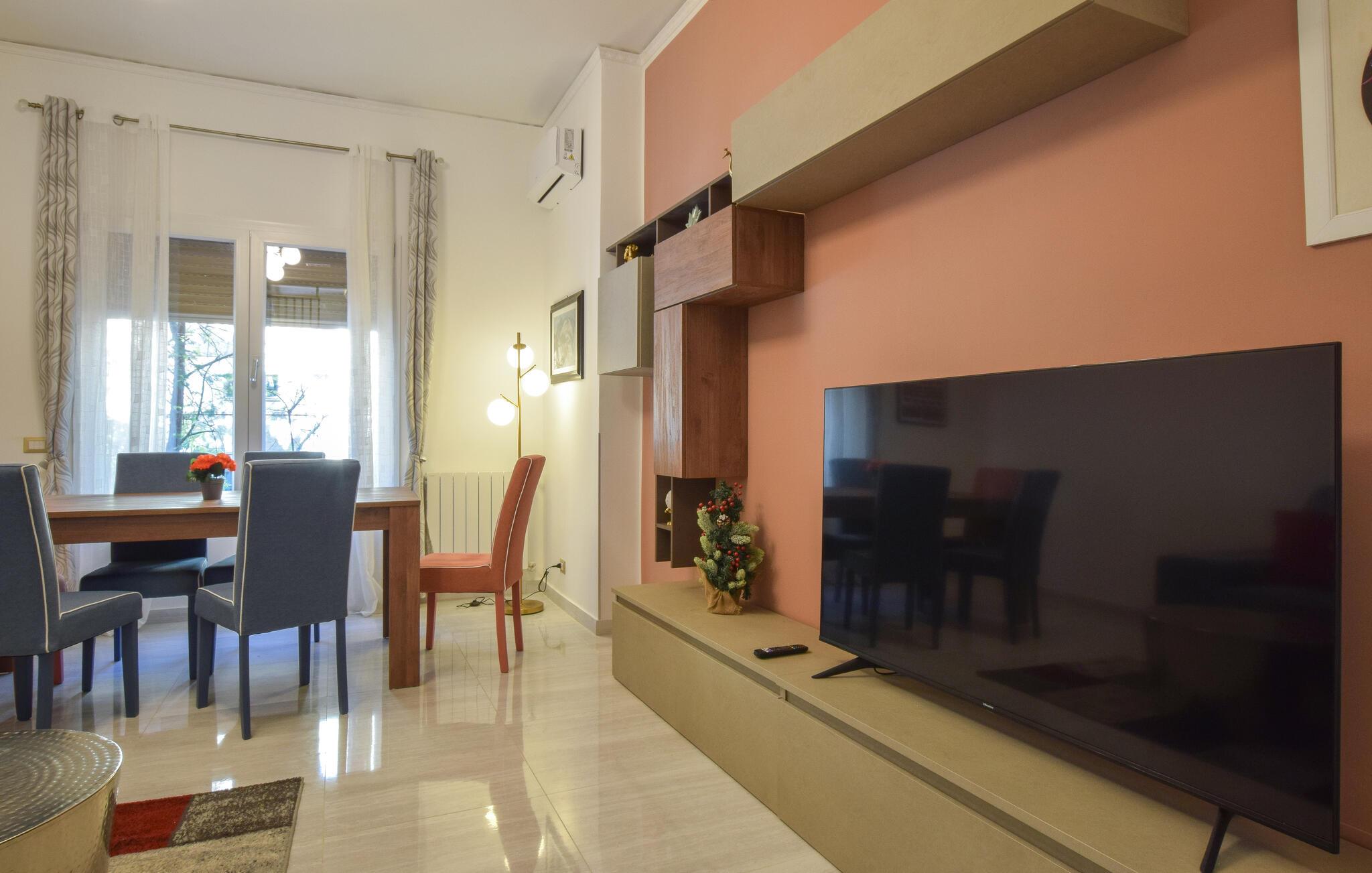Velkommen til denne elegante lejlighed, der har en fantastisk beliggenhed til mange fine udflugter i denne dejlige by. Indretningen fremtræder flot og stilsikkert med rene linjer, kunst på væggene og et komfortabelt møblement, der gør boligen til den perfekte base, hvor I kan slappe af efter en herlig dag på farten. Tilbered en lækker aftensmad i det veludstyrede køkken og nyd maden ved spisebordet, mens I lægger planer for de kommende dage.