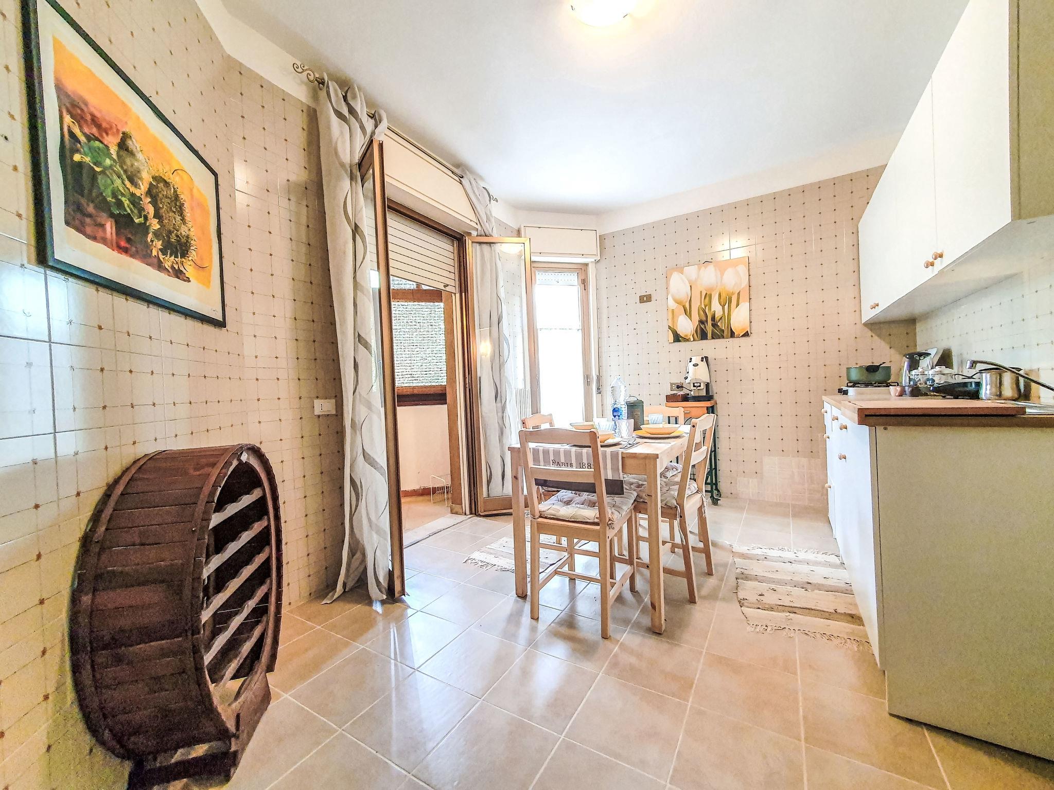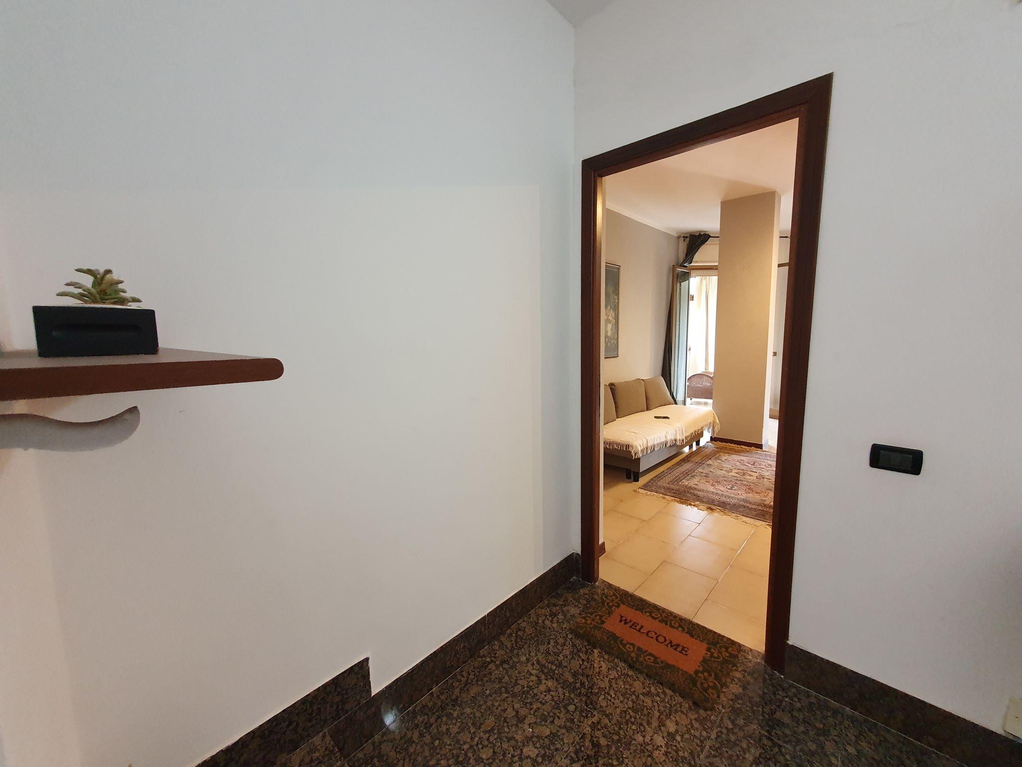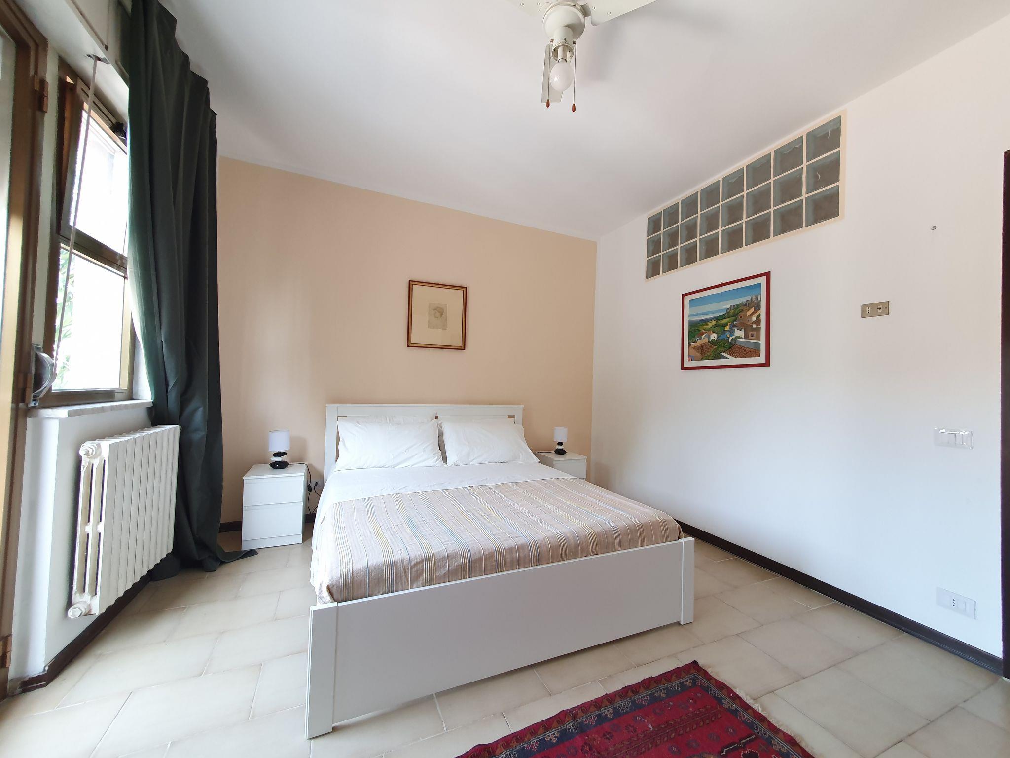"Happy House", 3-room apartment 60 m2 on 1st floor. Comfortable and beautiful furnishings: living room with 1 double sofabed (140 cm), TV and fan. Exit to the veranda. 1 double bedroom with fan. Kitchen-/living room (Gas stove, 2 gas rings, toaster, kettle, microwave, electric coffee machine) with dining table. Exit to the veranda. Bath/shower/bidet/WC. Gas heating, boiler (80 litres). Heating available only from 01.12. to 31.03, Heating not available in all rooms. Conservatory. Partial view of the sea and the mountains. Facilities: children's high chair, baby cot for up to 2 year olds (extra), hair dryer. Internet (WiFi, free). Parking (1 car). Please note: maximum 1 pet/ dog allowed. Smoke alarm, fire extinguisher, no lift. IT082053C2Y6AHWGOI