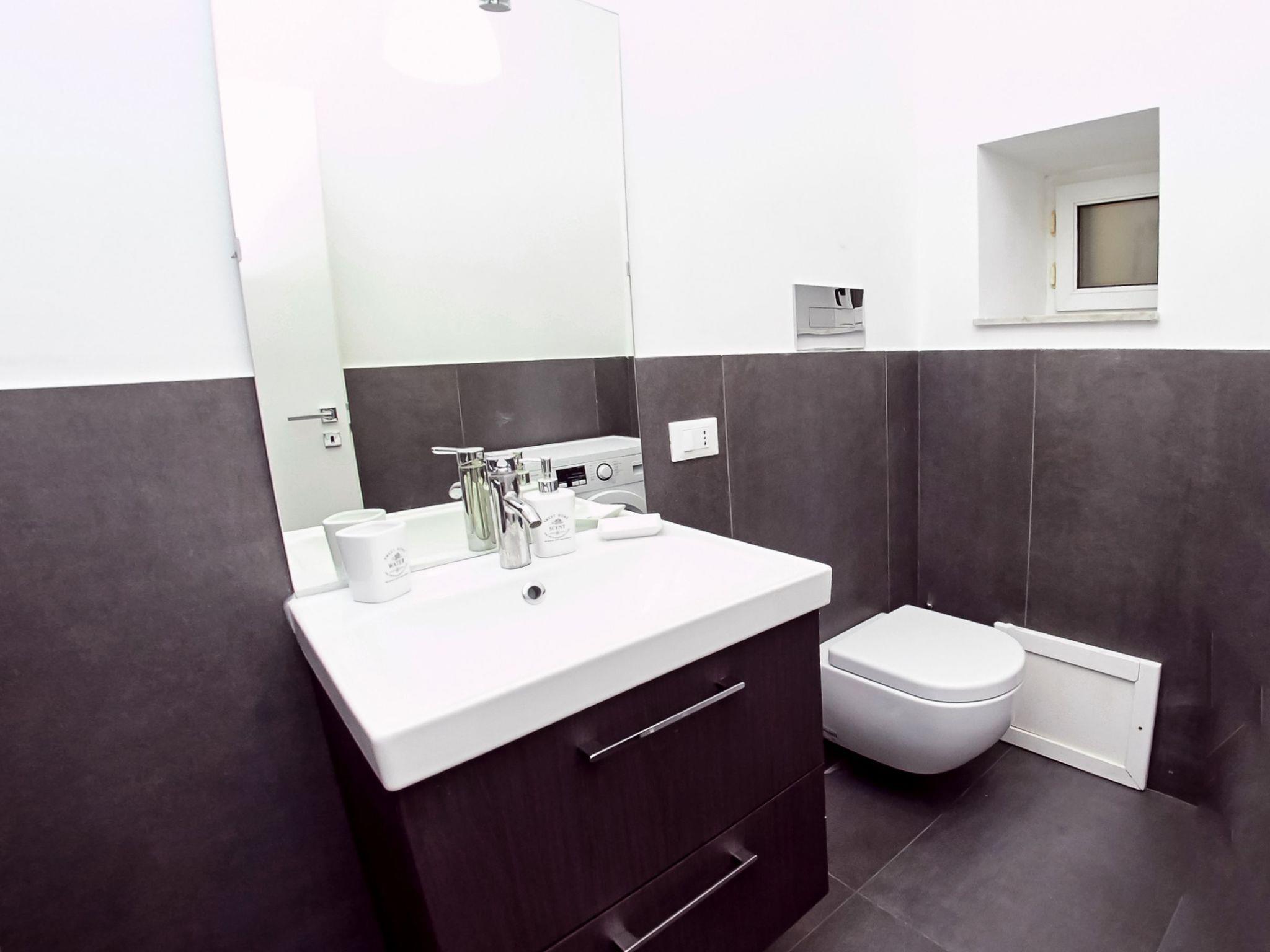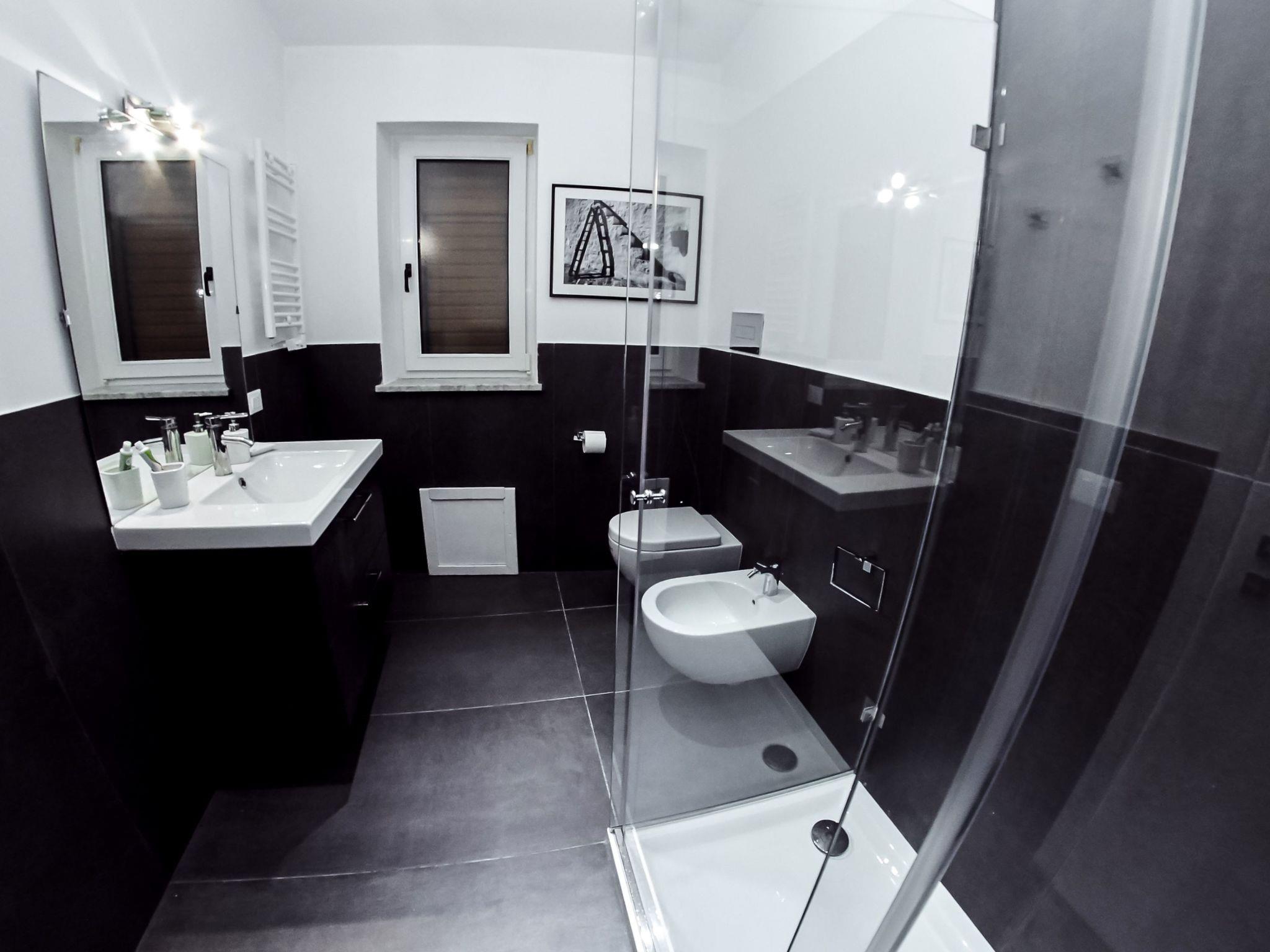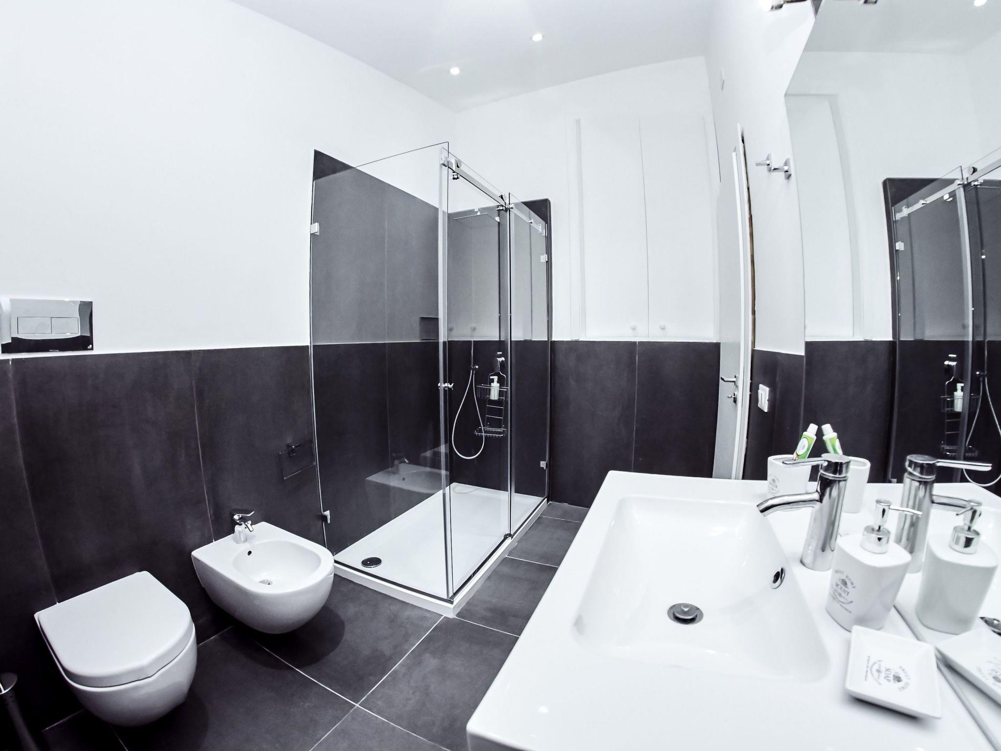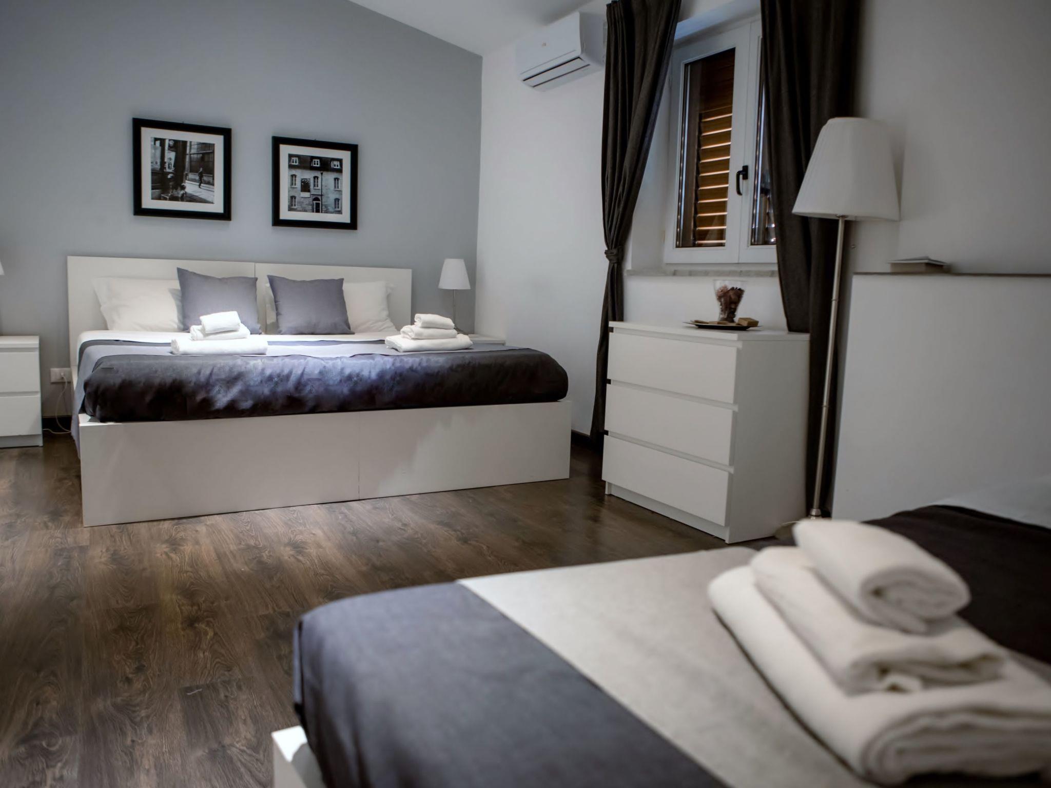The flat is divided into two floors. It is a reserved flat, soundproofed and just renovated and fully furnished. On the upper floor there is a bedroom with a large double bed, a single bed which becomes a double if necessary, wardrobe, bedside tables, chest of drawers and desk with table lamp. Also on the upper floor is the large bathroom On the ground floor is the living area, where there is a double sofa bed. Also on the ground floor is the kitchen and the second bathroom. The whole flat is air-conditioned. We have also thought about your moments of refreshment after long walks to discover the city and have equipped the flat with a Smart TV. The flat is equipped with free Wi-Fi. Max extra beds: 2 Max cots: 2 The flat is equipped with a safe (free).