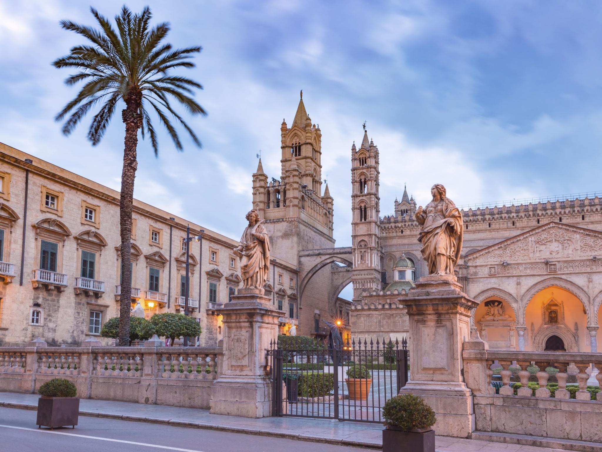 The city of Palermo, capital of the Sicily region, is located on the north-western coast of the island. With a rich and complex history spanning several eras and cultures, it is a fascinating city that mixes tradition and modernity in a vibrant setting. The architecture is a fascinating mix of styles; from majestic Norman buildings, such as Palermo Cathedral, to sumptuous Baroque palaces, such as the Quattro Canti, the city is a living museum of architecture. Markets, such as the Ballarò Market and the Mercato del Capo, are lively and colourful places offering a variety of local produce, from fresh fruit to fish and Sicilian delicacies. Exploring these markets is a unique sensory experience. Sicilian cuisine is famous for its intense and authentic flavours. Here you can enjoy specialities such as arancine, cannoli and panelle. Local restaurants offer a wide range of traditional dishes. This city offers beautiful beaches and breathtaking views. The nearby beach of Mondello is particularly popular with residents and visitors for its crystal-clear waters and golden sand. Palermo's nightlife is lively and varied. Nightclubs, bars and cafés offer a mix of relaxed and lively atmospheres, where you can enjoy music, dancing and socialising with locals. The city is rich in religious festivals and cultural traditions. In summary, Palermo is a city that enchants visitors with its fascinating history, delicious cuisine and lively Mediterranean atmosphere.