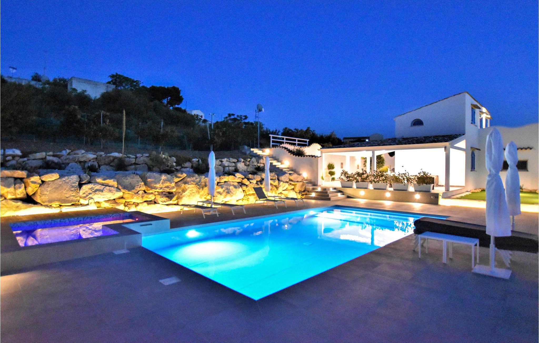 Dette smukke sommerhus byder op til otte gæster velkommen med sine tre soveværelser, tre badeværelser og stue og spisestue med køkken. Husets højdepunkt er det vidunderlige udendørsområde med en stor terrasse, privat pool og opvarmet spa, hvilke kan oplyses om aftenen. Herfra kan I nyde en vidunderlig udsigt over de naturlige omgivelser og kysten. Spis morgenmad på terassen og afslut dagen med et glas vin. Husets udendørsområde er det ideelle sted at nyde det vidunderlige sicilianske klima hele dagen lang, mens I slapper herligt af.
