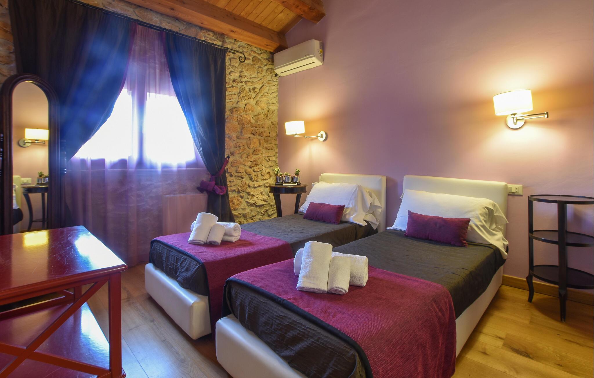 Nyd jeres ferie i det hyggelige feriehus med fælles pool. Drømmer I om en ferie i historiske mure, bør I kigge nærmere på dette feriehus. Det er det ideelle sted for en familieferie, da selv de små føler sig godt tilpas her. Føl jer godt tilpas i de indbydende lokaler, som er præget af svundne tiders charme med gamle trælofter og synligt murværk. Start dagen med en kop kaffe i det hyggelige køkken-alrum og glæd jer til dejlige aftener, hvor I kan sludre længe efter en begivenhedsrig dag. Tilbring vidunderlige timer udendørs på poolterrassen og nyd at solbade i en liggestol efter svømning. Oplev de smukke strande ved den nærliggende kyst eller besøg regionens maleriske landsbyer og historiske steder. En tur til Palermo er umagen værd for dem, der er interesserede i kultur og historie. For naturelskere er der vandreture i de nærliggende naturreservater. Partinico kombinerer afslapning, aktivitet og siciliansk kultur - det ideelle udgangspunkt for en varieret ferie.