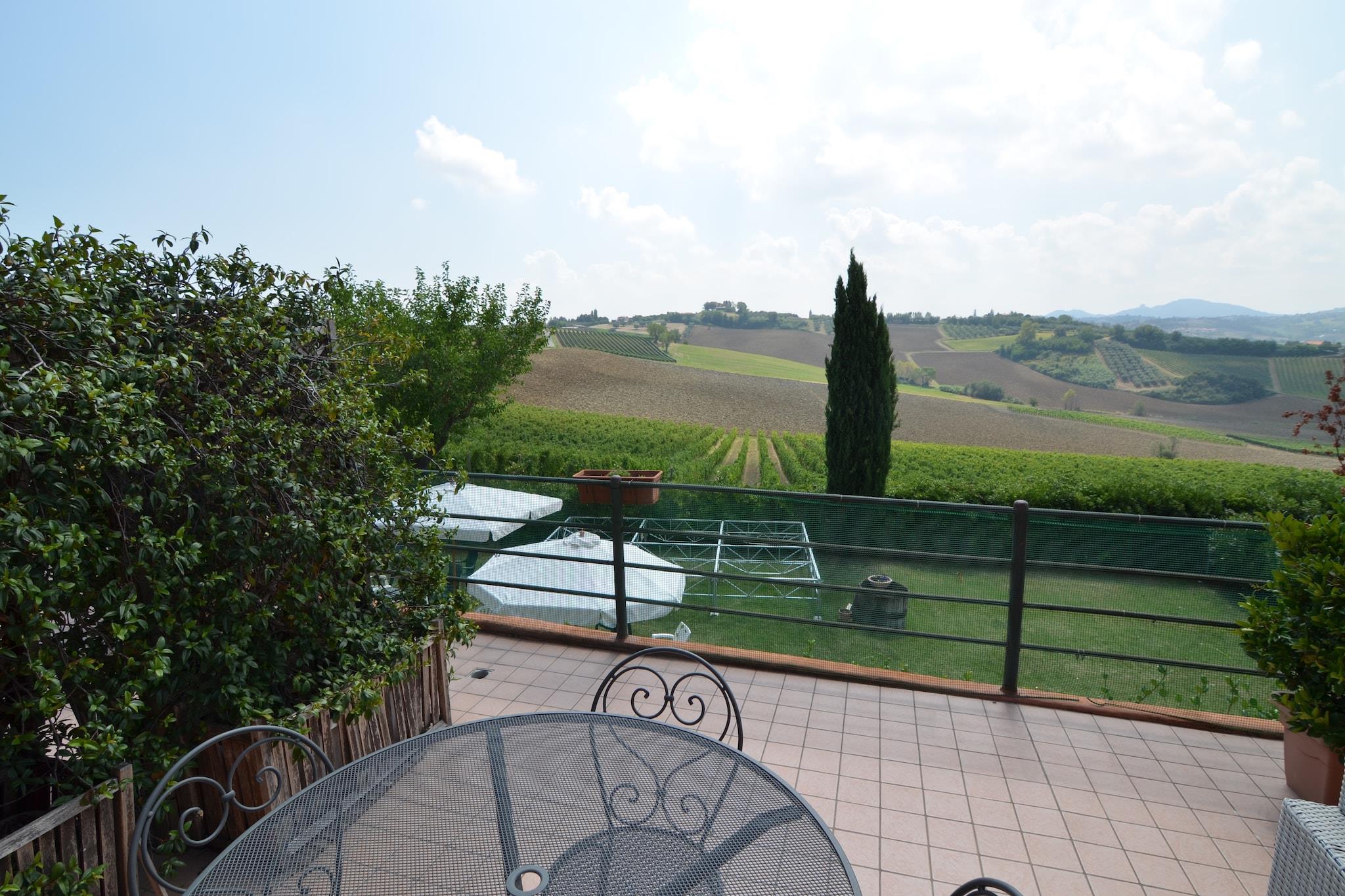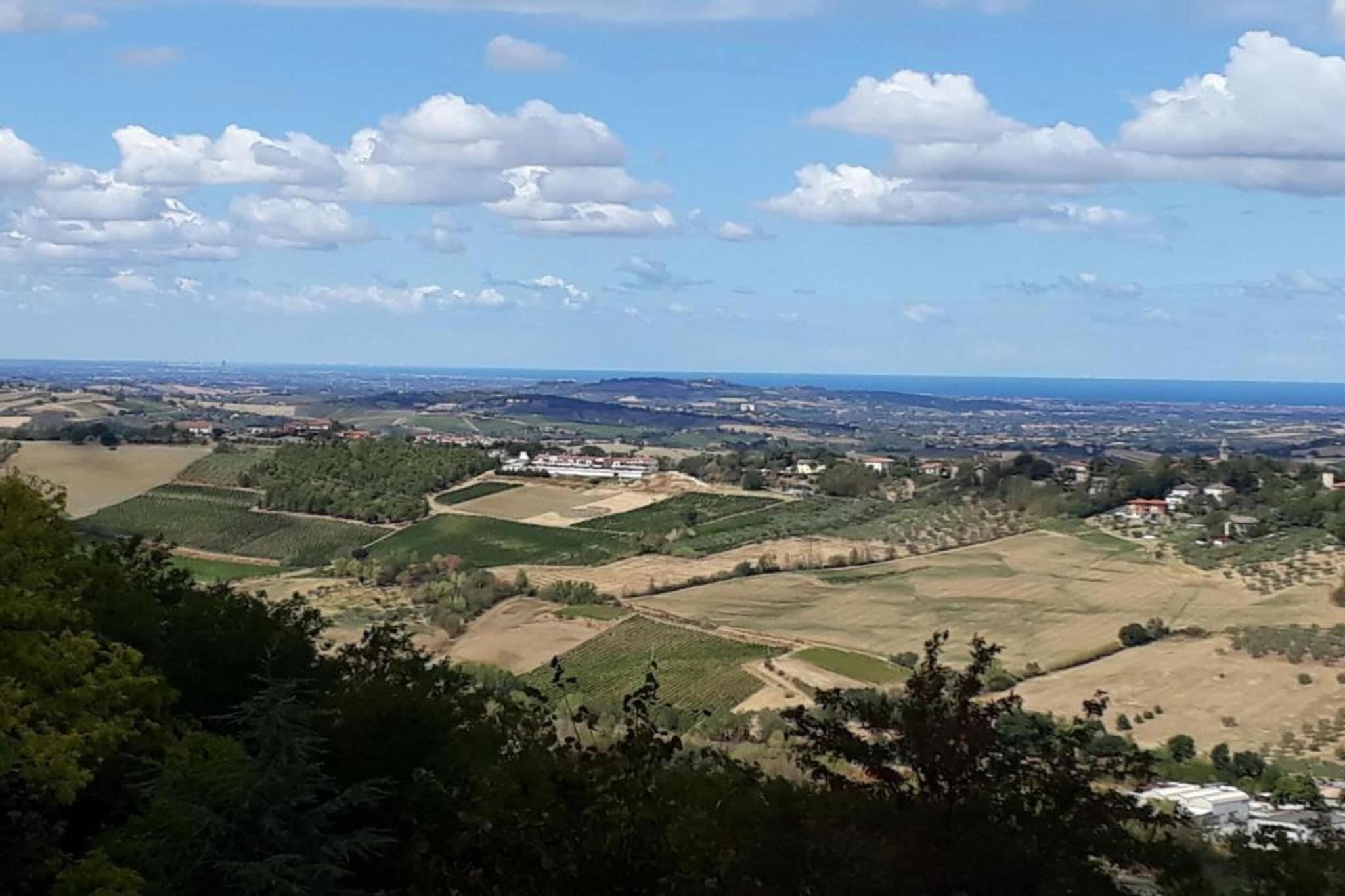 Omgivet af solbeskinnede vinmarker og de blide bakker i Passano di Coriano, blander denne indbydende lejlighed rustik charme med sjælen fra det italienske vinland. Beliggende i en fungerende agriturismo tilbyder det en fredfyldt flugt kun 9 km fra de gyldne strande i Riccione og spændingen ved attraktioner som Aquafan og Oltremare. Ejendommen er ideel for dem, der søger både afslapning og eventyr. Gæsterne kan slappe af ved den fælles swimmingpool med liggestole, nyde stille stunder i den fælles have med komfortable møbler eller nyde panoramaudsigten fra tagterrassen. En legeplads og høj stol gør det til et familievenligt valg, og tilstedeværelsen af et personligt opholdsrum og terrasse giver perfekte hjørner til at slappe af efter en dag med udforskning. Et af højdepunkterne ved at bo her er muligheden for at fordybe sig i lokal vinkultur. Agriturismo er hjemsted for sin egen vingård, og ejeren, Sandro, leder personligt vinture og smagninger af den berømte Sangiovese-sort - en mindeværdig og berigende oplevelse for vinelskere. I nærheden byder byen Coriano på traditionelle trattoriaer og charmerende caféer, mens Riccione kan prale af en pulserende madscene - fra fiskerestauranter ved havet til stilfulde aperitivo-barer. Gå ikke glip af en dagstur til den UNESCO-listede Republik San Marino eller den historiske by Rimini, begge inden for rækkevidde for en kulturel udflugt. Uanset om du er ude efter stranddage, fred på landet eller en smag af italiensk vintradition, tilbyder denne lejlighed en perfekt base for en uforglemmelig ferie.