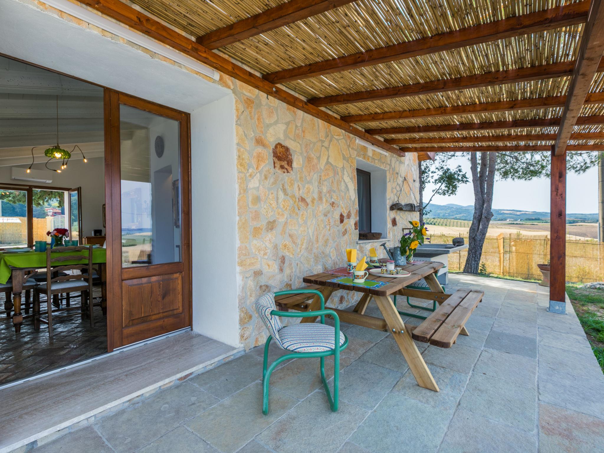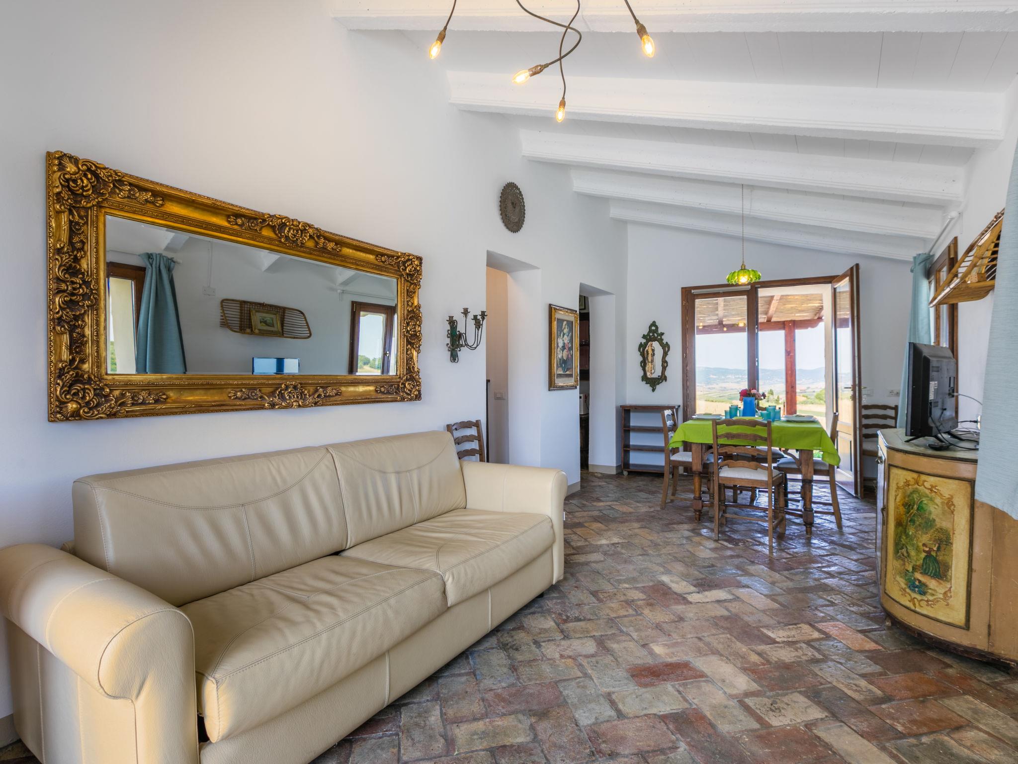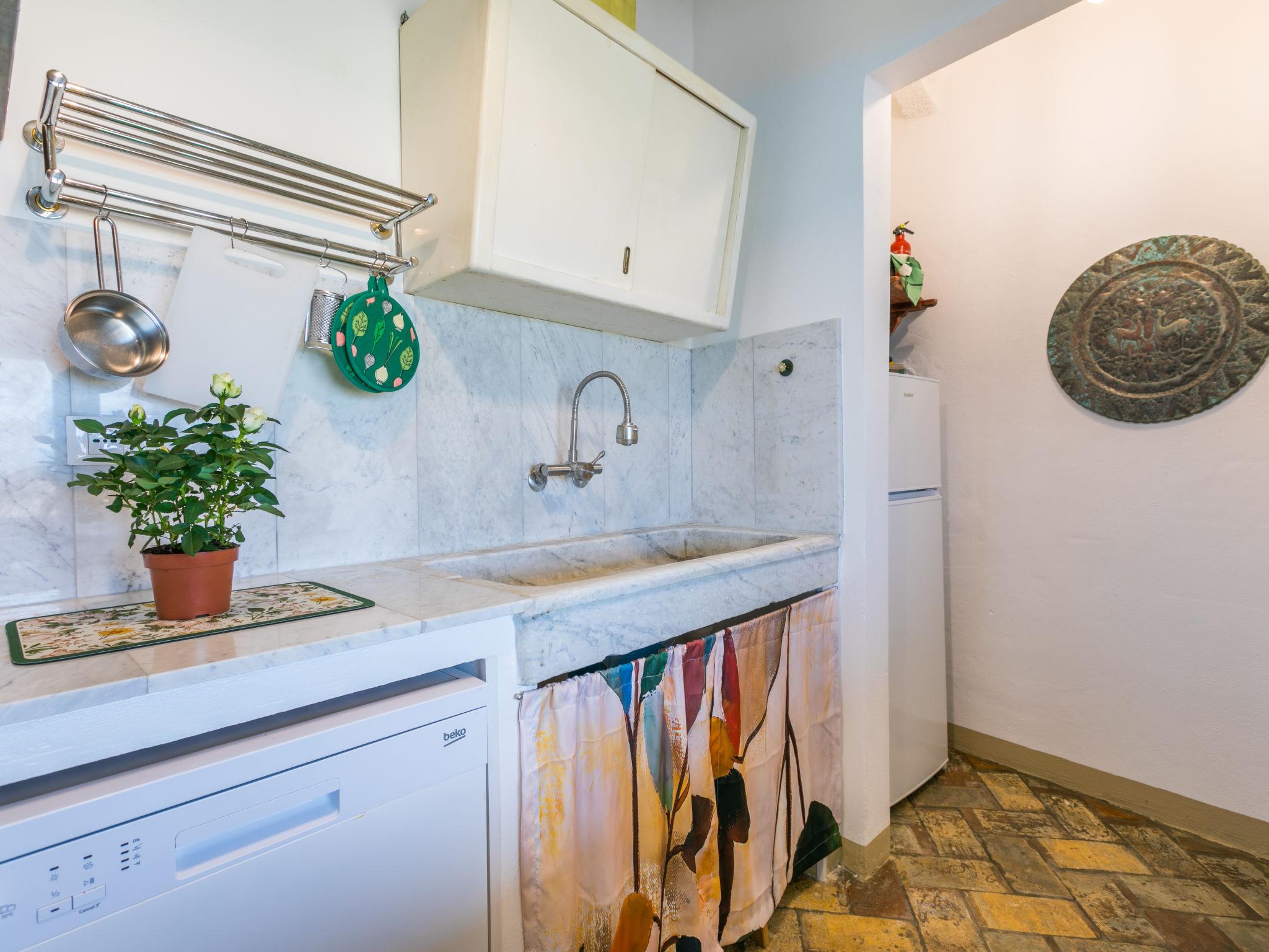 2-room house 60 m2, on the ground floor. Renovated in 2024, beautiful and stylish furnishings: living/sleeping room with 1 double sofabed, satellite TV, electric heating and air conditioning. Exit to the garden, to the terrace. 1 double bedroom with 1 double bed, electric heating and air conditioning. Open kitchen (oven, dishwasher, Gas stove, 4 gas rings, toaster, kettle, microwave). Exit pergola. Shower/bidet/WC. Terrace 20 m2. Terrace furniture, barbecue, deck chairs (4). Very beautiful view of the countryside. Facilities: washing machine, mosquito net, hair dryer. Internet (WiFi, free). Please note: maximum 3 pets/ dogs allowed. Fire extinguisher. IT050034C2KL9S65EI