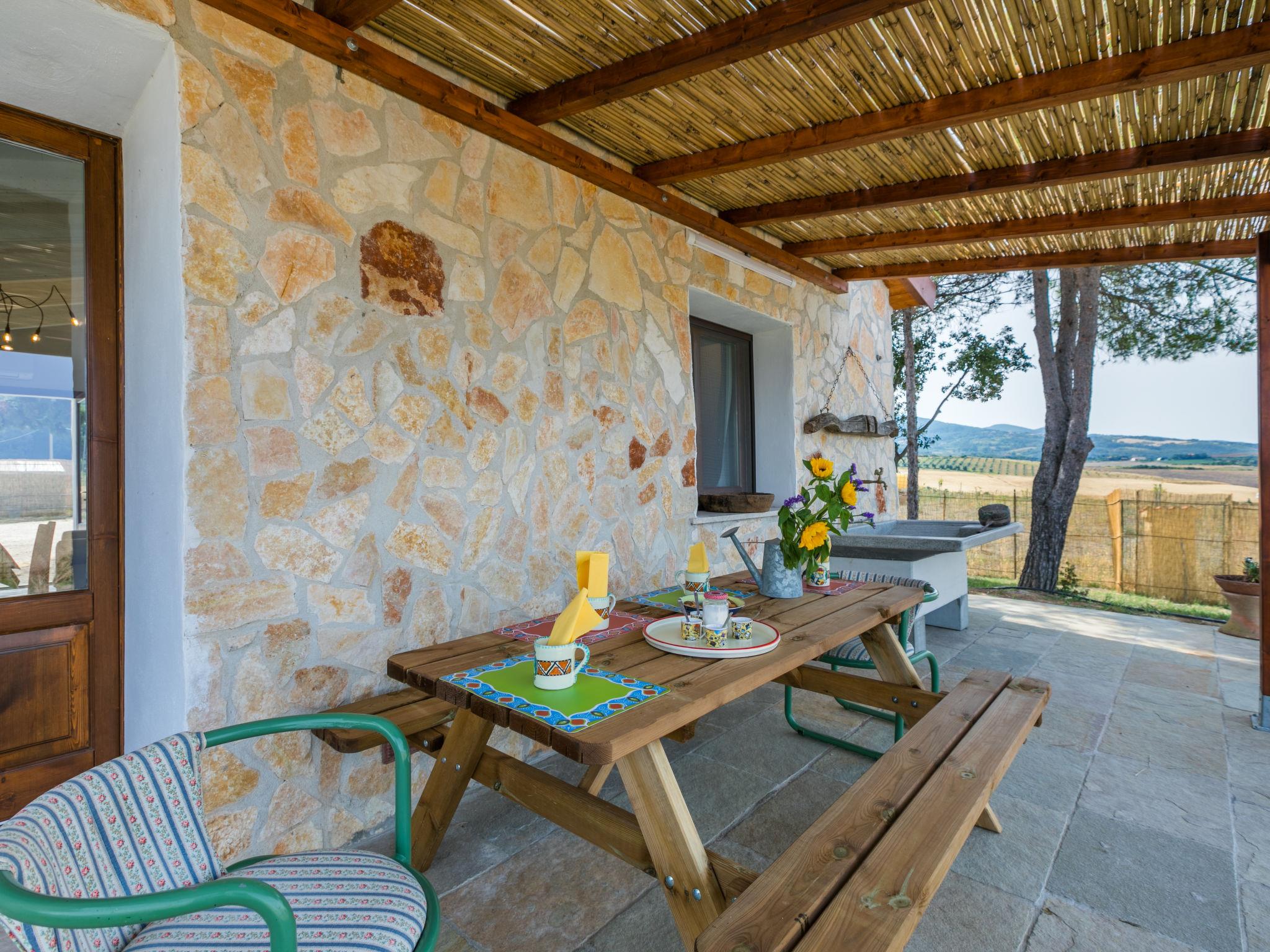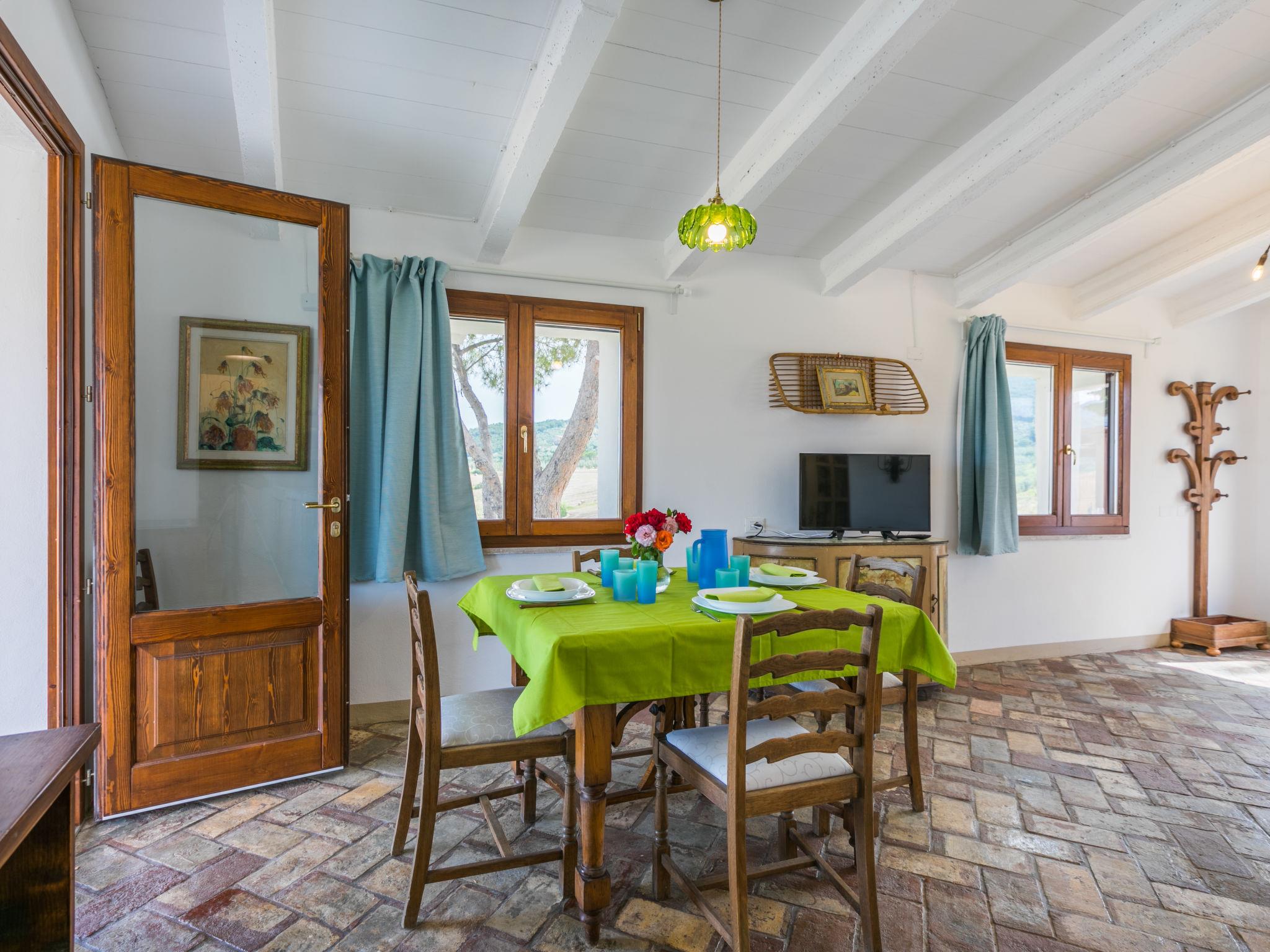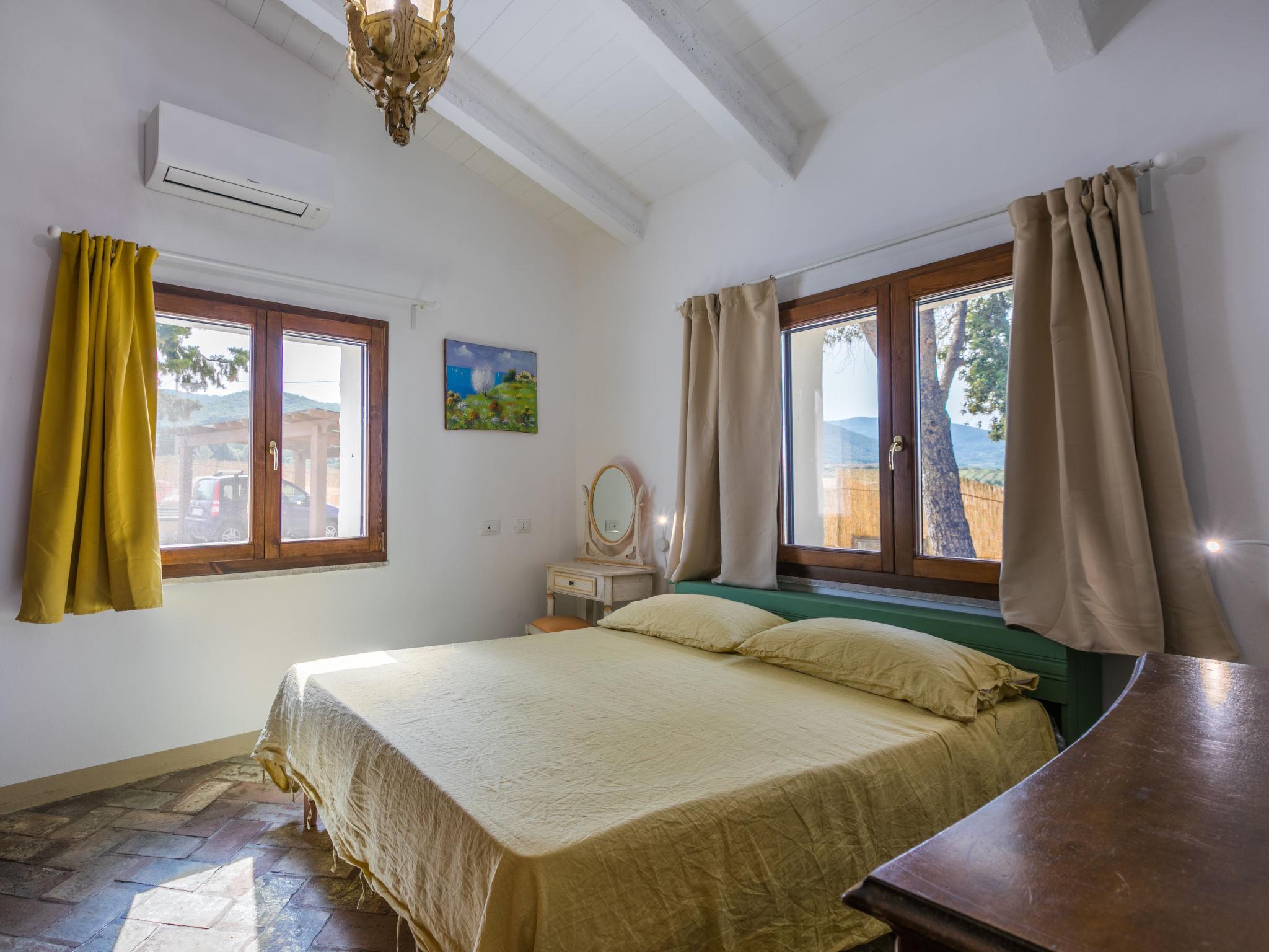 2-room house 60 m2, on the ground floor. Renovated in 2024, beautiful and stylish furnishings: living/sleeping room with 1 double sofabed, satellite TV, electric heating and air conditioning. Exit to the garden, to the terrace. 1 double bedroom with 1 double bed, electric heating and air conditioning. Open kitchen (oven, dishwasher, Gas stove, 4 gas rings, toaster, kettle, microwave). Exit pergola. Shower/bidet/WC. Terrace 20 m2. Terrace furniture, barbecue, deck chairs (4). Very beautiful view of the countryside. Facilities: washing machine, mosquito net, hair dryer. Internet (WiFi, free). Please note: maximum 3 pets/ dogs allowed. Fire extinguisher. IT050034C2KL9S65EI