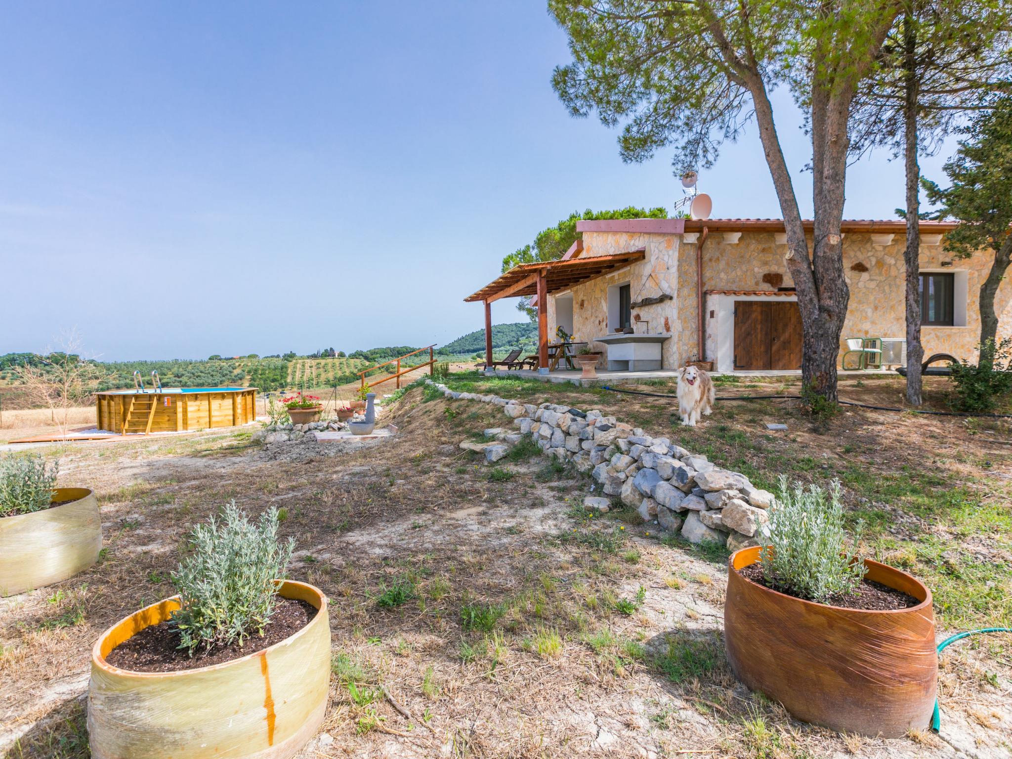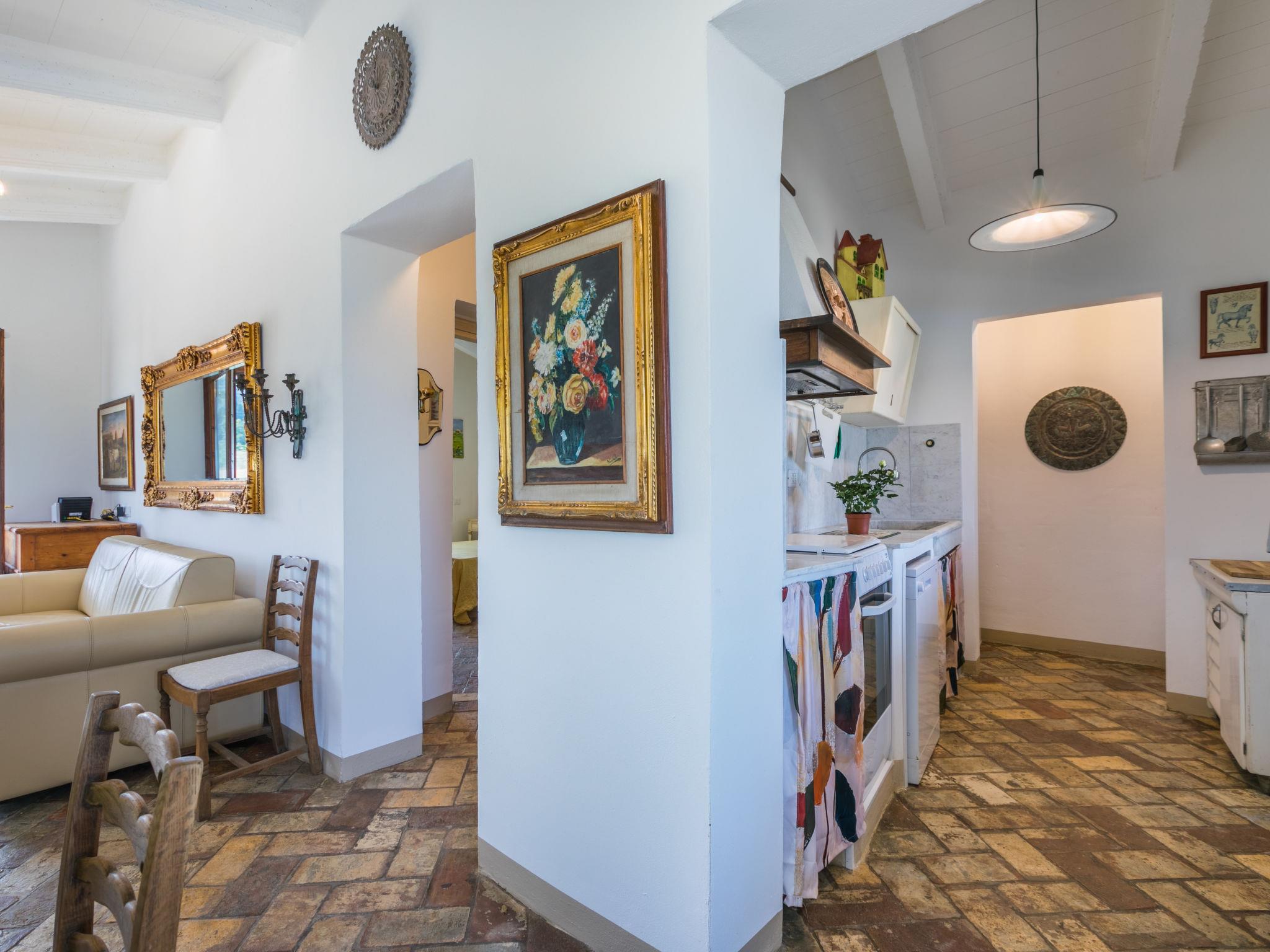 House "Casaletto Anticaluce", detached from the 18th century, renovated in 2024. 1.5 km from the centre of Pastina, 4 km from the centre of Pomaia, in a secluded, sunny position, 18 km from the sea, 18 km from the beach. Private: natural state property 2'500 m2 (fenced), natural garden, natural pond, swimming pool (above ground) (5 m diameter, depth 125 - 125 cm, seasonal availability: 12.Apr. - 30.Sep.). Outdoor shower, pool maintenance by the owner/gardener. Linen change (suppl. charge extra). Towel change (suppl. charge extra). Bumpy motor access (600 m via unmade road). Roofed, parking on the premises. Grocery 1.4 km, supermarket 15 km, restaurant 1.4 km, bus stop "Località Querciolo" 900 m, railway station "Rosignano Solvay" 18 km, sandy beach 18 km, rocky beach 18 km, thermal baths "Casciana Terme" 19 km. Marina 18 km. Nearby attractions: Pisa 45 km, Lucca 80 km, Firenze 95 km. Well-known lakes can easily be reached: Riserva Naturale Lago di Santa Luce 8 km. Please note: car recommended.