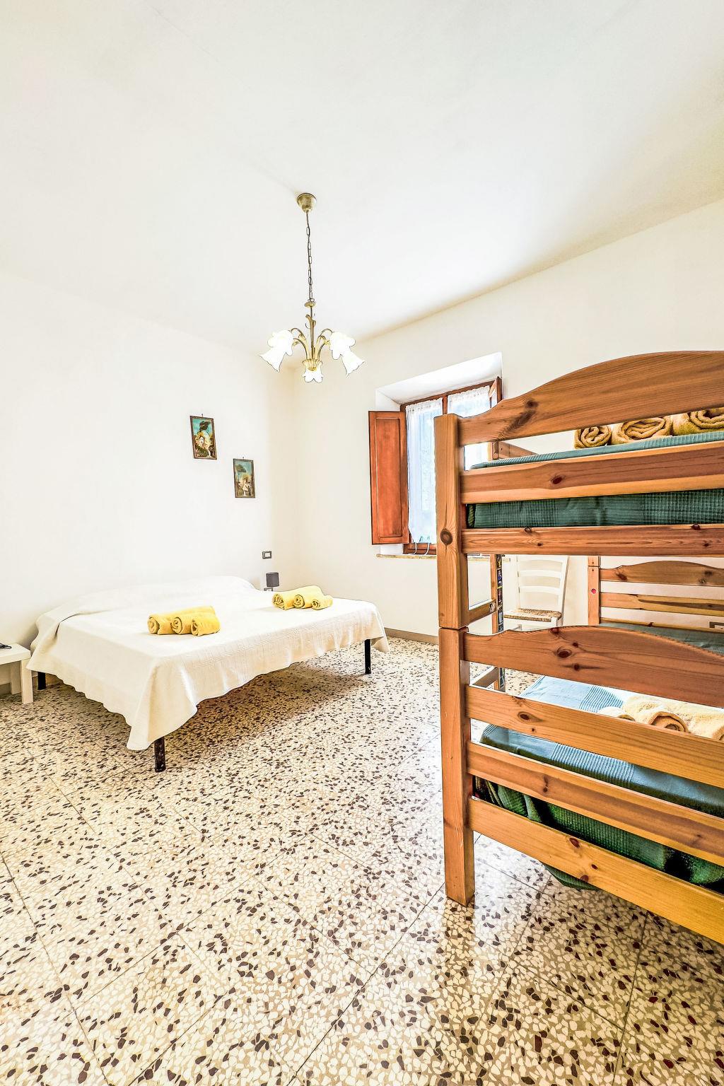 "Ambra", 3-room apartment 100 m2 on 1st floor. Renovated in 2023, beautiful and modern furnishings: upper floor: (exterior staircase) living/dining room with satellite TV. Exit to the balcony. 1 room with 1 double sofabed and 1 double bed. 1 room with 1 x 2 bunk beds, 1 double bed. Kitchen (oven, 4 induction hot plates, toaster, kettle, electric coffee machine). Shower/bidet/WC. Wood heating. Small balcony. Beautiful distant view. Facilities: baby cot for up to 2 year olds, logs (extra). Internet (WiFi, free). Maximum 1 pet/ dog allowed. IT050034B58I6AOP6B