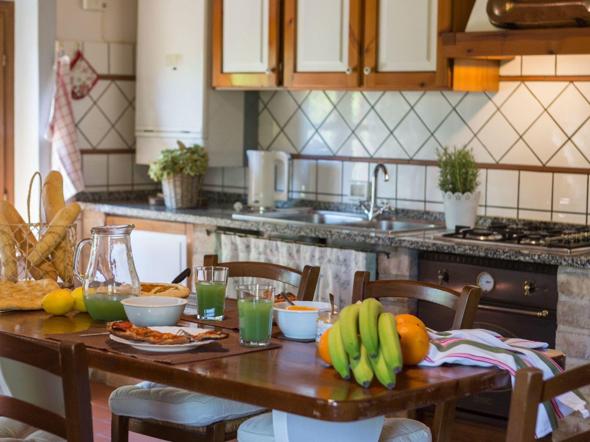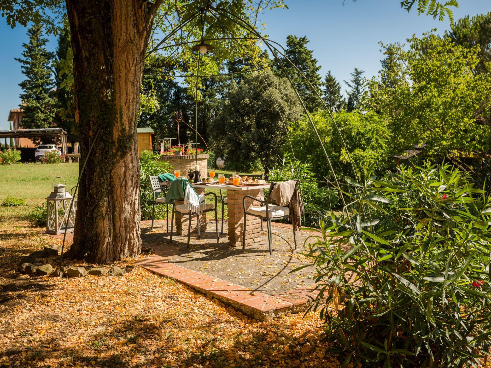 The holiday home has 8 comfortable flats furnished in Tuscan style, all with private terraces, terracotta floors and wood-beamed ceilings. The house is surrounded by a 7000-square-metre garden with swimming pool (20x8 m, open from May to October, depth: 1.4 to 3.0 metres) with hydro-massage corner, table tennis table, children's playground, outdoor barbecue and bocce court.