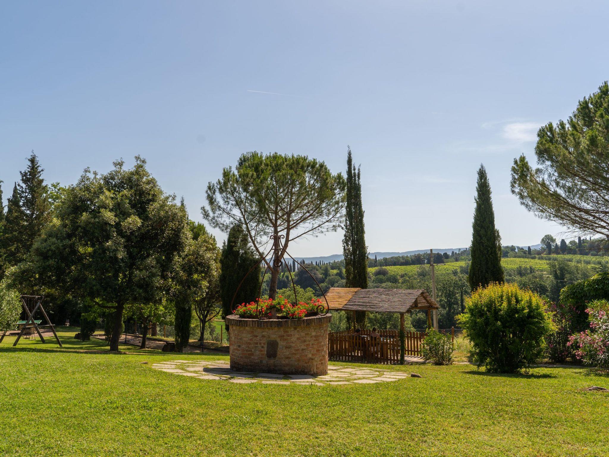 Large working farm. 8 apartments in the property. Property composed of main house and outbuilding 9.8 km from the centre of Peccioli, 24 km from the centre of Volterra, 35 km from the centre of San Gimignano, in a sunny position on top of a hill, 45 km from the sea. For shared use: garden (fenced), swimming pool (20 x 8 m, depth 140 - 300 cm, seasonal availability: 01.May. - 30.Oct.). Outdoor shower, table tennis, boccia, garden furniture, barbecue, children's playground, pool maintenance by the owner/gardener. In the house: lounge with TV, WiFi, central heating system, heating to be paid on the spot, heating available only from 01.Nov. - 07.Apr.. Breakfast possible (extra). Motor access to the house (800 m via unmade road). Parking on the premises. Grocery 3.8 km, supermarket 3.8 km, restaurant 500 m, bar 1 km, bus stop 1.5 km, sandy beach "Marina di Cecina, Vada, Tirrenia" 45 km, shingle beach "Castiglioncello" 60 km, thermal baths "Casciana Terme" 29 km. Golf course (18 hole) 13 km. Nearby attractions: Lajatico 21 km, Chianni 25 km, San Miniato 45 km, Pisa 55 km, Lucca 57 km, Bolgheri 62 km. Suitable for events.