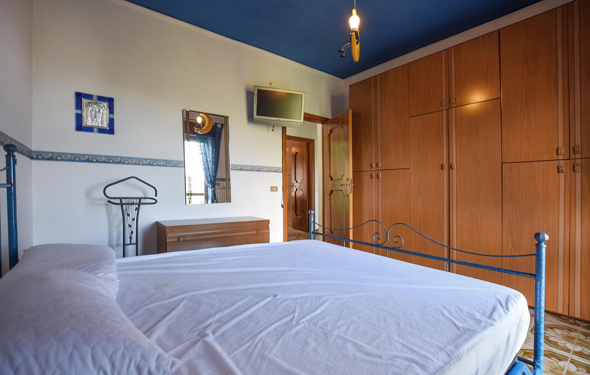Velkommen til denne hyggelige lejlighed i Perdifumo, der ligger i absolut bjergtagende omgivelser, og hvor I kan glæde jer til at komme i zen med familien. Huset er nydeligt indrettet med livlige farveskalaer, rustikke detaljer og et fuldt udstyret køkken, hvor I kan kræse om livretterne efter en skøn dag på farten. Flad ud i sofaen, hæld et godt glas vin op og smid en god film på tv'et, inden I går til køjs i de komfortable soveværelser.