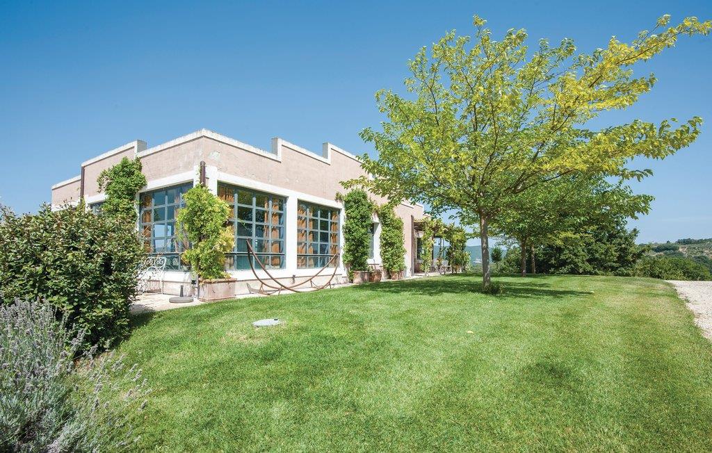 Huset ligger syd for Perugia (400 moh), og er dejligt rummeligt både ude og inde, totalt ugenert, også ved poolen og verandaen med grill og havemøbler. Villaen er fordelt på to etager. I stueplan er der rummeligt køkken, en stor og lys spisestue og en hyggelig stue. Soveafdelingen består af to store soveværelser med badeværelser med badekar en suite. Fra stuen fører en trappe ned til den underste etage, med aktivitetsrum hvor der er bordfodbold, flippermaskine, spillekonsol og et badeværelse med brusebad, biograf med stor skærm, billardværelse, musikværelse, bryggers med vaskemaskine, et soveværelse med sepatate senge og fire badeværelse, to med brusebad og to med badekar.