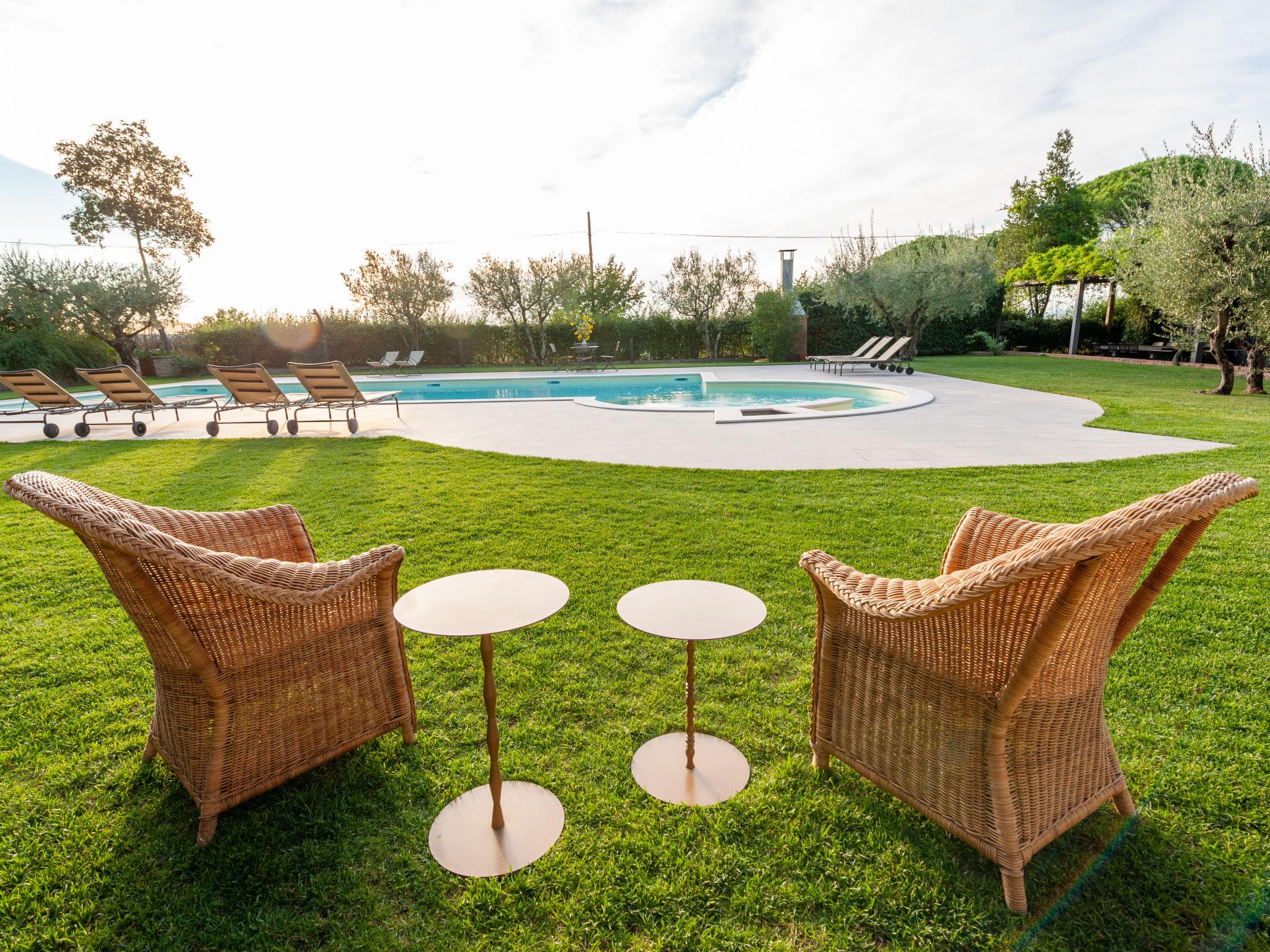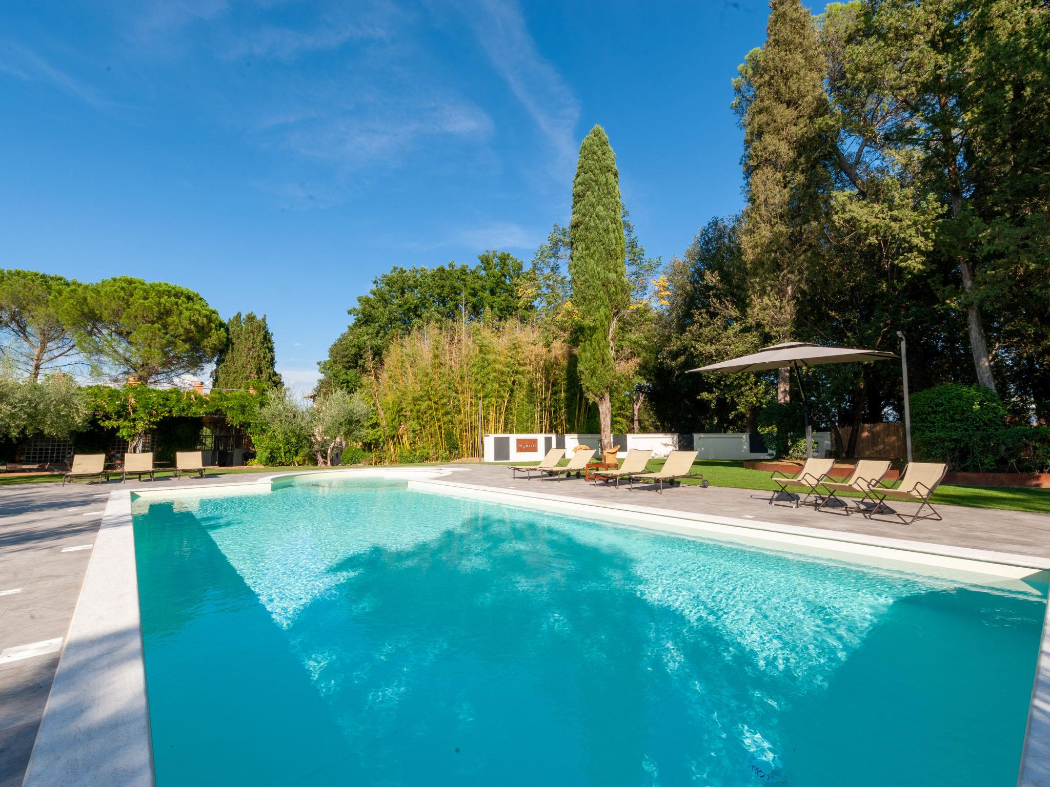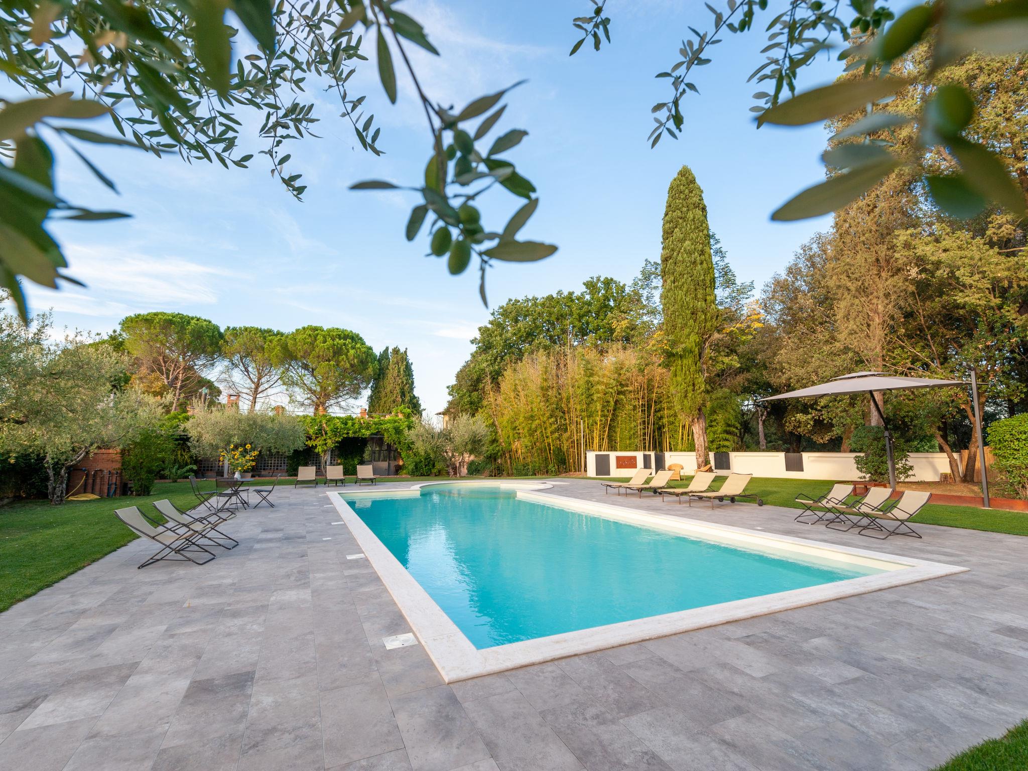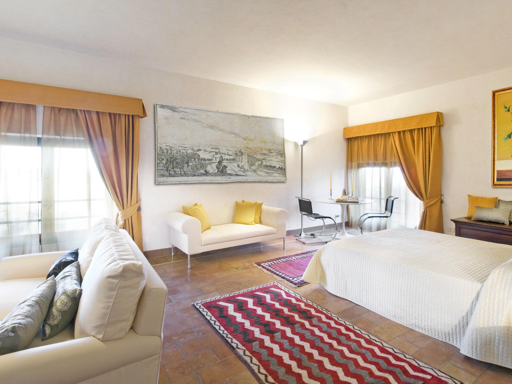 Exclusive 18th century villa immersed in a wonderful park luxurious villa "Angeli", renovated, surrounded by trees. In the hamlet Sant'Enea 10 km from the centre of Perugia, in a quiet, sunny position, 24 km from the lake, in the countryside. Private: property 17 ha (fenced), park, beautiful garden to relax, swimming pool with privacy (6 x 14 m, depth 120 - 140 cm, seasonal availability: 01.May. - 30.Sep.). Unconventional pool shape. Shower/WC in the pool area, outdoor shower, pergola, garden furniture, barbecue house. In the house: WiFi, solarium, washing machine, tumble dryer, heating available only from 15.Oct. - 15.Apr. (extra). Linen change weekly (suppl. charge extra). Room cleaning (extra). Cook on request. Breakfast on request. Pre-arrival grocery service. Motor access (500 m via unmade road). Parking. Grocery 1 km, supermarket 8 km, restaurant 1 km, bathing lake "Trasimeno" 24 km. Golf course (18 hole) 13 km, tennis 10 km, riding stable 10 km. Nearby attractions: Panicale 27 km, Bevagna 30 km, Todi 33 km, Passignano sul Trasimeno 35 km, Assisi 35 km, Città Della Pieve 37 km. Groups of teenagers on request only. Suitable for events. The Villa has its own chapel, covered barbecue area equipped with wood-burning brazier, pizza oven, gas hob, sink and refrigerator.