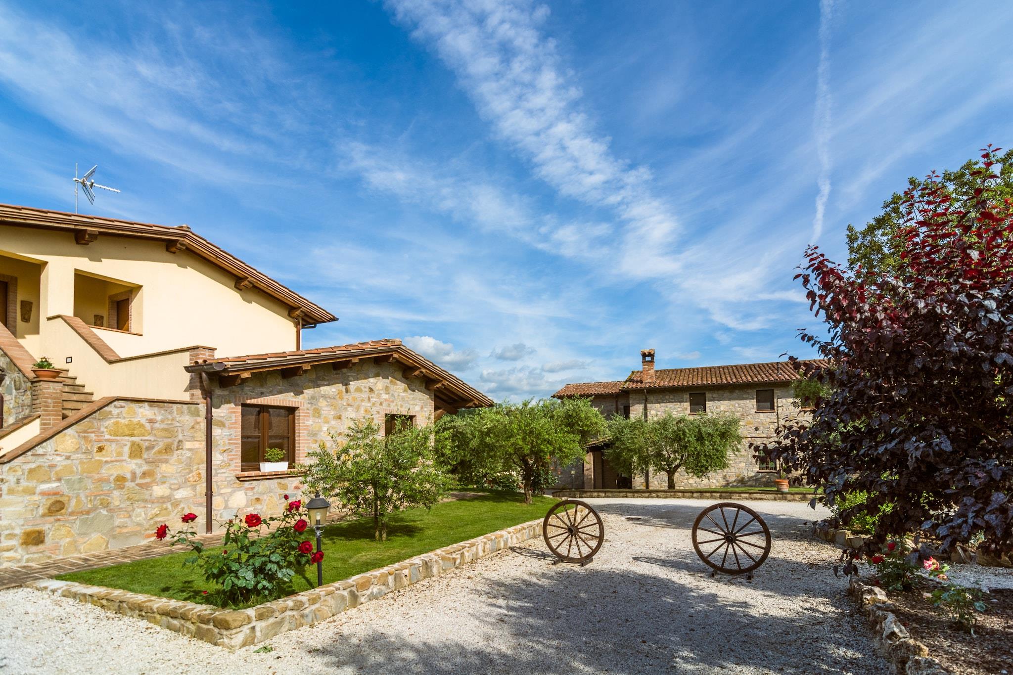 Denne bondegård bestående af 5 lejligheder med aircondition er nedsænket i de grønne umbriske bakker, omgivet af en storslået natur, og tilbyder dem, der vælger det, muligheden for en fredelig ferie, væk fra byens larm og hektiske tempo. i et gammelt stenbondehus fra det 19. århundrede, fuldstændig renoveret med respekt for kanonerne fra den gamle umbriske landlige tradition, med særlig omhu for møblerne, der tilbyder et traditionelt varmt og indbydende miljø. "En ideel mulighed for at spise ude eller nyde et glas vin på behageligt sommeraftener. Ved siden af stuehuset er swimmingpoolen med jacuzzi-hjørne for at finde forfriskning på sommerdagene, for helt at opgive bylivets stress, et wellness-rum med jacuzzi. Dens strategiske placering tillader, hvem ønskede at forene et behageligt afslappende ophold på landet med besøg i de vigtigste og suggestive umbriske kunstbyer: Perugia, Gubbio, Assisi, Spello, Spoleto. I mere end fyrre år har virksomheden været involveret i dyrkning af korn, avl af kvæg og svin, vindyrkning og olivendyrkning, med egen produktion af ekstra jomfru olivenolie, vin og speget kød. Alt dette har for nyligt fået selskab af agriturisme-aktiviteten. Brugen af wellness-området er mod betaling, efter anmodning baseret på tilgængelighed og aftales på stedet (rabatter for børn under 12 år).