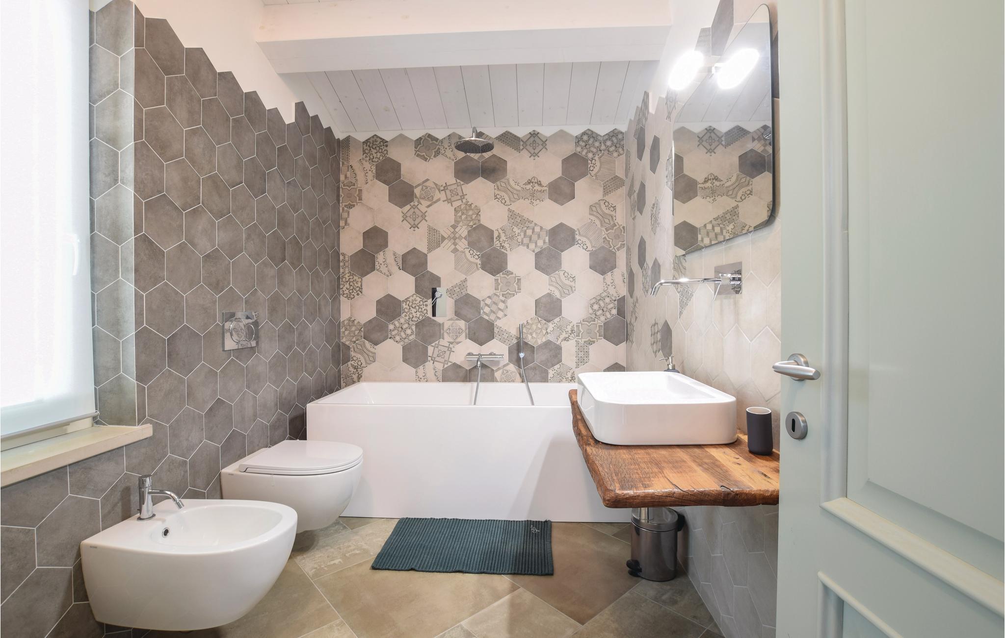 Badeværelse (nr. 1) - WC. Varmt og koldt vand. Badekar
