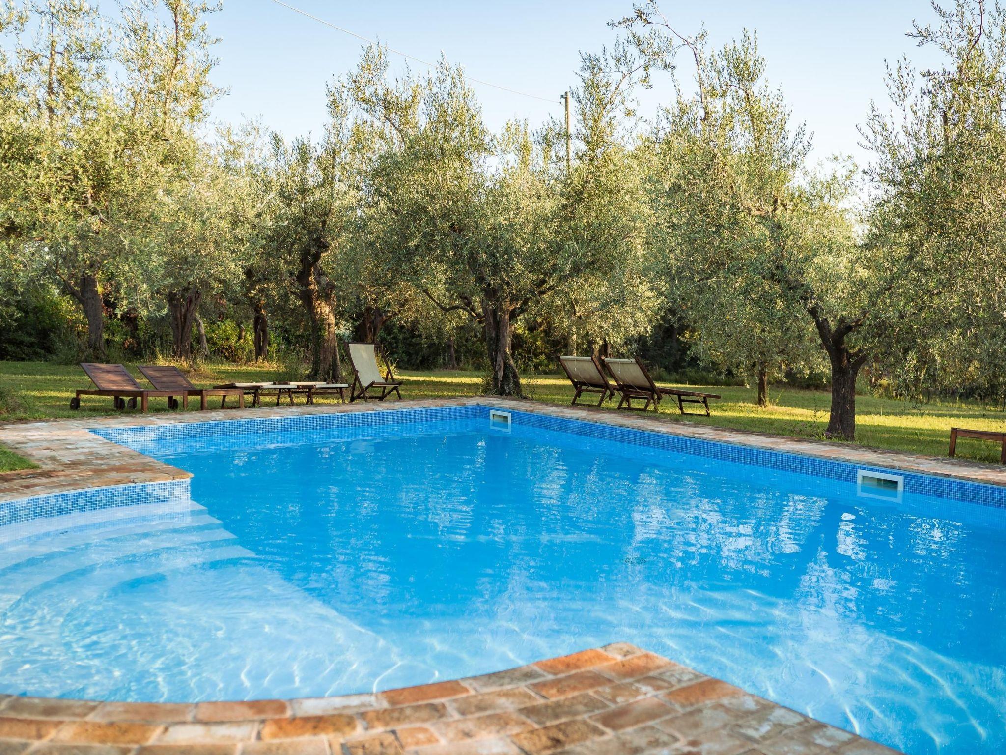 Outside, the panoramic terrace is perfect for lunches, dinners or aperitifs while admiring the view of the hills and the sea. The summer swimming pool, immersed in a centuries-old olive grove, is reserved for guests and offers deckchairs and sunbeds for moments of absolute relaxation. The large garden with century-old trees, tables and chairs allows guests to fully enjoy the natural beauty of the property, while the barbecue adds a convivial touch to outdoor evenings.
