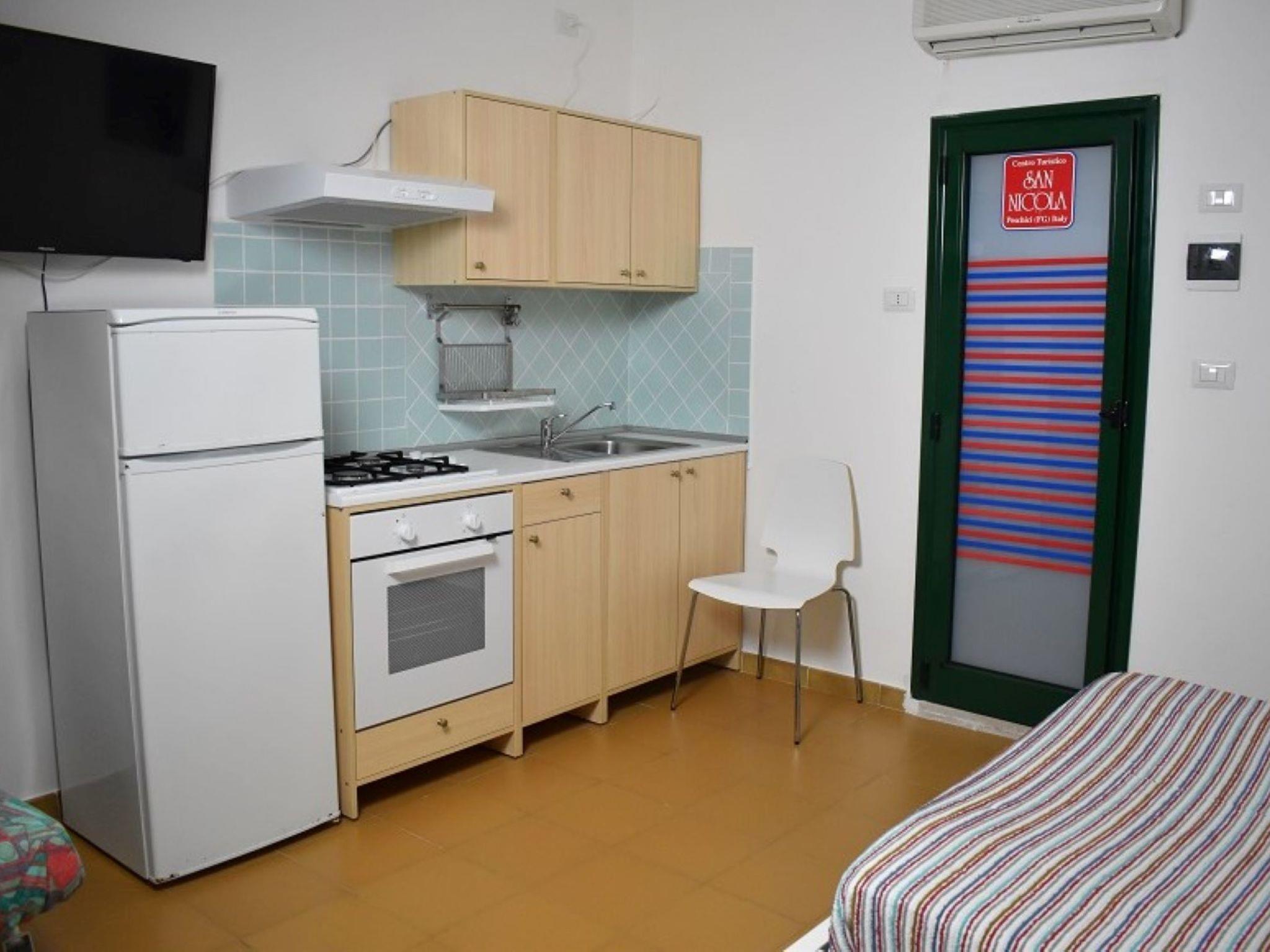 Child friendly holiday village "Centro Turistico San Nicola", surrounded by trees. 45 houses in the resort. In the district of San Nicola 3.2 km from the centre of Peschici, 22 km from the centre of Vieste, 20 km from the centre of Rodi Garganico, in an elevated position, 100 m from the sea, 100 m from the beach, direct access to the beach. For shared use: property 13 ha (fenced) with plants and trees. Tennis, beach volleyball, children's playground. In the complex: restaurant, shopping facilities, bicycle rental. Breakfast full board half board possible on request (extra). Grocery 100 m, supermarket 2.2 km, bar 100 m, bus stop 2 km, sandy beach 60 m. Nearby attractions: Parco Nazionale del Gargano, Riserva Naturale della Foresta Umbra 23 km, Termoli 111 km. Please note: entertainment in the season. Suitable for families.