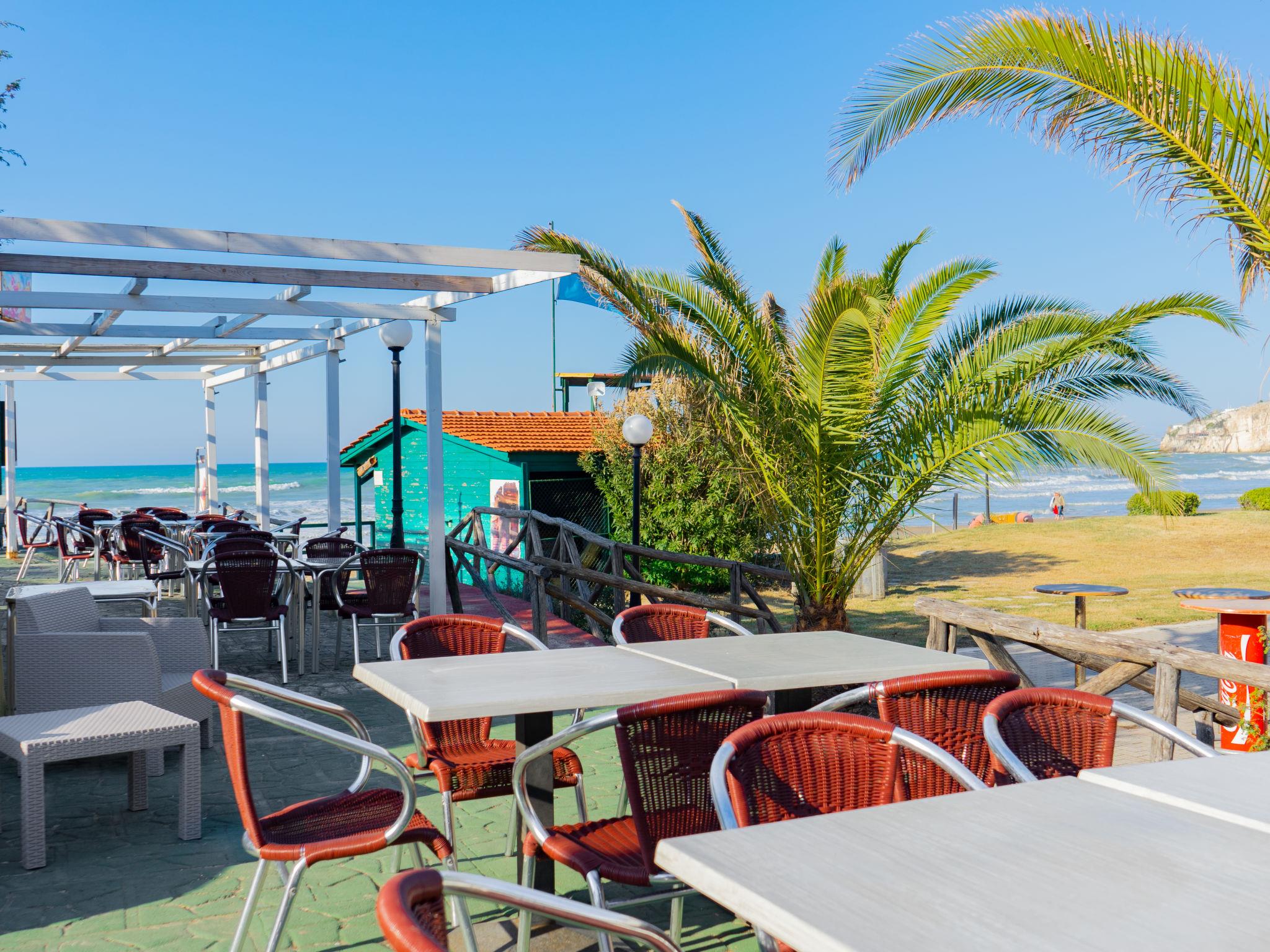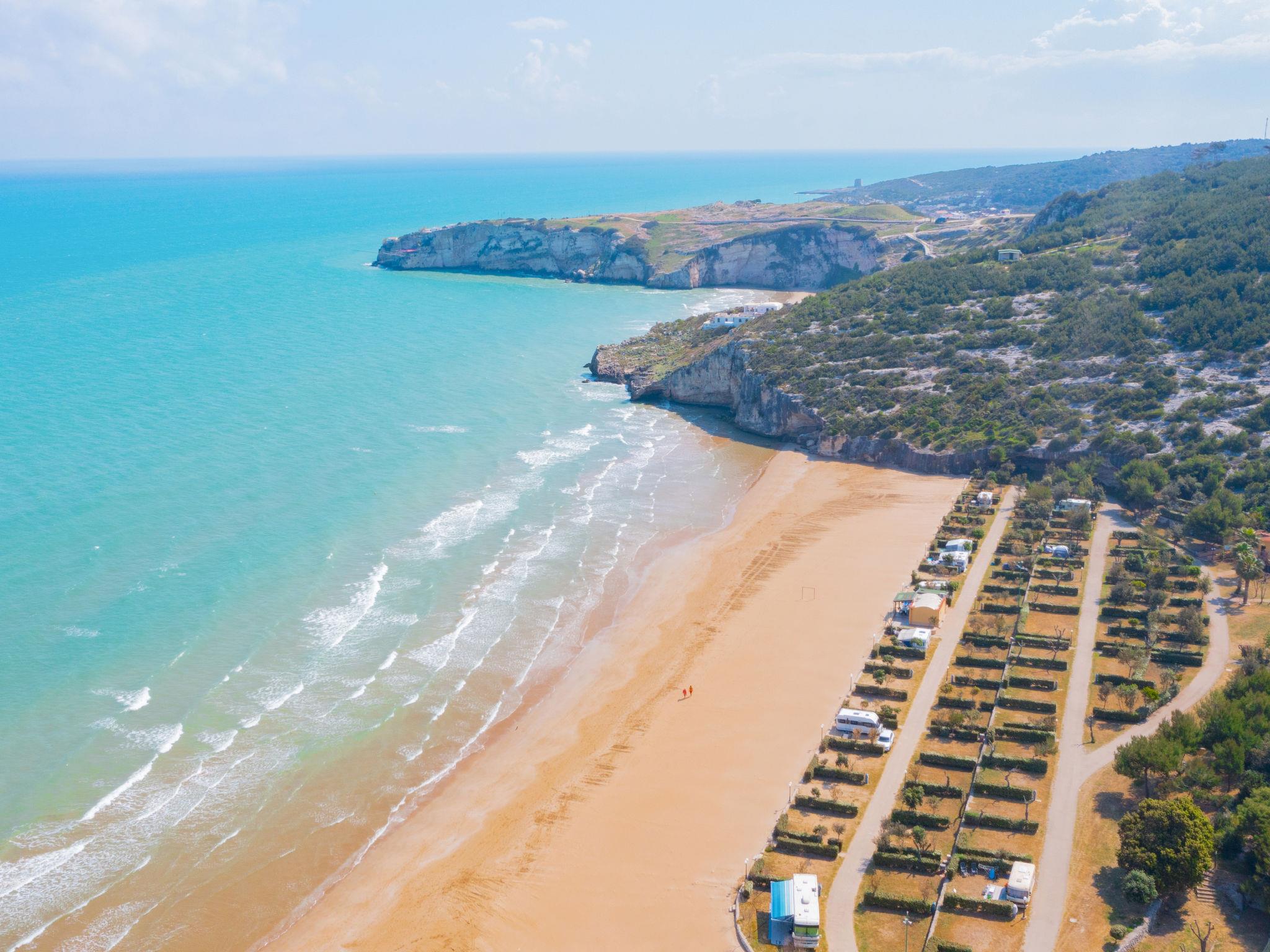 Child friendly holiday village "Centro Turistico San Nicola", surrounded by trees. 45 houses in the resort. In the district of San Nicola 3.2 km from the centre of Peschici, 22 km from the centre of Vieste, 20 km from the centre of Rodi Garganico, in an elevated position, 100 m from the sea, 100 m from the beach, direct access to the beach. For shared use: property 13 ha (fenced) with plants and trees. Tennis, beach volleyball, children's playground. In the complex: restaurant, shopping facilities, bicycle rental. Breakfast full board half board possible on request (extra). Grocery 100 m, supermarket 2.2 km, bar 100 m, bus stop 2 km, sandy beach 60 m. Nearby attractions: Parco Nazionale del Gargano, Riserva Naturale della Foresta Umbra 23 km, Termoli 111 km. Please note: entertainment in the season. Suitable for families.