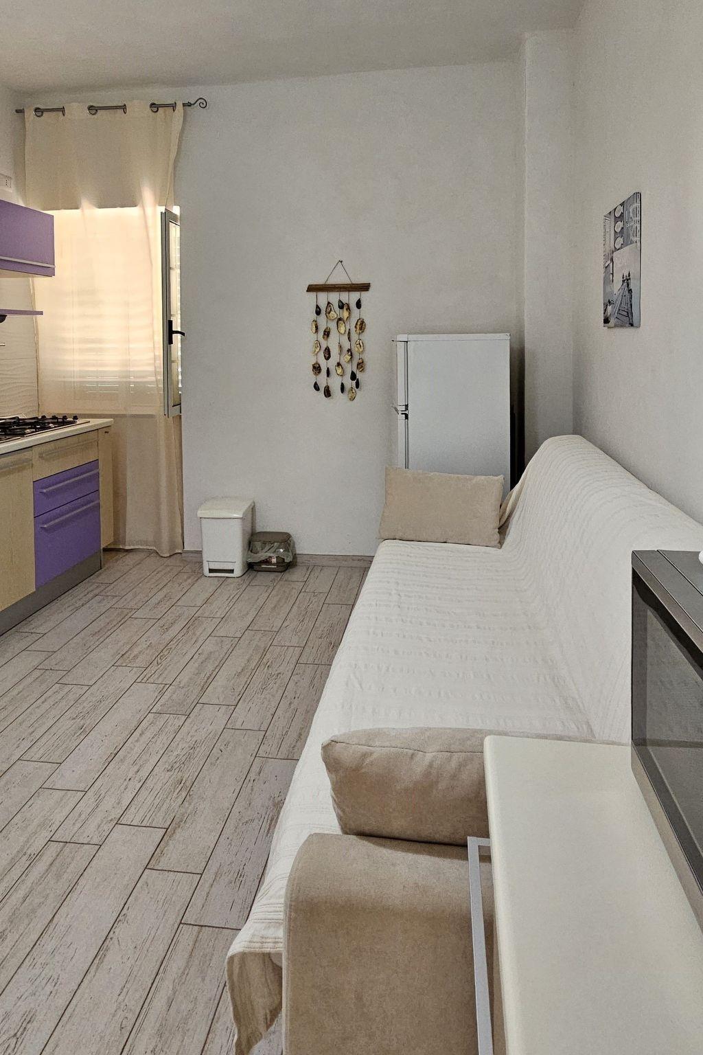 Internally, the flat stands out for its functionality and comfort. The living area is well organised, equipped with a comfortable sofa bed that can accommodate two additional guests, as well as a flat-screen TV for relaxing moments. The bedroom has a cosy double bed, promising a peaceful and restful rest. The interior is completed by a fully equipped gas kitchen, including a coffee maker, where you can prepare delicious meals as if you were at home.