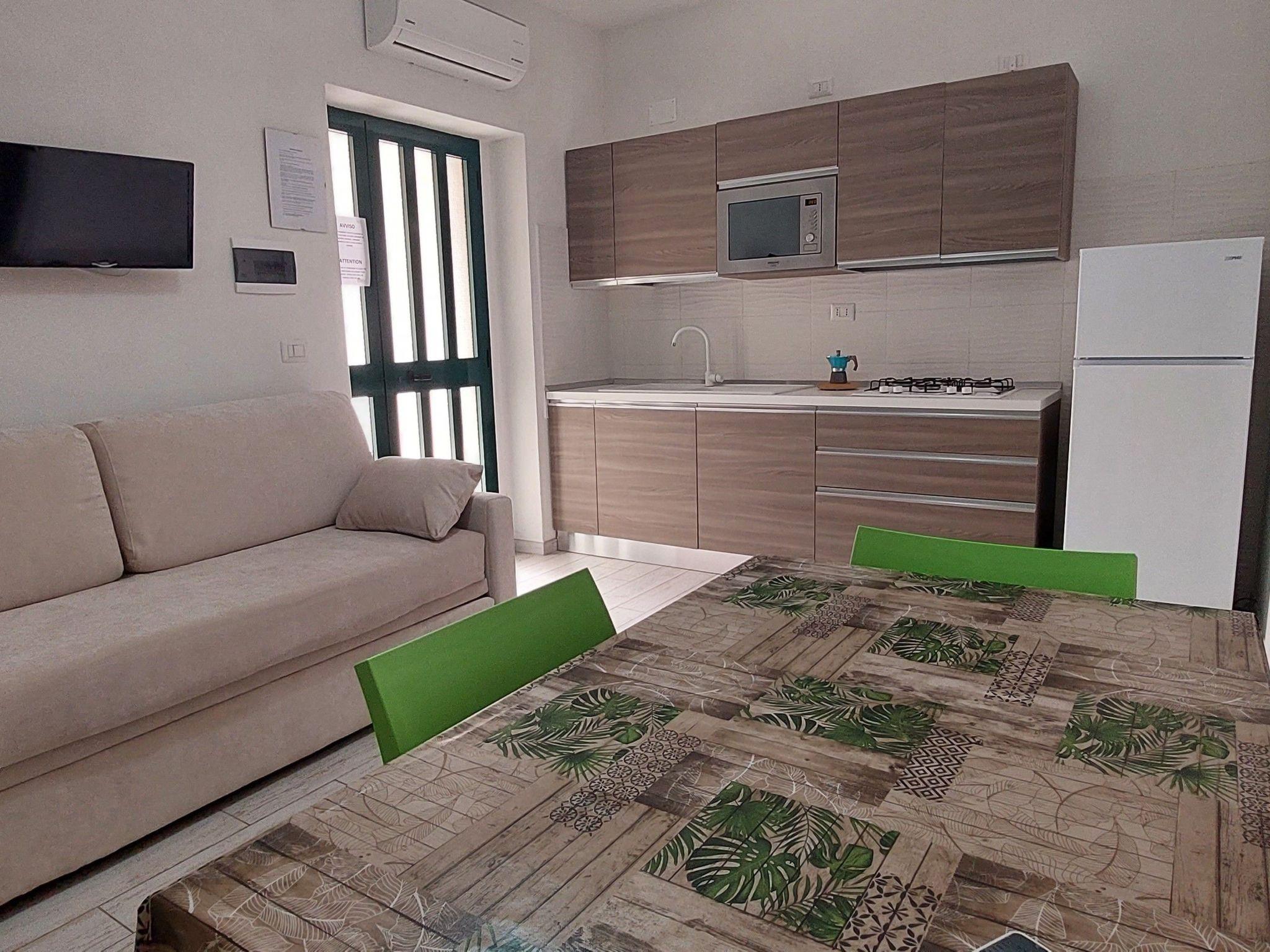 Inside, you will find two cosy double bedrooms that promise peaceful rests after days full of adventures. The living area is furnished with a practical kitchenette, ideal for preparing light meals or quick snacks before exploring the surroundings. A comfortable sofa bed in the living room easily converts into two single beds, offering guests flexibility. The presence of a TV allows for moments of relaxation and entertainment without leaving the comfort of one's own living space.