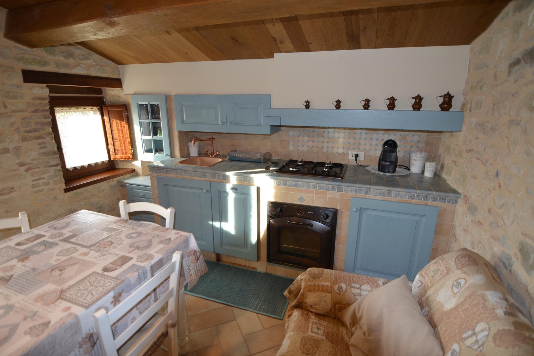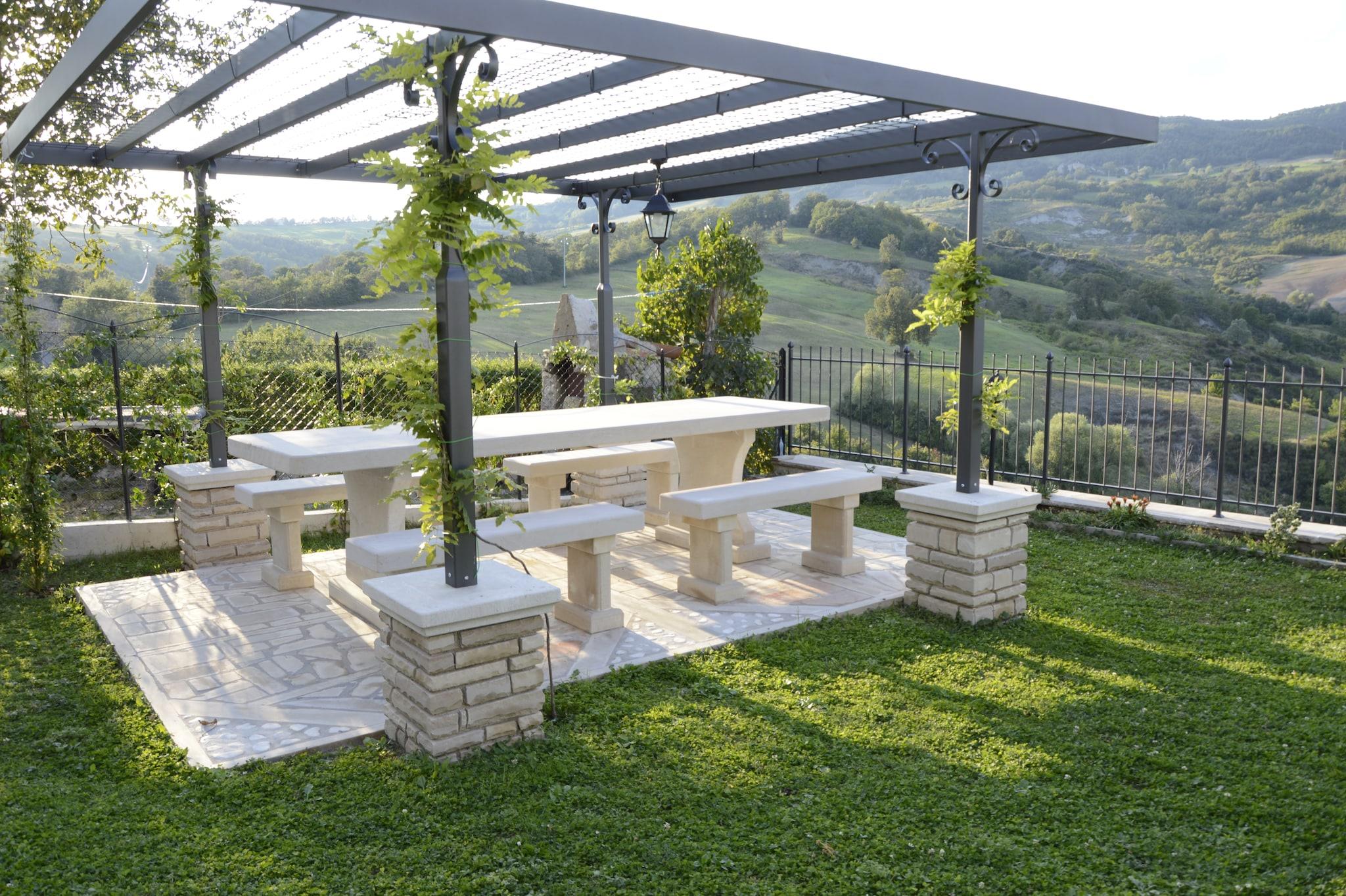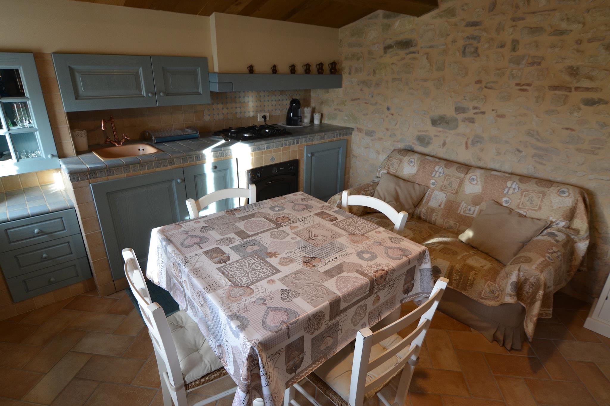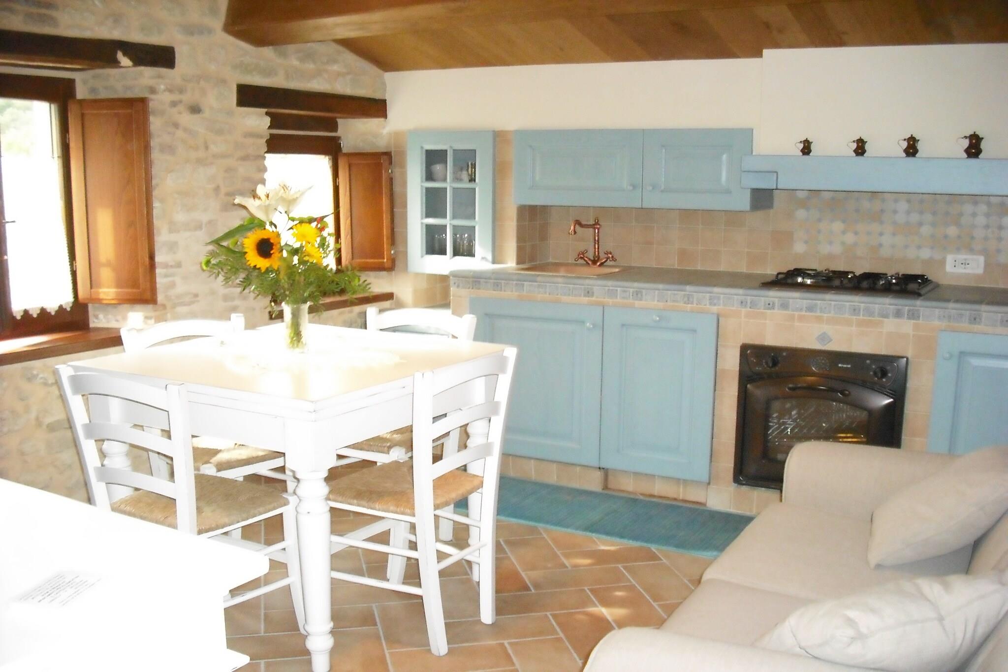 Denne lejlighed i traditionel stil ligger gemt væk i middelalderlandsbyen Petrella Guidi og tilbyder en fredelig flugt omgivet af natur og historie. Boligen bevarer sin autentiske charme med rustik indretning og hyggelige detaljer, perfekt til par eller små familier. Den fælles have, komplet med udendørs møbler og en grill, har udsigt over de fejende grønne bakker, hvilket gør det til et ideelt sted at slappe af. Lejligheden er kun tilgængelig til fods gennem gamle stentrapper og garanterer ro væk fra støjen fra det moderne liv. Petrella Guidi er en rolig perle i Emilia-Romagna og en perfekt base for naturelskere. Kun 3 km væk finder du naturskønne skovstier og stier langs floden, ideelle til afslappede vandreture eller kæledyrsvenlige eventyr. En kort køretur tager dig til middelalderbyerne Sant'Agata Feltria og San Leo - begge kendt for deres fæstninger, panoramaudsigt og kulturelle charme. Om vinteren er skiløb i det nærliggende Monte Carpegna en populær aktivitet, mens sommeren byder på golf, ridning og søbesøg kun en kort køretur derfra. For madentusiaster er regionen en kulinarisk skat. Nyd solide Romagnolo-retter på Osteria da Nando eller Il Castello, kendt for lokale trøfler, håndlavet pasta og rige vine. Hent friske råvarer fra nærliggende markeder kun 6 km væk, eller forkæl dig selv med et roligt landskabsmåltid under stjernerne med lokal prosciutto og formaggio. Uanset om du udforsker eller slapper af, er denne lejlighed din gateway til autentisk italiensk livsstil.