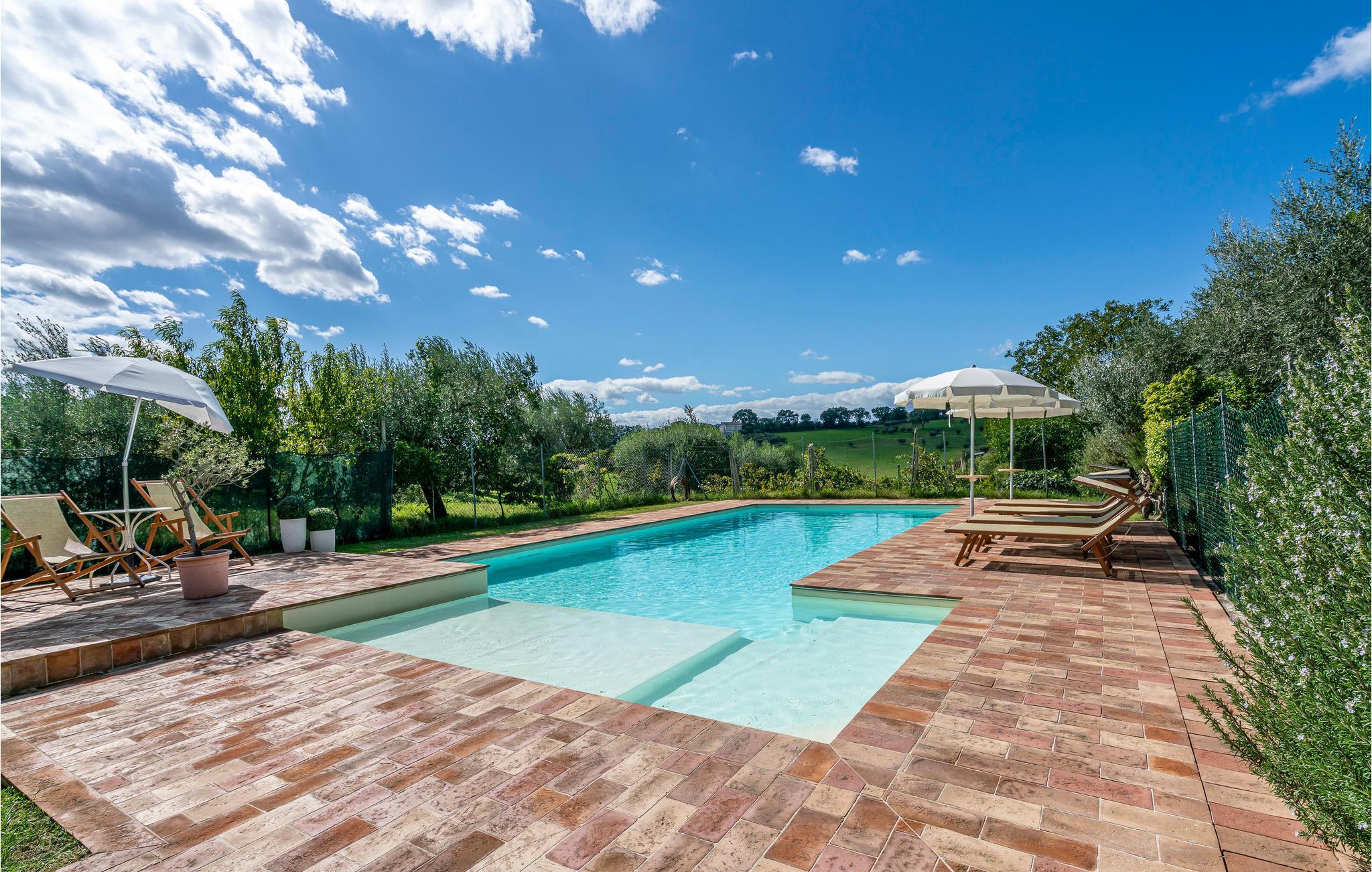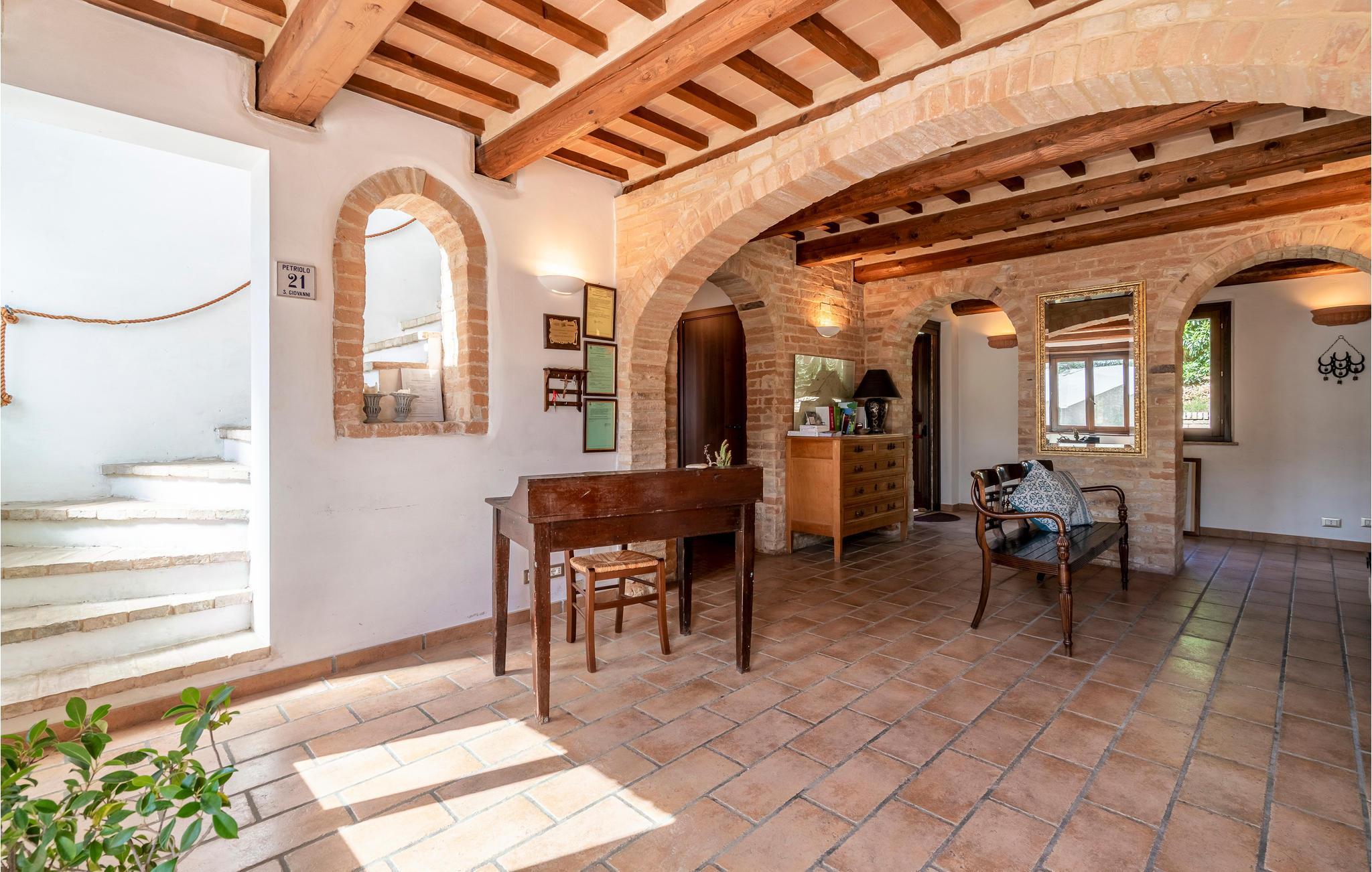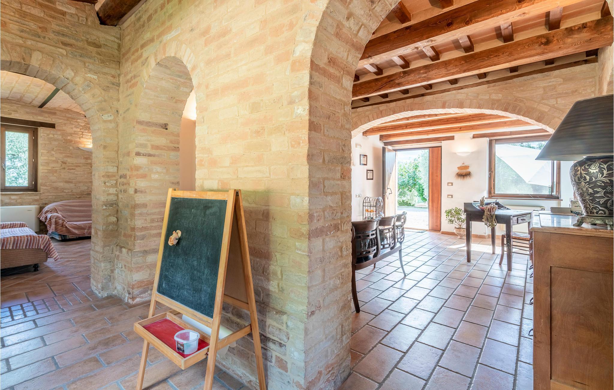 Dette kærligt restaurerede bondehus nær Petriolo tilbyder den perfekte ramme for en uforglemmelig ferie. Oplev kultur, tradition og naturens skønhed i Marche-regionen, og nyd den varme gæstfrihed. Rummene er indrettet i traditionel stil med moderne komfort. Den rummelige spisestue med sin charmerende brændeovn og det hyggelige køkken giver de perfekte betingelser for hyggelige aftener. Derudover er der et separat anneks, der er ideelt til større grupper eller familier.