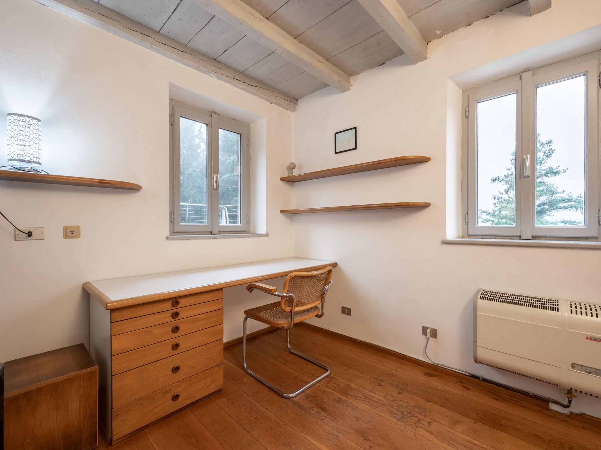 3-room house 70 m2 on 3 levels. Practical furnishings: living/dining room with panoramic window. Exit to the patio. Open kitchen (4 hot plates, oven, dishwasher) with open-hearth fireplace (only for decoration). Bath/bidet/WC. Upper floor: 1 open room with 1 x 2 bunk beds. 2nd upper floor: 1 double bedroom with sloping ceilings, without wardrobe with separate WC. Electric heating, gas heating (extra). Heating available only from 15.10. to 15.04. Patio 8 m2. Balcony furniture. View of the lake and the mountains. Facilities: washing machine, baby cot for up to 2 year olds (extra). Please note: smoke alarm, fire extinguisher. The room with the bunk beds overlooks a pond with aquatic plants. To access the room with the double beds (with carpet), you have to go through the room with the bunk beds. Ground floor has stone flooring. IT003116C2GTRBPVDR