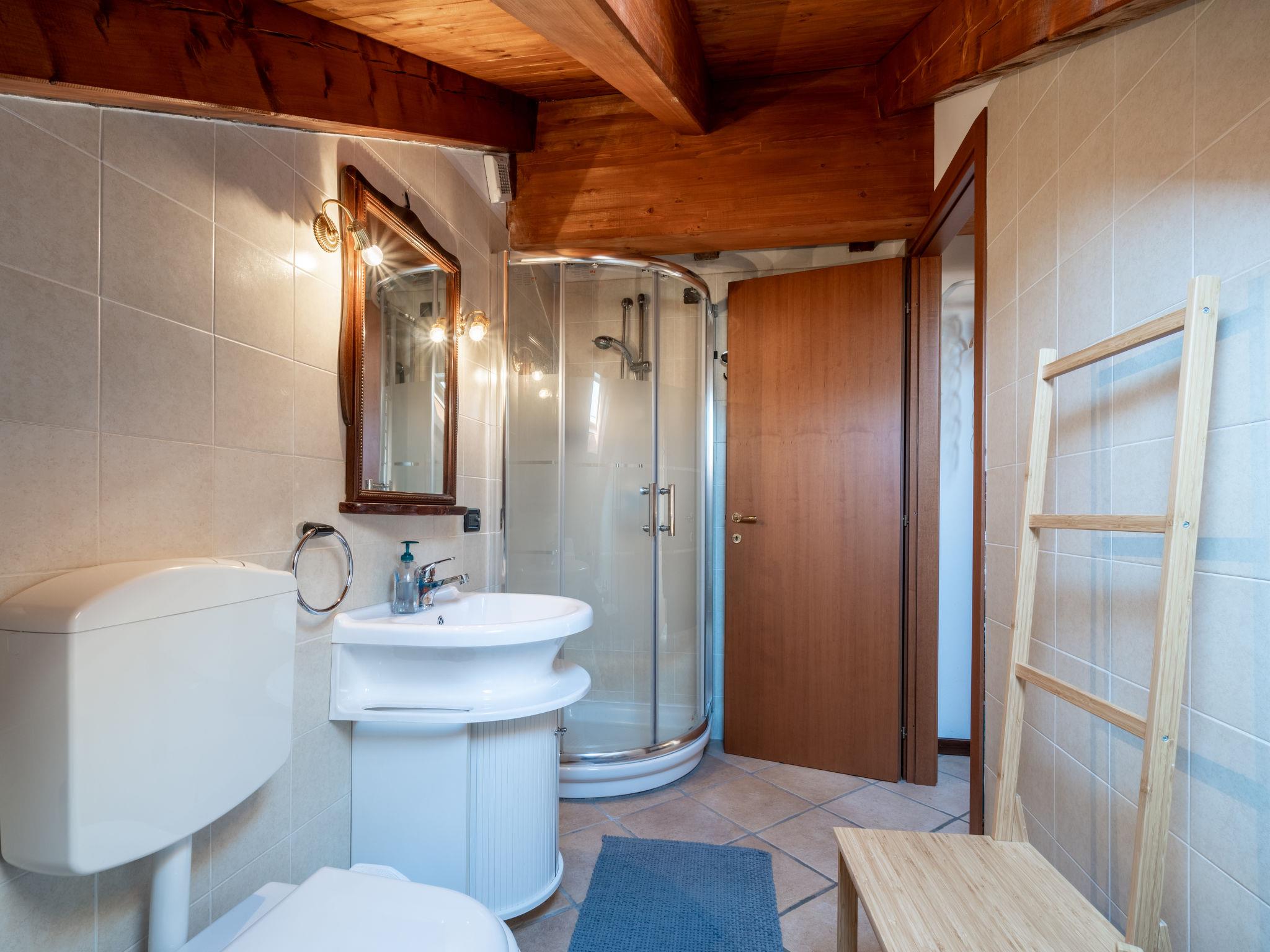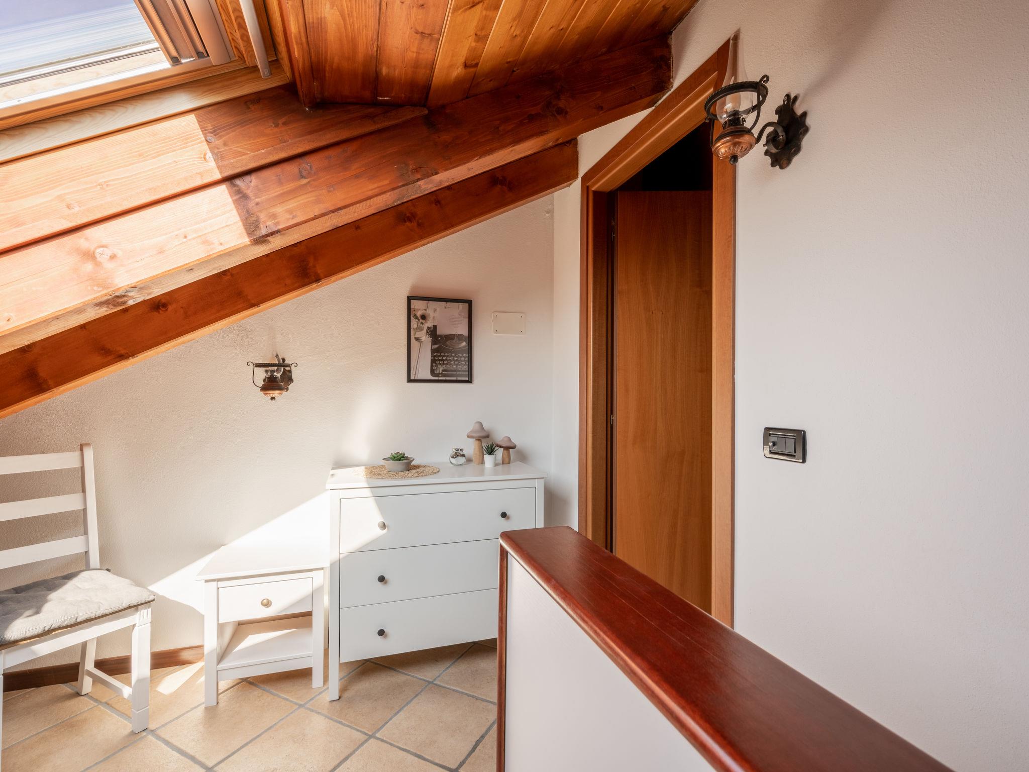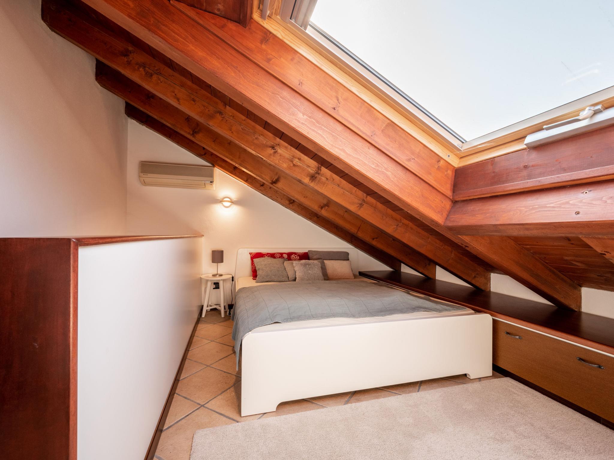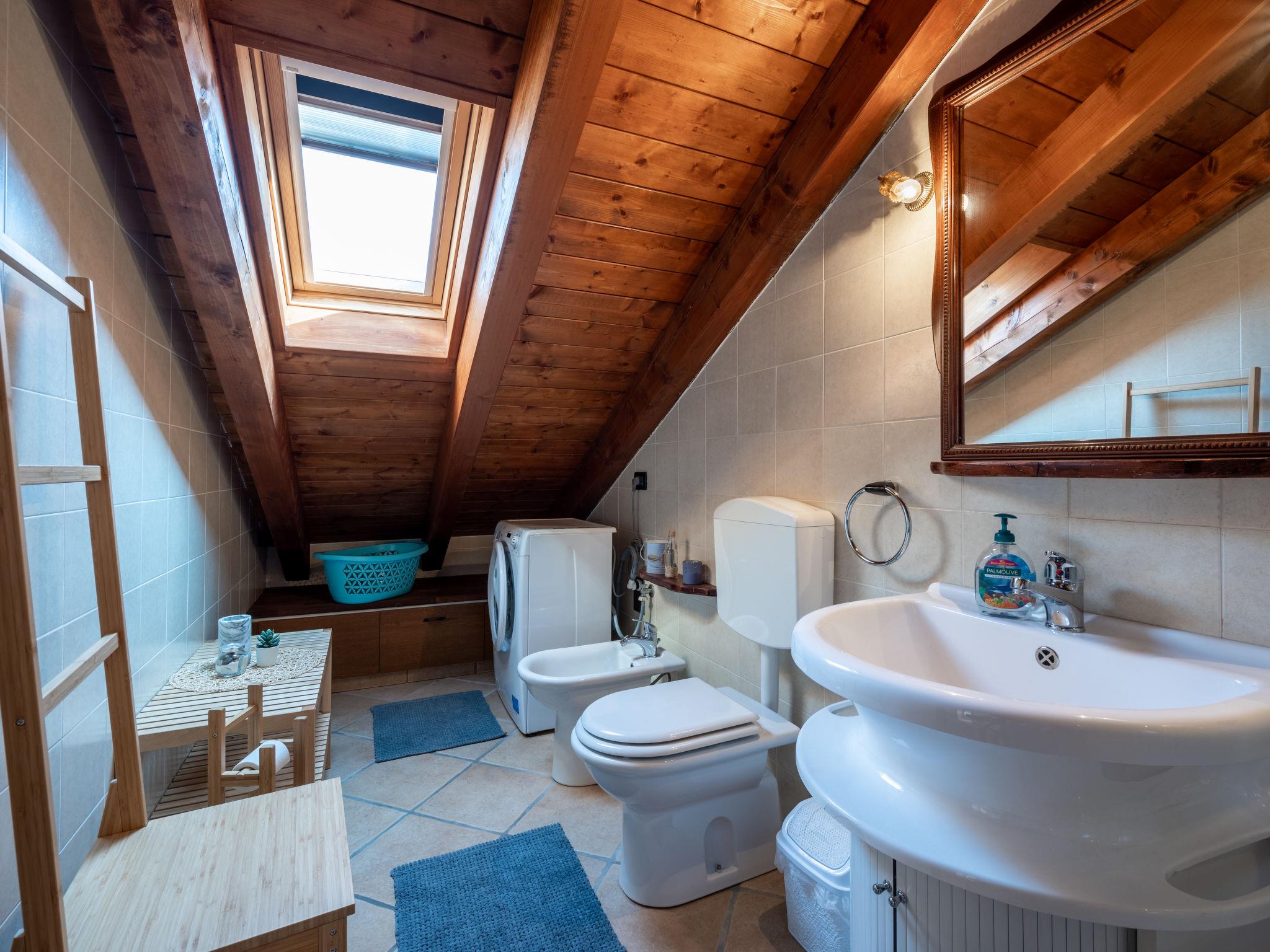 3-room apartment 60 m2 on 2 levels. Living room with 1 sofabed and digital TV. Exit to the balcony. Kitchen (oven, 4 gas rings, electric coffee machine) with dining table. Exit to the terrace. Shower/bidet/WC. Gas heating. Heating available only from 15.10. to 15.04. Upper floor: open walk-through room with sloping ceilings with 1 double bed. 1 double bedroom with sloping ceilings with shower/bidet/WC. Balcony, small terrace. Terrace furniture, deck chairs (2). Partial view of the lake. Facilities: washing machine, hair dryer. Internet (WiFi, free). Garage. Maximum 1 pet/ dog allowed. IT003116C2PH6UBQV6