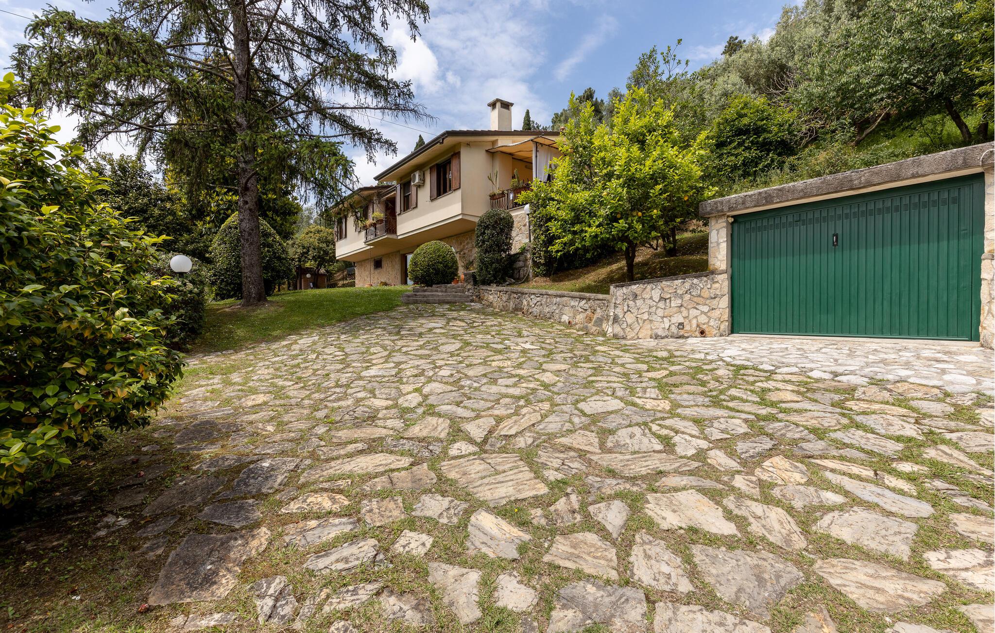 Fritliggende hus med pool, der ligger i Versilias skønne bakker i Piano di Mommio. Det ligger på en terrasseformet anlagt grund i en smuk have. Her kan I lege sammen i det fri, lave mad udendørs, hoppe en tur i husets private pool lige når I har lyst, slappe af på den store veranda og holde formen på den overdækkede terrasse med fitnessapparater. Der er kun syv km til Lido di Camaiore med mulighed for at bade og sin markante pier, der strækker sig hele 285 m ud i havet. Pietrasanta (7 km) er byen der er kendt for sin forarbejdelse af marmor og bronze og for sit historiske centrum med kunstgallerier, Viareggio ( 9 km) med sine færgeforbindelser til det betagende smukke Cinque Terre. Der er adgang til villaen direkte fra parkeringspladsen ad en trappe med 20 trin.