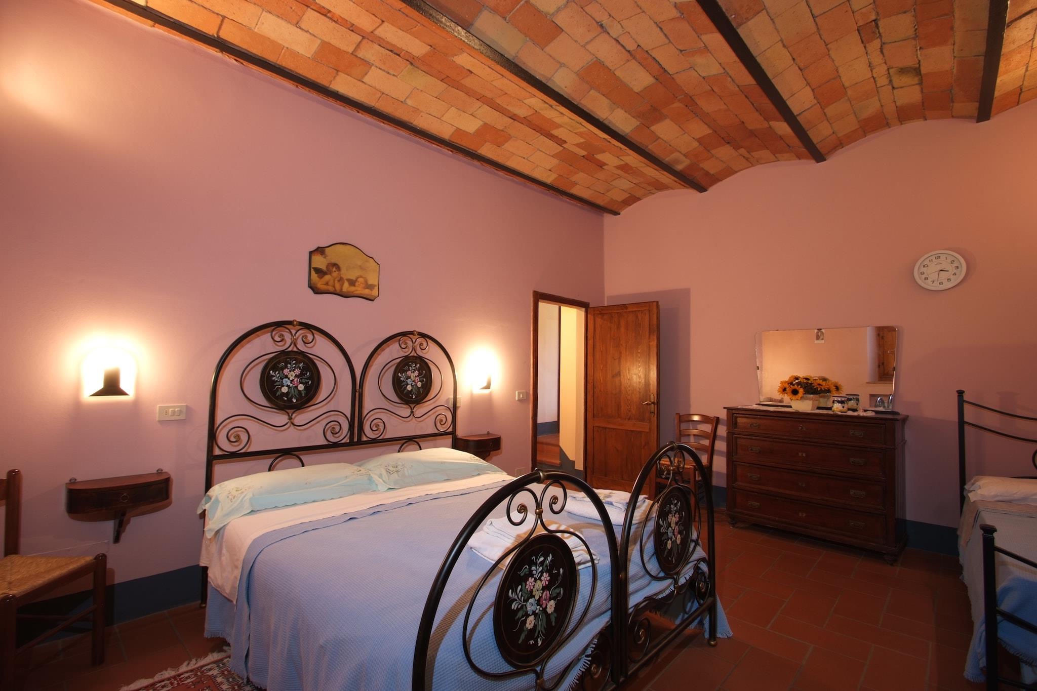 Denne bondegård med 2 soveværelser og fælles have ligger i Pienza. Den er velegnet til en lille familie. Stuehuset har en fælles swimmingpool at tage en dukkert i._x000D_ _x000D_ Der er en skov i nærheden, der er ideel til vandreture og camping. En sø er ikke særlig langt herfra, kun 25 km væk. Den nærmeste restaurant og supermarked ligger 6 km derfra. Shoppingelskere kan tage til byens centrum, som ligger 10 km væk._x000D_ _x000D_ Stuehuset har en privat terrasse, hvor du kan nyde en grill. Der er havemøbler at slappe af på. Du vil finde et stort køkken, hvor måltider kan tilberedes. Til underholdning tilbydes der et tv og WiFi. Ovn og fryser står til din rådighed. En varmefacilitet er tilgængelig på koldere dage. Subtil parkering er til stede her. Du kan holde et kæledyr efter at have foretaget en lille betaling._x000D_ _x000D_ Den nærmeste lufthavn ligger 2 timers kørsel derfra._x000D_