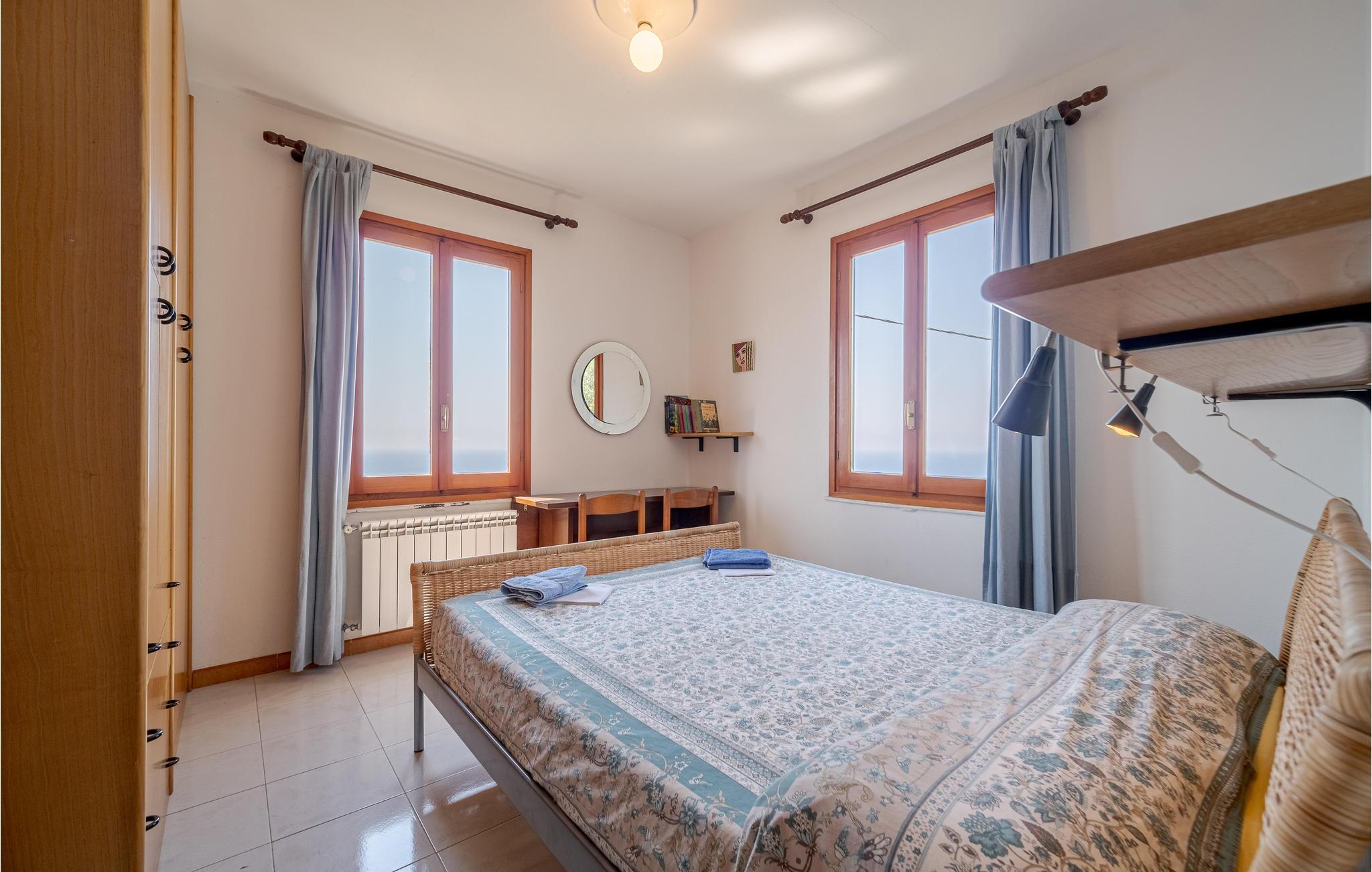Charmerende ferielejlighed i et tofamiliehus med terrasse, hvorfra der er en spektakulær havudsigt og udsigt til Portofinos forbjerge. Lejligheden ligger højt i en fodgængerzone, har separat indgang og et stort privat udendørs område, hvor I kan sidde i behagelig skygge når det er varmt. Badeværelset er udstyret med whirlpool. Få skridt fra lejligheden begynder en Creuza (vej med trin) der fører ned til havet. Omgivelserne er de helt rigtige for et besøg ved Liguriens kyst, med strandene ved Bogliasco (10 km), Camogli (8 km), Zoagli og Rapallo (16 km), de populære Santa Margherita og Portofino (20 km), men også Cinque Terre, som nås med færge fra Genua eller Camogli. I kan også udforske de historiske "Palazzi" i Genua. Vandsportsfans kan leje båd ved rivieraen, surfe og dykke. Ca. 500 m til foldbold- og tennisbane. Bemærk at lejligheden ligger i en fodgængerzone, der fører fra Pieve Ligure til Sori. Fra parkeringspladsen er der 500 m op til lejligheden, udelukkende ad en delvist meget stejl vej.