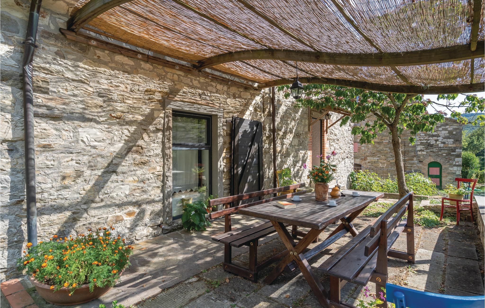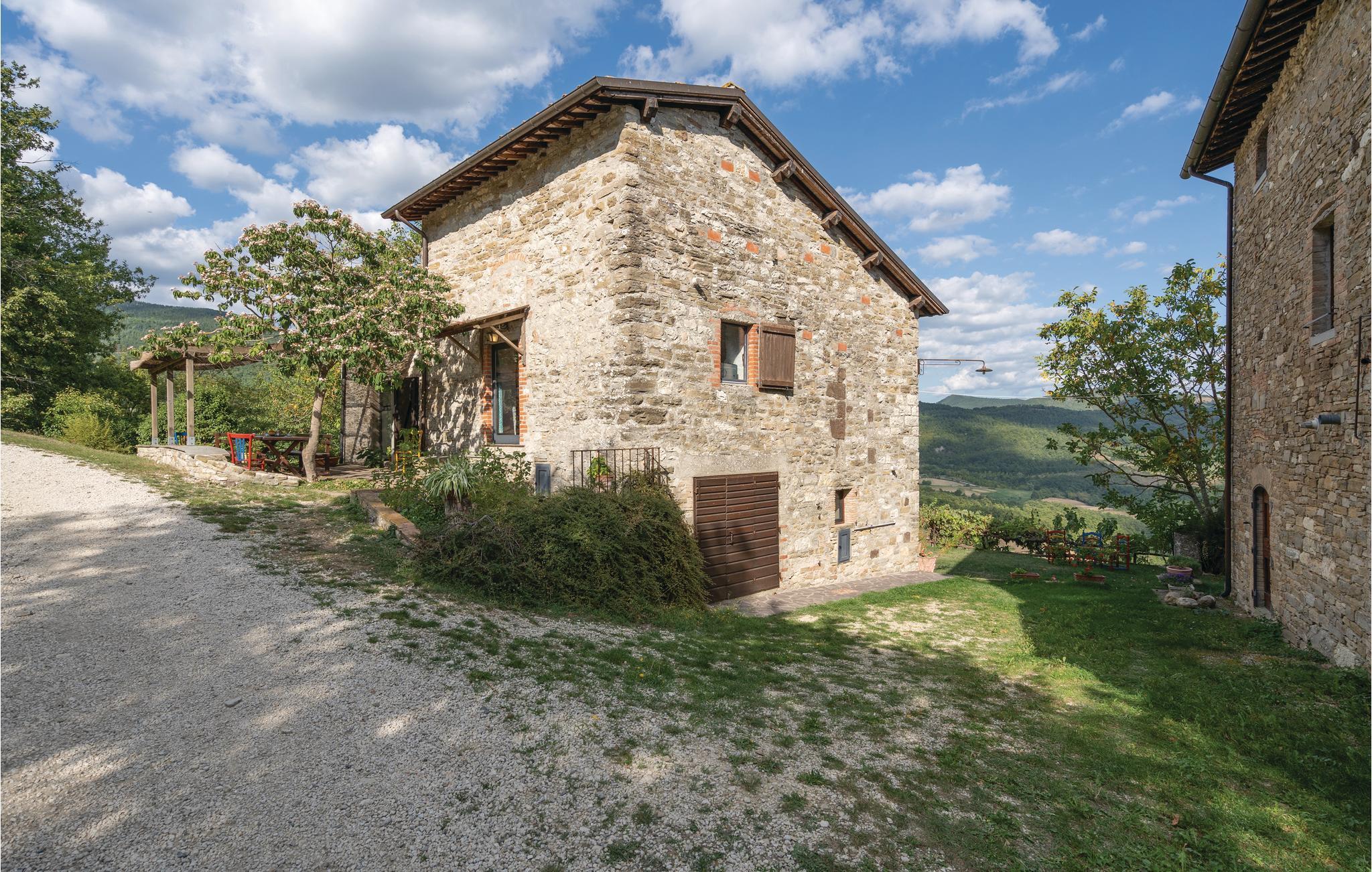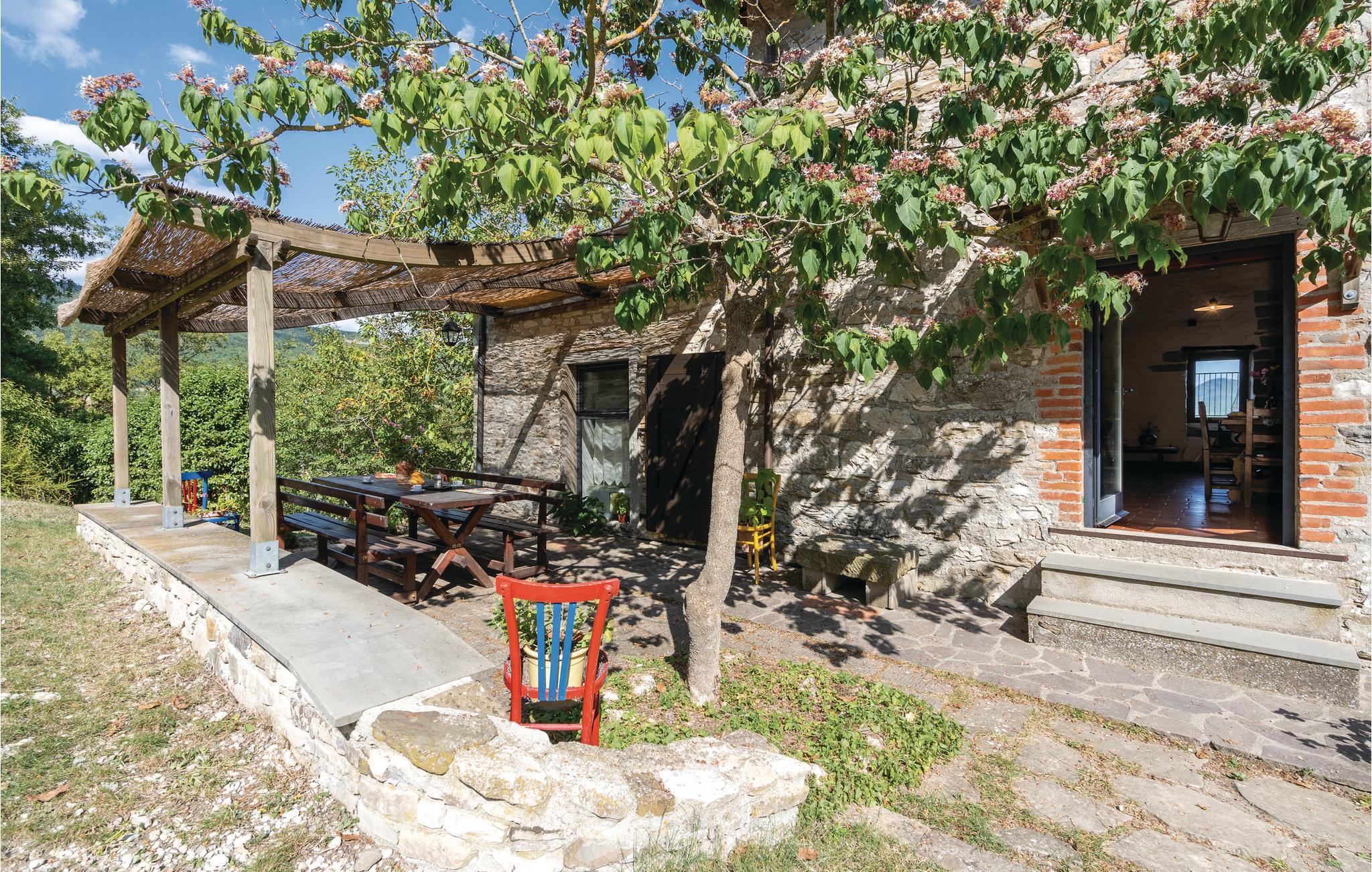 Restaureret traditionelt feriehus på de sydvendte skråninger af Appenninerne, nær Pieve S. Stefano. Rustik indretning, stort spisekøkken med bekvem hems, udvendig trappe til det nederste opholdsområde. Overdækket terrasse og forskellige siddepladser i skyggen af gamle kastanjetræer. Eksklusiv, indhegnet pool med plæne til solbadning og en lille legeplads. Et ideelt terræn for børn. Den kvindelige ejer bor i nabohuset. Vidtstrakte skove og bakker indbyder til vandring. Interessante udflugtsmål: Franciskanerklosteret La Verna (15 km), Caprese Michelangelo (15 km), de smukke byer i Tiberdalen, Adriaterhavets strande (85 km). Pieve S. Stefano 3 km. Ikke-asfalteret tilkørsel.