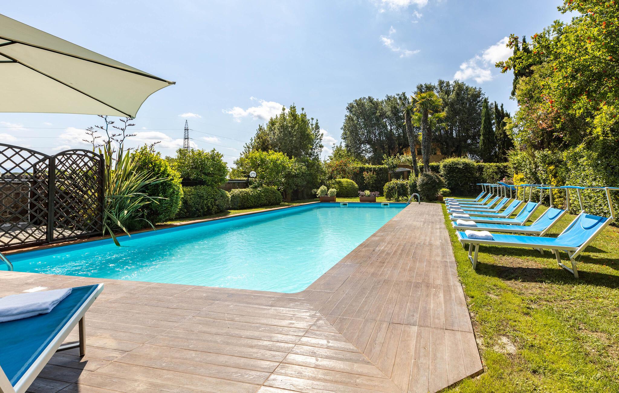 Tilbring en vidunderlig pause i dette rummelige feriehus med pool og have.