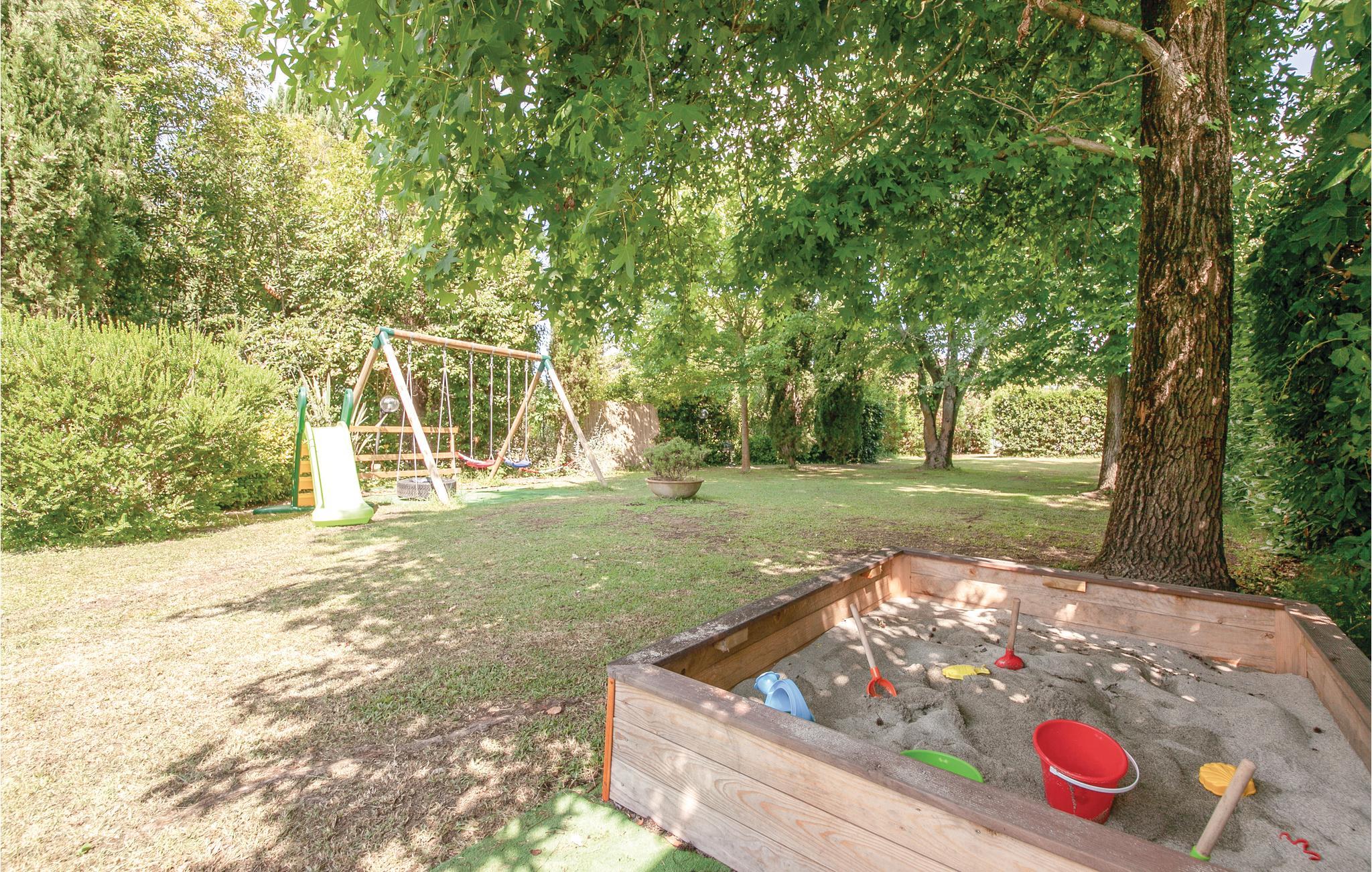 Udenfor er der en stor pool og en rummelig, beskyttet have. Server dagens måltider i skyggen, slap af på liggestolene og tag en dukkert i poolen. Tænd grillen, mens børnene render rundt på legepladsen og fejrer tiden sammen med stemningsfulde aftener med vin og levende lys.
