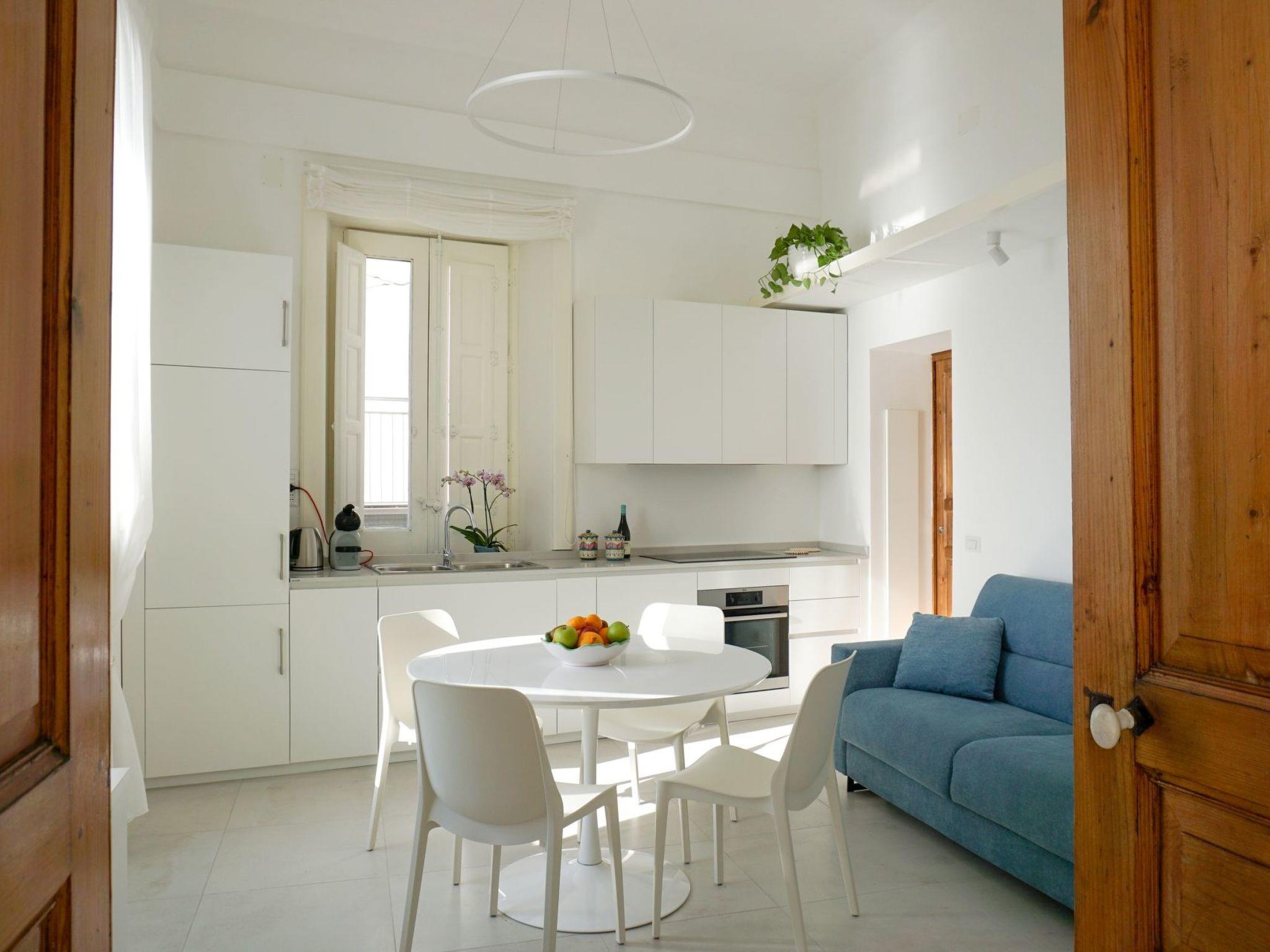 The high ceilings amplify the feeling of spaciousness and openness, contributing to an even more welcoming and airy environment. Located in an enviable position only 20 metres from the coast, the flat is on the first floor of a characteristic historical building, easily accessible by a staircase. Right on the ground floor, the presence of a pizzeria and a bar enlivens the life of the seaside village, acting as true nerve centres of the local experience.