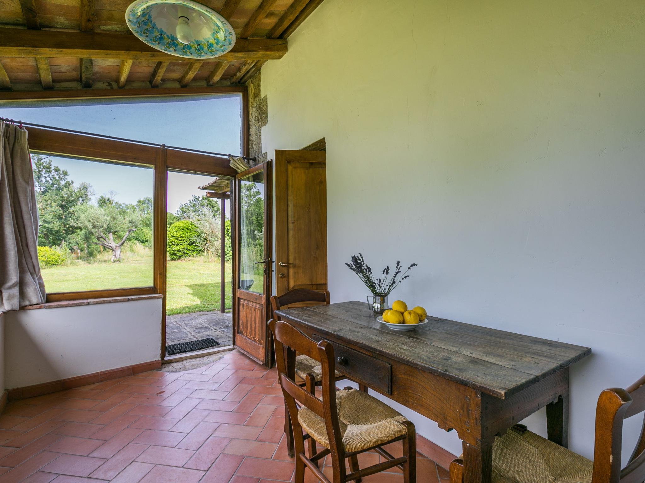 Old, rustic country house "Il Piccione", 3 storeys, detached from the 14th century, surrounded by trees and fields. 4 apartments in the property. 1.5 km from the centre of Sorano, 9 km from the centre of Pitigliano, 60 km from the sea. For shared use: property 12'000 m2 with lawn and trees, beautiful garden to relax, swimming pool (18 x 8 m, depth 120 cm, seasonal availability: 07.Jun. - 30.Sep.). Outdoor shower, pergola, garden furniture, barbecue. In the house: washing machine (extra). 200 m long motor access (via unmade road). Parking on the premises. Shop 1.5 km, grocery 1.5 km, supermarket 9 km, restaurant 1.9 km, bar 1.7 km, sandy beach "Albinia" 65 km, thermal baths "Terme di Sorano" 4.4 km, bathing lake "Bolsena" 25 km. Golf course (18 hole) 30 km, riding stable 6 km, walking paths from the house 1 km. Nearby attractions: Sovana 11 km, Saturnia 34 km, Orvieto 49 km, Viterbo 54 km, Val d´Orcia 40 km. Hiking paths: Mountain-bike 1.5 km. Please note: car recommended.
