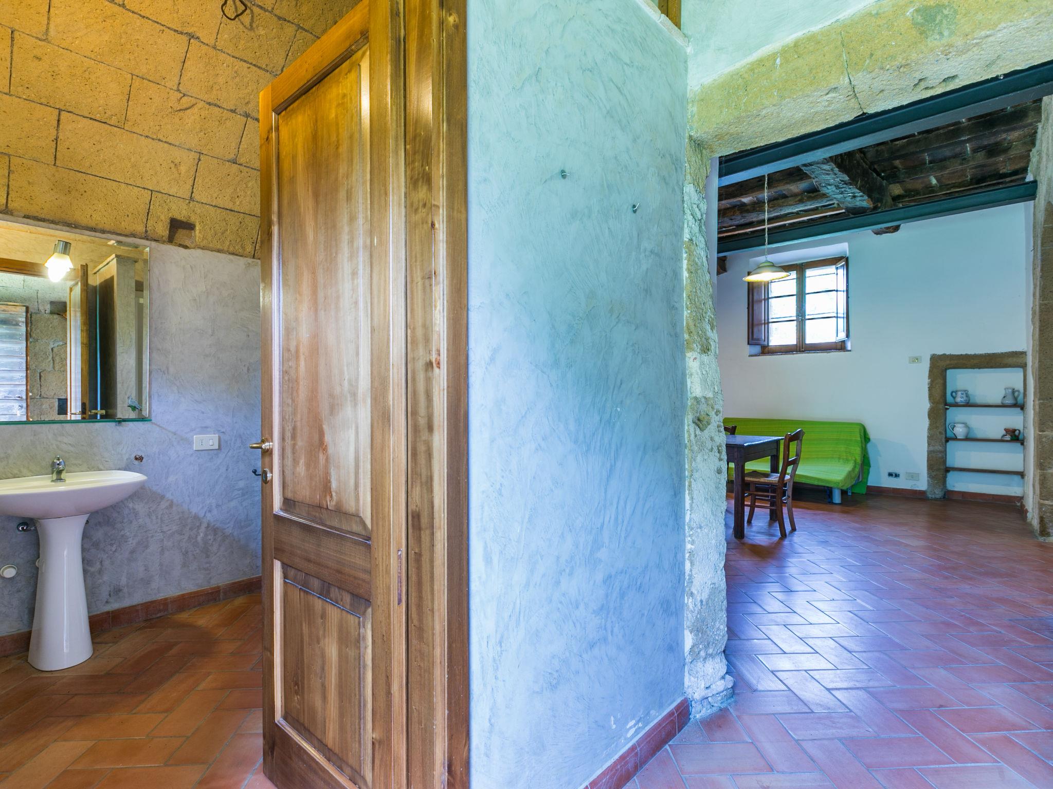 Old, rustic country house "Il Piccione", 3 storeys, detached from the 14th century, surrounded by trees and fields. 4 apartments in the property. 1.5 km from the centre of Sorano, 9 km from the centre of Pitigliano, 60 km from the sea. For shared use: property 12'000 m2 with lawn and trees, beautiful garden to relax, swimming pool (18 x 8 m, depth 120 cm, seasonal availability: 07.Jun. - 30.Sep.). Outdoor shower, pergola, garden furniture, barbecue. In the house: washing machine (extra). 200 m long motor access (via unmade road). Parking on the premises. Shop 1.5 km, grocery 1.5 km, supermarket 9 km, restaurant 1.9 km, bar 1.7 km, sandy beach "Albinia" 65 km, thermal baths "Terme di Sorano" 4.4 km, bathing lake "Bolsena" 25 km. Golf course (18 hole) 30 km, riding stable 6 km, walking paths from the house 1 km. Nearby attractions: Sovana 11 km, Saturnia 34 km, Orvieto 49 km, Viterbo 54 km, Val d´Orcia 40 km. Hiking paths: Mountain-bike 1.5 km. Please note: car recommended.