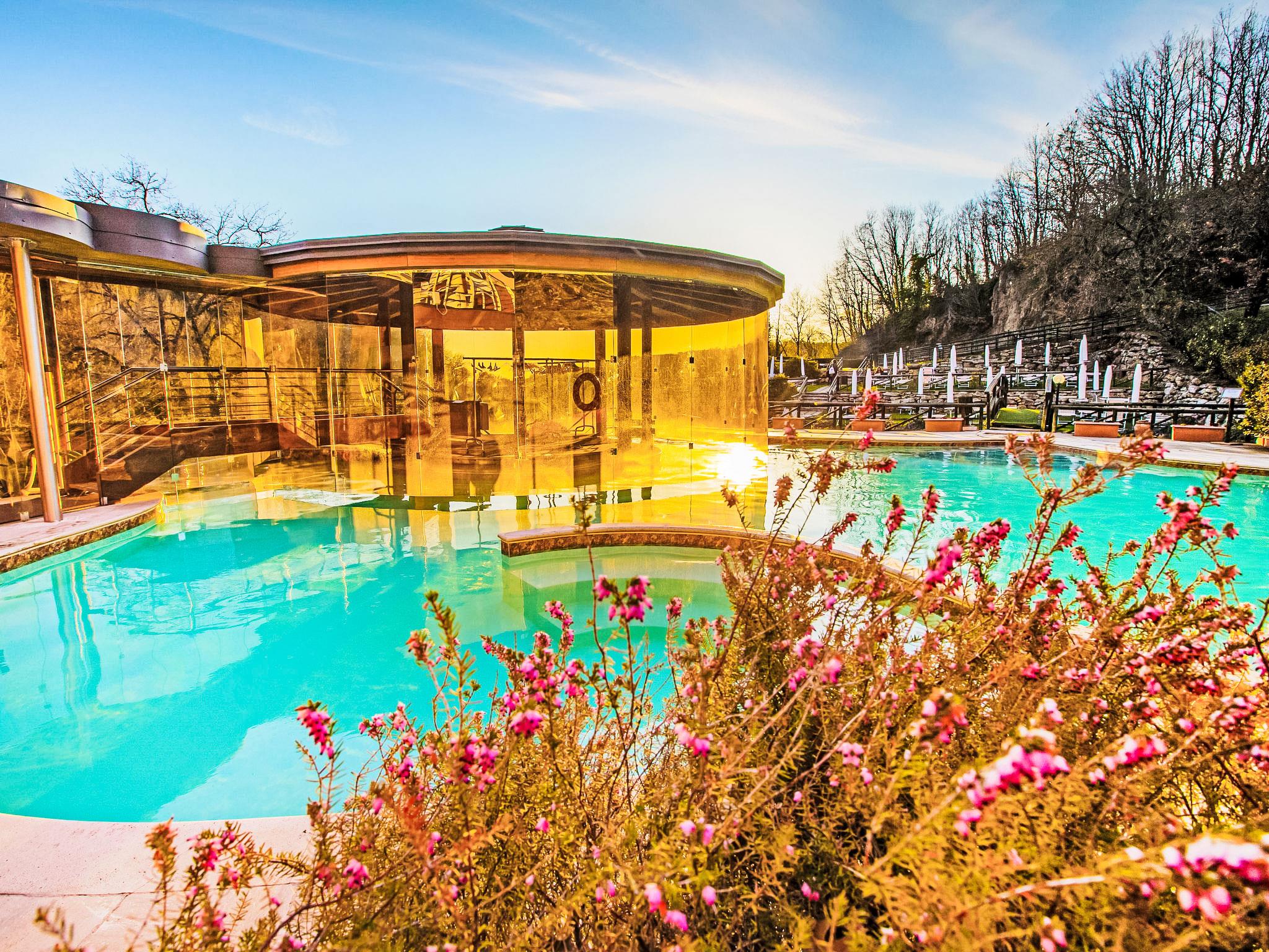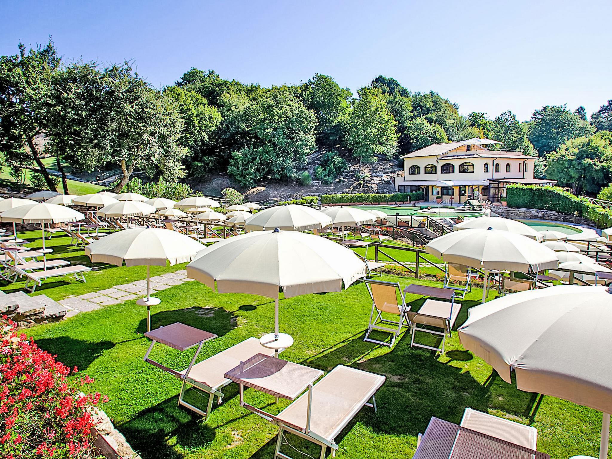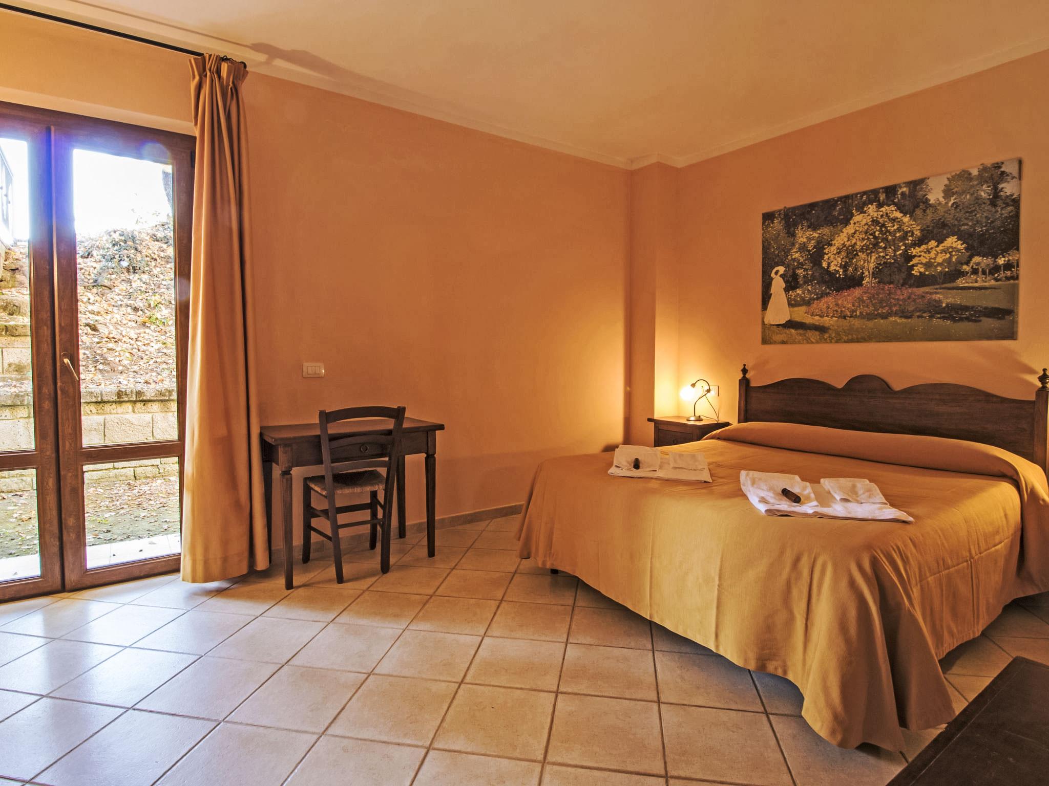 Thermal village with 30 apartments and 10 villas, 2 swimming pools including 1 thermal water from natural springs at 37°C (350m2, irregular shape) open all year round and 1 children´s pool. Every unit with private parasols and loungers in the relaxation area of the pool. Wellness center with face and body treatments and various packages, to be booked on site. Life and bike trail, partner riding school, food and wine tours. The structure develops around a millenary parish church. Beautiful resort "Thermae", 460 m a.s.l.. 10 houses in the residence. 30 apartments in the residence. 3 km from the centre of Sorano, 7 km from the centre of Pitigliano, in a sunny position, 55 km from the sea, in the countryside. For shared use: park 6 ha, 2 swimming pools (17 x 11 m, seasonal availability: 01.Jan. - 31.Dec.) with internal staircase. Unconventional pool shape. Children's pool, outdoor shower, tennis, table tennis, barbecue, children's playground. In the complex: reception, restaurant, bar, WiFi, massage (extra). Hot tub (extra). Sun terrace, laundry, washing machine (for shared use, extra), heating to be paid on the spot, heating available only from 01.Nov. - 15.Apr., bicycles available (extra). Linen change weekly. Room cleaning on request (extra). Breakfast and half board on request (extra). Motor access to the house. Parking at 200 m. E-charging station. Grocery 3 km, supermarket 7 km, restaurant 3 km, bus stop 300 m, sandy beach 55 km, bathing lake "Bolsena" 25 km. Riding stable 800 m. Nearby attractions: Grotte Di Castro 22 km, Saturnia 28 km, Capalbio 52 km, Monte Argentario 45 km. Well-known lakes can easily be reached: Bolsena 25 km. Please note: car recommended. Suitable for families. The complex has night security. Residence with electric gates. The photograph shows a typical example. Obligation to wear bathing caps.