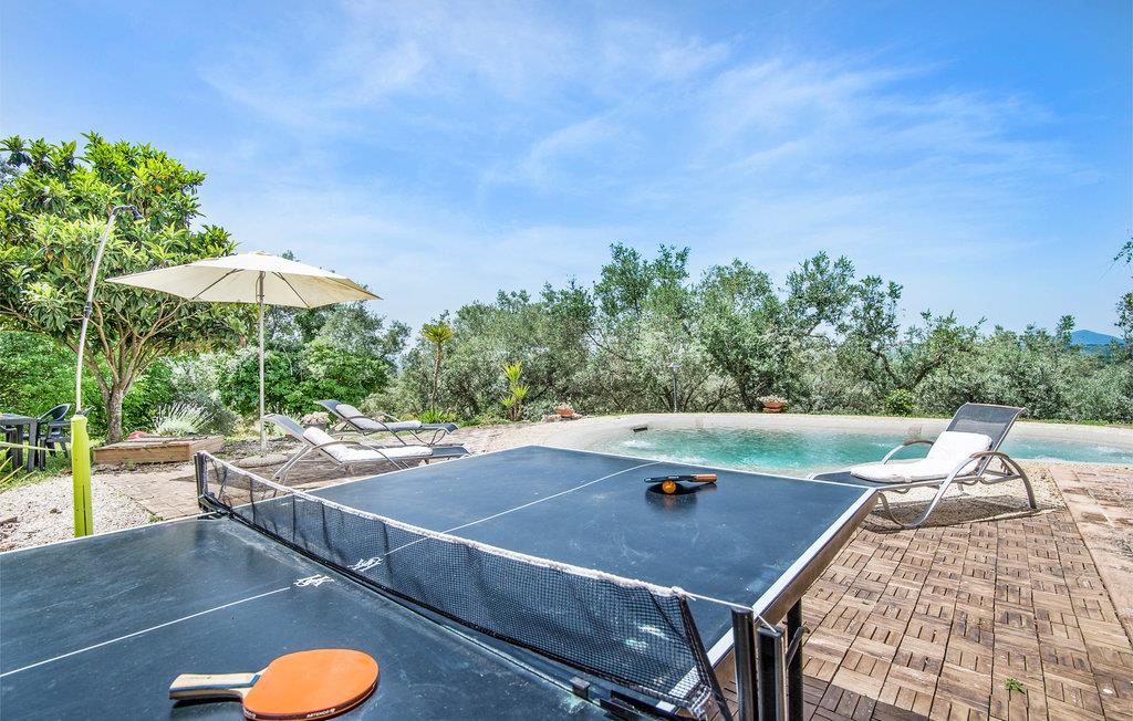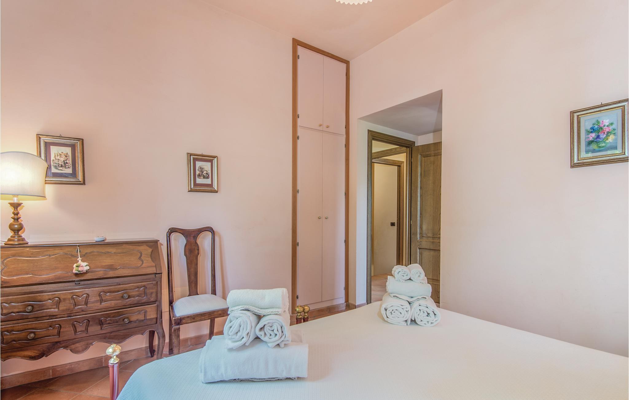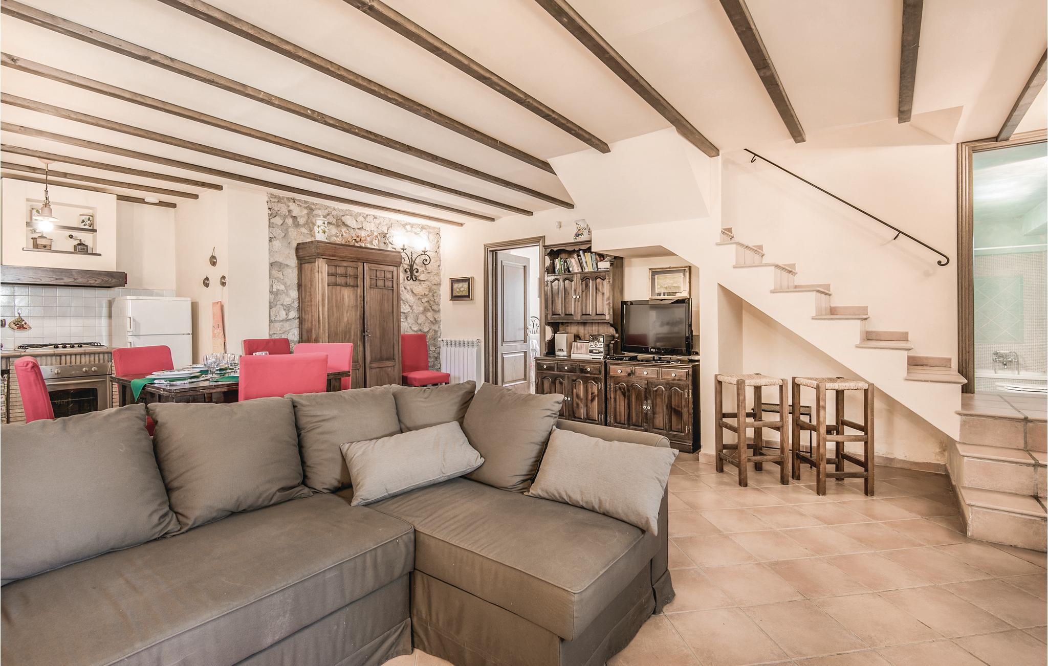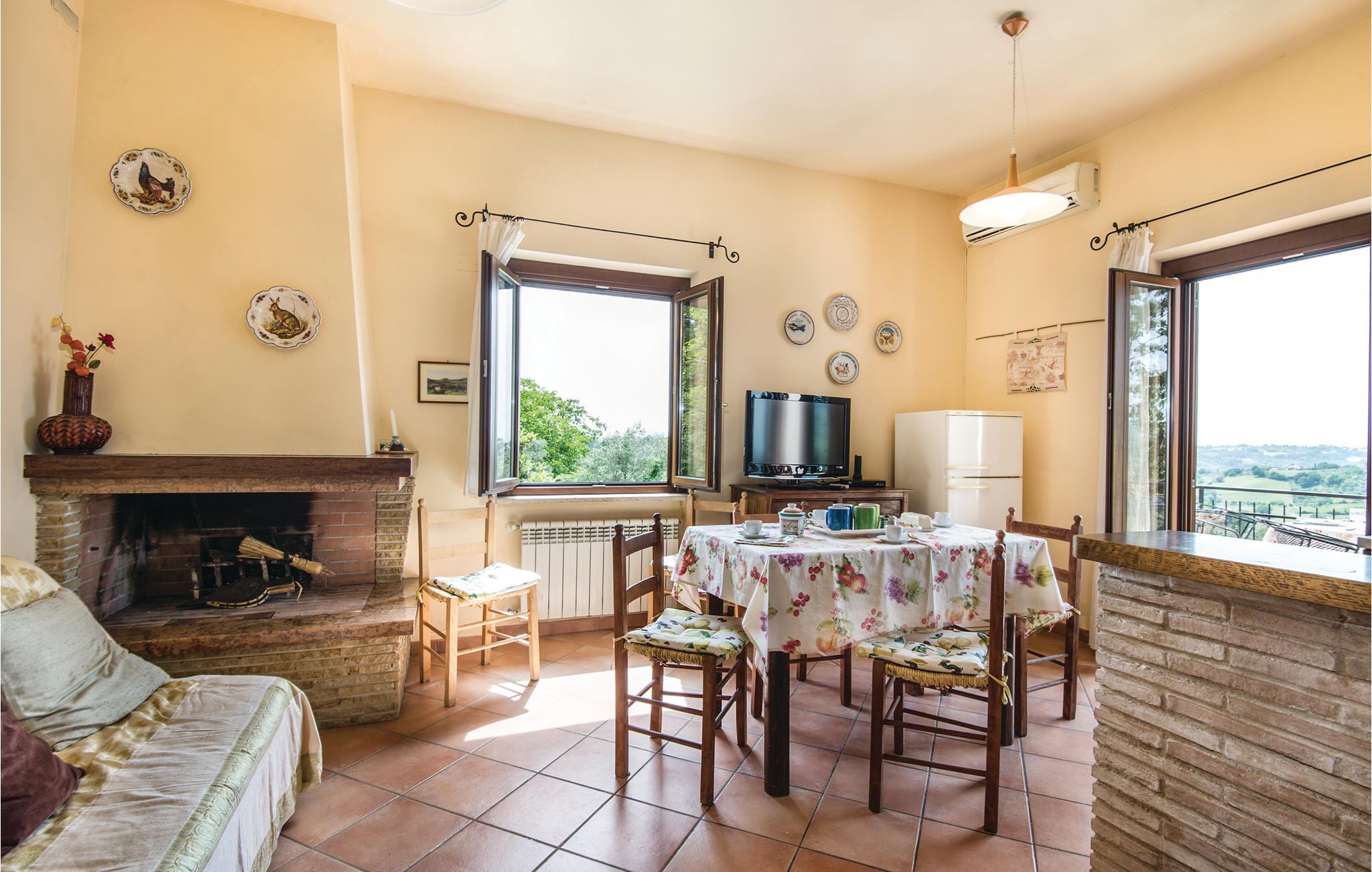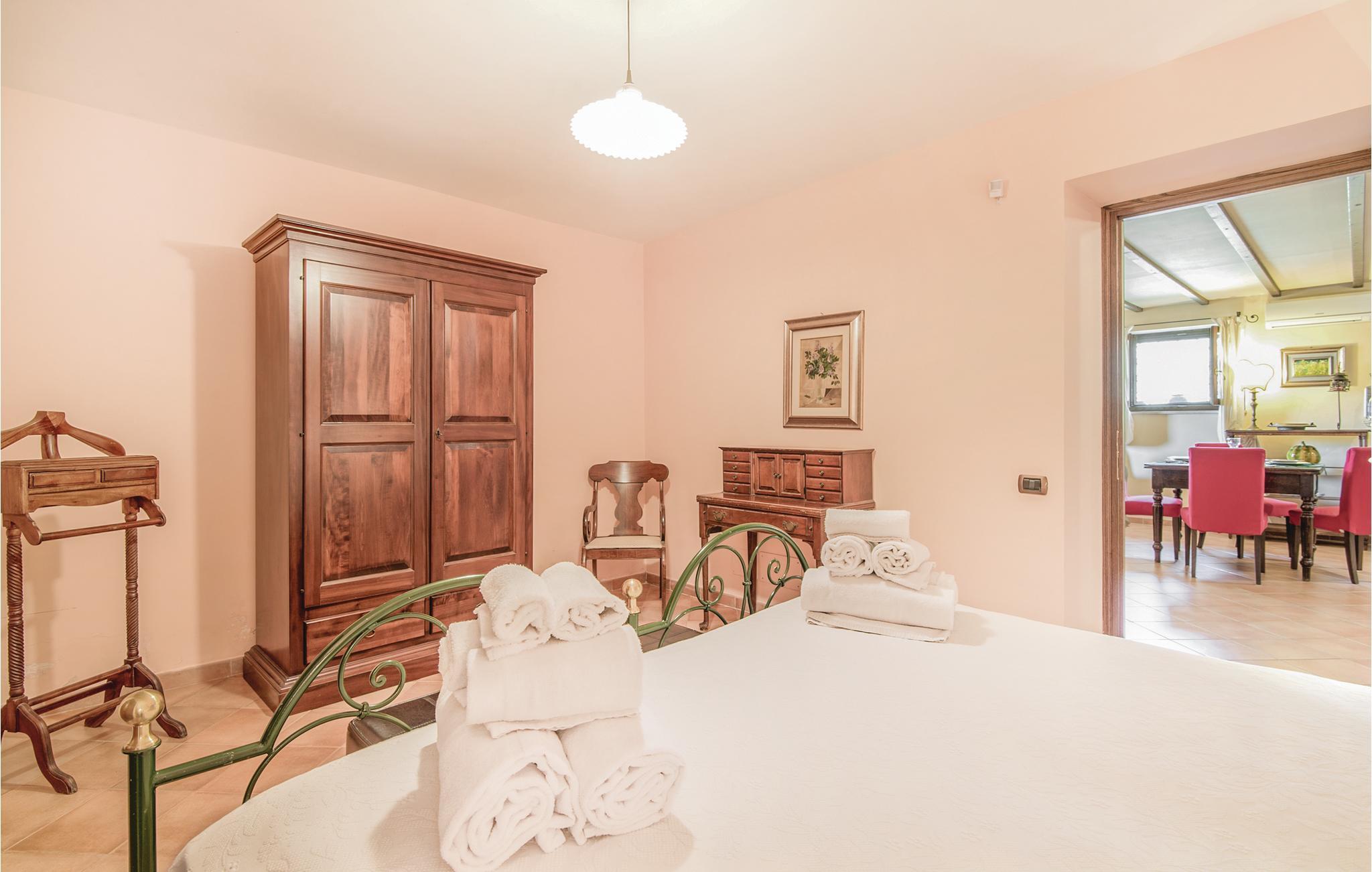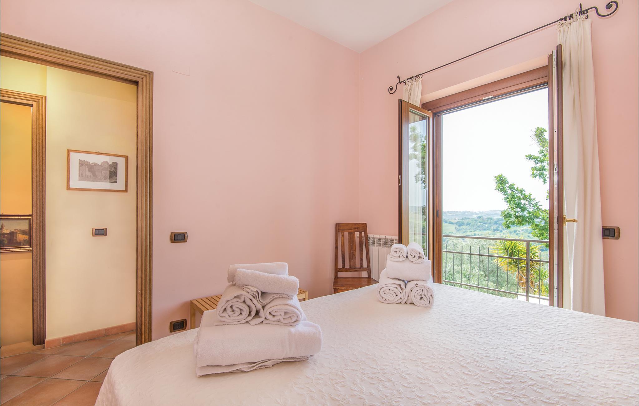 Dette pæne feriehus i det dejlige landskab omkring Rieti, 1,3 km fra Poggio Mirteto og 2,5 km fra Poggio Catino, ligger panoramisk på grunden af et landbrug. Ud over frugttræer, palmetræer og hasselnødder dyrker ejerne også en uforlignelig olivenolie, olio extra vergine d’oliva. I når Rom på kun en times kørsel eller nemt med toget, da en lille station ligger kun ti minutters kørsel herfra. Her er I på rette sted til at nå det nordlige Lazio, den antikke region Tuscia med Viterbo (71 km) eller det nære Umbrien (Orvieto 87 km, Narni 50 km). Huset ligger på godsets grund, men med egen indkørsel og privat indgang, der lover absolut privatsfære. En have med oliven- og frugttræer omgiver huset. Til rådighed for jer står også en pool, hvis vand er lyserødt af himalayasalt, og som har boblefunktion over det hele. Dertil råder I over en grill og havemøbler på en patio med udsigt over bakkerne og poolen.