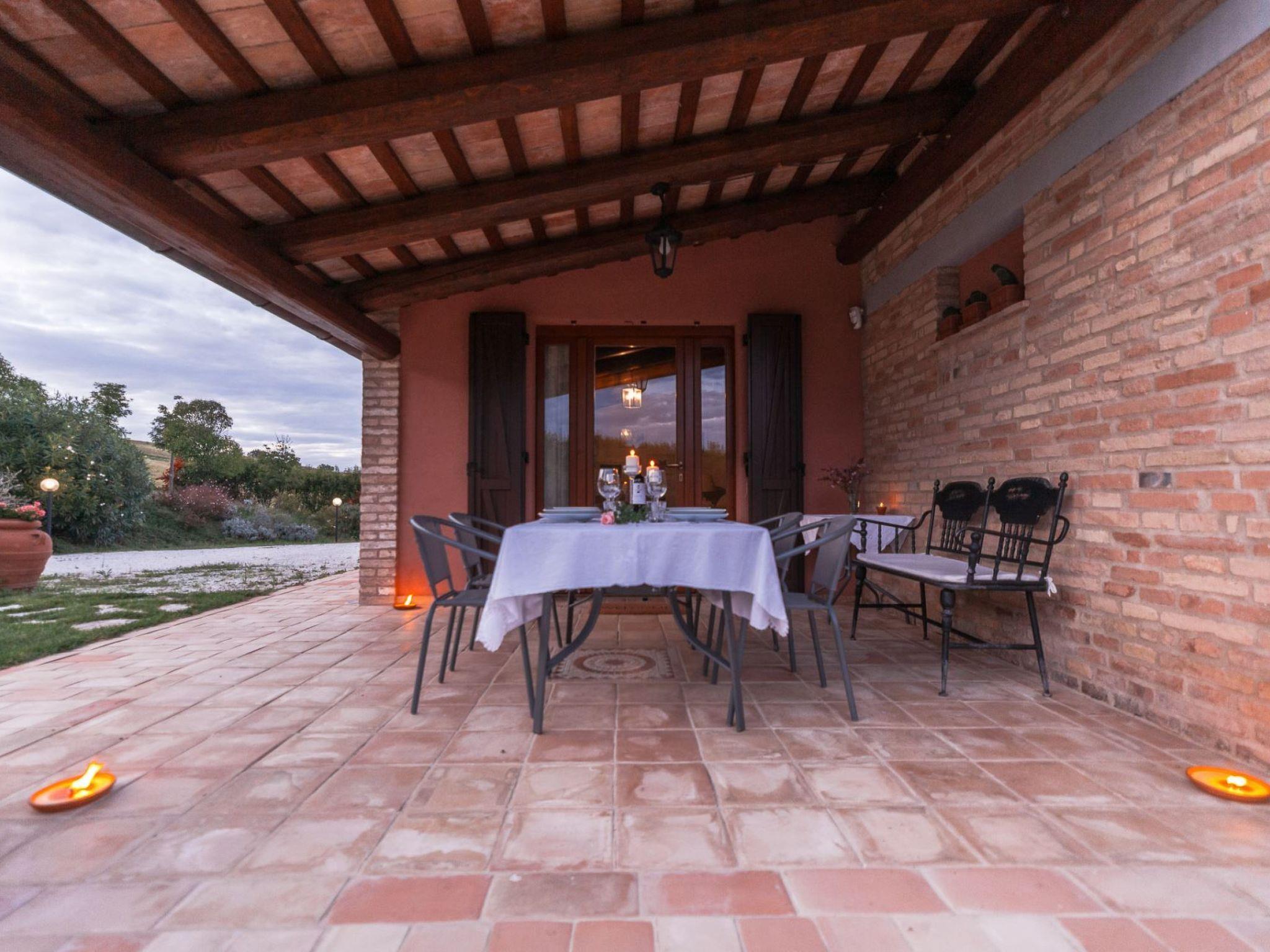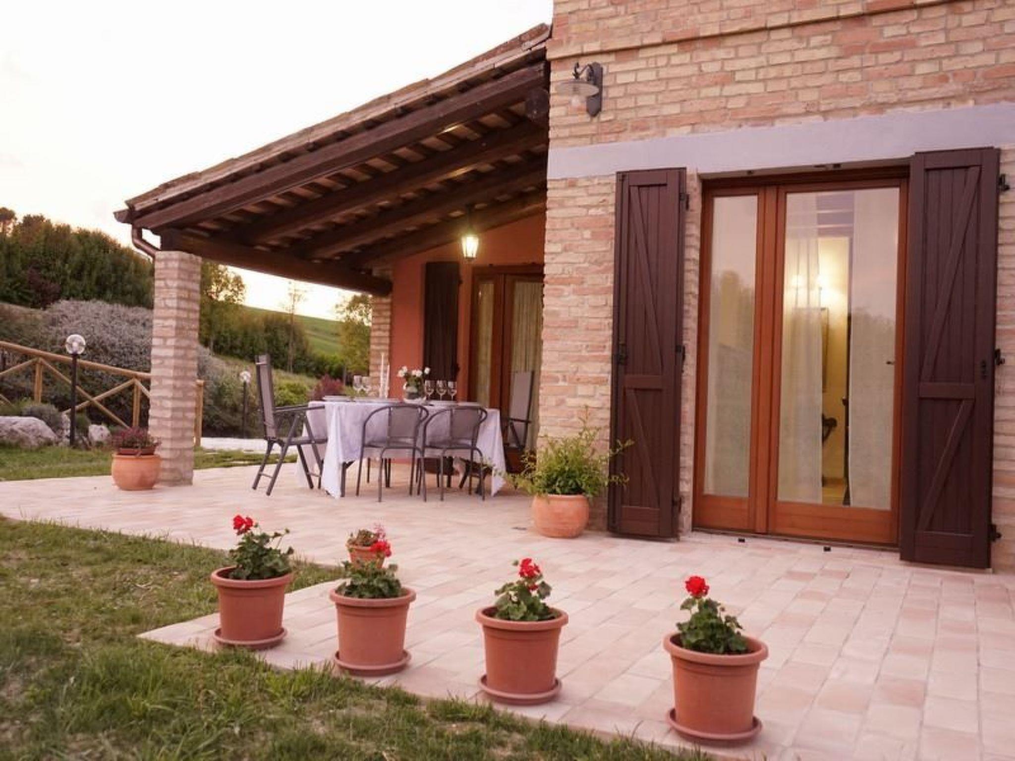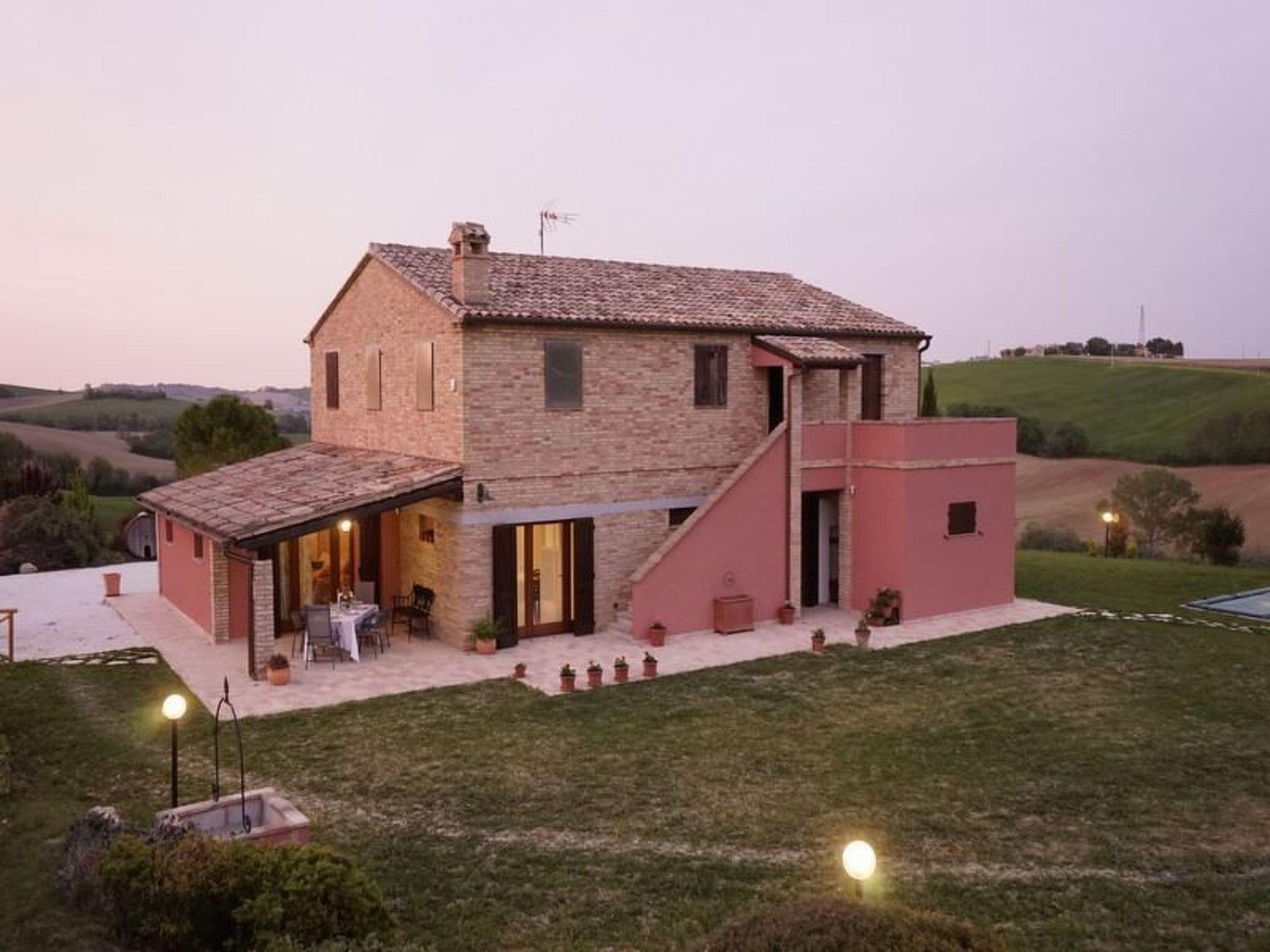 This elegantly house provides the perfect space for a relaxing holiday with a dash of luxury. Casale Malatesta is a beautiful renovated villa for a family or a small group of friends and itself has been recently restored to a high standard, maintaining many traditional features and blessed with modern comforts in a thoroughly traditional and rustic setting. The interior is filled with lovely stylish touches and high quality furnishing. The terraced pool (8m x 4m) with a nice view, the patio and the barbecue are perfect for outdoor summer fun, relaxing and dining with sun all day long. The property is deep in the greenery of the Marche countryside, the medieval town of Jesi is only 11 kilometres away and there are several interesting places within 30 minutes driving like Ancona, Osimo, Castelfidardo, Offagna. Senigallia, The Conero Riviera and the vineyards of “Verdicchio dei Castelli di Jesi.” and “Lacrima di Morro d’Alba.”Electric gates Private pool (8 x 4) with external shower Outside eating area with patio and BBQ Shower roomGround floorLiving room with sofa bed for two people, wi-fi, and TVDining roomKitchen with 4 stoves, microwave, dishwasher, oven, fridge, espresso machine, kettle and toasterLaundry room with washing machine and ironing facilities1 double bedded room with ensuite shower room1 twin room2 shower roomRestaurants and supermarket Mazzangrugno 2 KmJesi 11 kmRiviera del Conero (beaches) 25 KmFalconara Marittima (nearest beaches) 13 KmAncona 20 KmOsimo 15 KmCastelfidardo 20 KmRecanati 32 KmOffagna 13 KmSenigallia 30 KmVerdicchio and Lacrima di Morro d’Alba cellars 12 KmAirport 11 Km