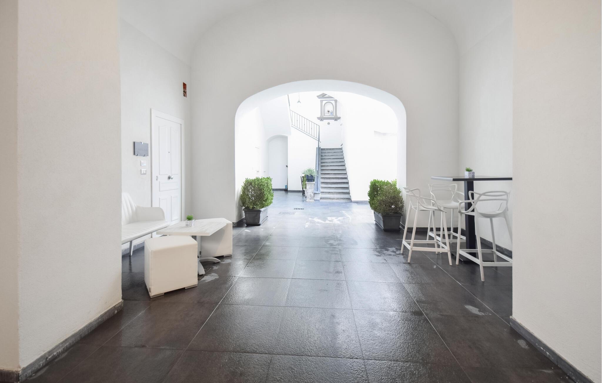Velkommen til denne indbydende lejlighed, der tager imod jer i en skøn beliggenhed i Napoli. Her kan I slappe af i lyse rum med en attraktiv indretning. Nyd hyggelige aftener i stilfulde omgivelser, når I vender tilbage fra jeres oplevelser og sidder længe og snakker i sofaen.