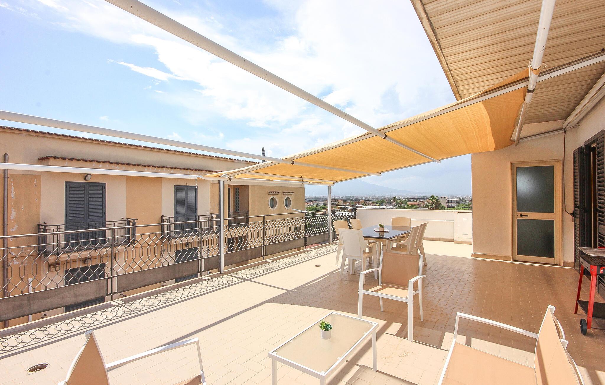 Gør jer klar til årets bedste uger i denne store lejlighed med en smuk udsigt fra tagterrassen.